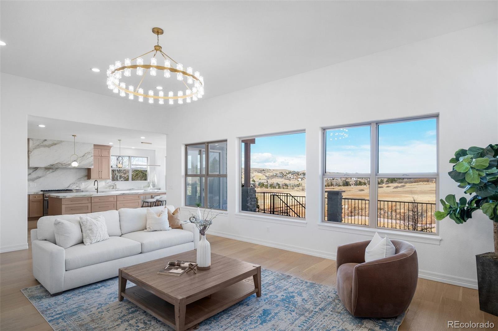 Perched on over half an acre of naturally landscaped meadow that blends seamlessly into the prestigious Jim Engh-designed Club at Pradera, this Colorado foothills masterpiece redefines elevated living. Inside showcases the breathtaking yet understated contemporary design details, and the manor grounds are a true oasis of mountain and golf course views, water features, a fire pit, and curated gardens. With a reimagined layout to optimize living space for today's modern lifestyle, this residence boasts 3 upper-level master suites, a main floor master or guest suite, a library with 20-foot windows for peaceful light, a private office, and a lower level walk-out entertainment area with an ample media room, a second luxury kitchen, and an open floorplan for fitness or additional family space. Both the upper and lower main living areas have mesmerizing fireplaces with golf course views and contiguous outdoor living areas, making this spacious home feel even more majestic. Read about and watch the person who designed your new backyard here: https://www.coloradogolfhalloffame.org/person/jim-engh/ Capture this crown jewel golf course home on a huge, beautiful, mature lot you won't get with a new construction home.