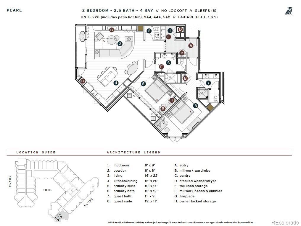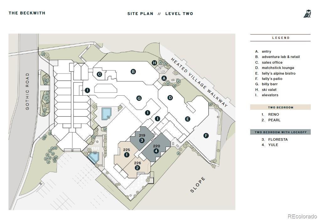 Perfectly positioned on the end cap of the second floor, to-be-built Beckwith Residence 226 offers 1,671 square feet across the Pearl floor plan, with the ideal blend of style, sunlight, and seamless access to the heart of the action. Inside, the wide-open floor plan is drenched in natural light, thanks to its sunset-facing orientation and oversized windows that frame spectacular views of Whetstone Mountain and the dynamic resort environment below. The layout includes two bedrooms, two-and-a-half baths, a spacious primary suite, and an open-concept kitchen, living, and built-in banquette dining area, all designed for effortless gathering, entertaining, or relaxing after an epic day on the slopes. Three private balconies— off the living room, primary suite, and guest suite extend your living space outdoors, where you can sip coffee at sunrise or toast the alpenglow in the evening. Inside, you'll find mountain-modern interiors inspired by Crested Butte’s natural surroundings, complemented by playfully curated design moments. The gourmet kitchen features stone countertops, high-end appliances, a pantry, and a built-in banquette dining area. Meanwhile, a custom entry bench with cubbies provides convenient storage of gear. The primary suite is a serene retreat with a millwork wardrobe, private balcony, and spa-inspired en-suite bath complete with Kohler fixtures and luxurious finishes. Additional features include a stylish powder room, stacked washer and dryer, and secure owner’s storage. The Beckwith is the only ski-in, ski-out resort in the heart of Crested Butte's base area, with world-class amenities including a four-star, community-inspired hotel, seamless ski valet, luxurious spa, adventure concierge, and private mountain & social community, Club Beck. A multi-phased reimaging of Elevation Hotel & Spa will transform almost every space at the resort, with residences anticipated for completion in the Winter 26-27 ski season.