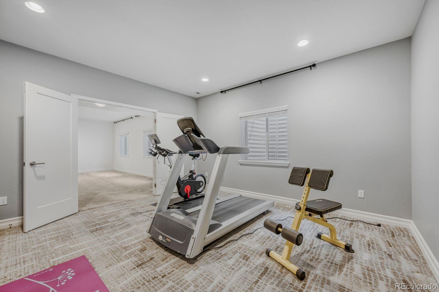 $20,000 Seller Concession Available - Use It Toward a Rate Buydown or Closing Costs of Your Choice!Welcome to this beautifully upgraded single-story home with a fully finished basement in the highly desirable Harvest Junction neighborhood. Bright, open, and move-in ready, this home offers high-end finishes throughout and a flexible layout designed for modern living.The main level features luxury LVP flooring (bedrooms excluded) and an open-concept design filled with natural light. The chef's kitchen is a true centerpiece, showcasing stunning two-tone cabinetry, under-cabinet lighting, generous prep space, and thoughtful details that elevate both everyday living and entertaining.You'll find two bedrooms on the main level, including a spacious primary suite with a luxury 3/4 bath and washer/dryer conveniently relocated to the primary closet. A full bath serves the additional main-level bedroom. The original office and third bedroom have been combined to create a custom study/library, offering a refined and versatile workspace that can easily be reimagined to fit your needs.Downstairs, the finished basement expands your living space with an additional bedroom, a 3/4 bath, and a dedicated workout room that could function as a fourth bedroom with the simple addition of a closet. A bonus utility room with custom shelving and abundant basement storage adds even more practicality.Smart upgrades include Lutron automatic shades and tile flooring in all bathrooms. Step outside to an entertaining patio surrounded by low-maintenance landscaping-perfect for relaxing or hosting guests.Located in the heart of Harvest Junction, this home offers easy access to schools, shopping, parks, trails, and everyday conveniences.A rare opportunity to own a thoughtfully upgraded, move-in ready home with flexibility, function, and style-plus a generous seller concession to help make it yours
