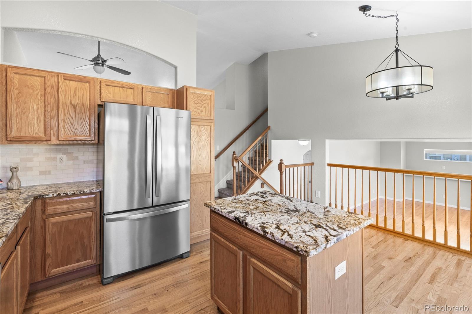 Second chances don't come around often, this one is a must see! Welcome to 10498 Vaughn Street, a well-maintained home in the Potomac Farms community of Commerce City offering a flexible layout and thoughtful updates throughout. The main level features a vaulted living room and an open kitchen with a breakfast nook and bay window, creating a bright and inviting space for everyday living. Hardwood flooring, granite countertops, updated lighting, and newer stainless steel appliances add both style and functionality. The kitchen layout flows comfortably into the living areas, making it ideal for gathering and entertaining. The lower level includes an oversized family room with a built-in entertainment wall, along with a convenient half bath and laundry area. Washer and dryer are included. Upstairs, the vaulted primary bedroom offers an en-suite bath, complemented by two additional bedrooms and a full hall bath. Situated on an 8,276 sq ft lot, the fully fenced backyard features an oversized patio, additional seating area, and a storage shed, providing plenty of space for outdoor enjoyment. This home has been carefully cared for and is conveniently located near neighborhood parks, local amenities, and major commuter routes.