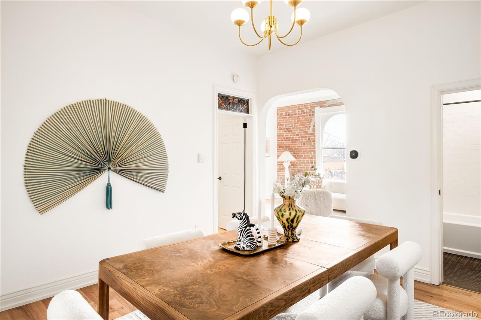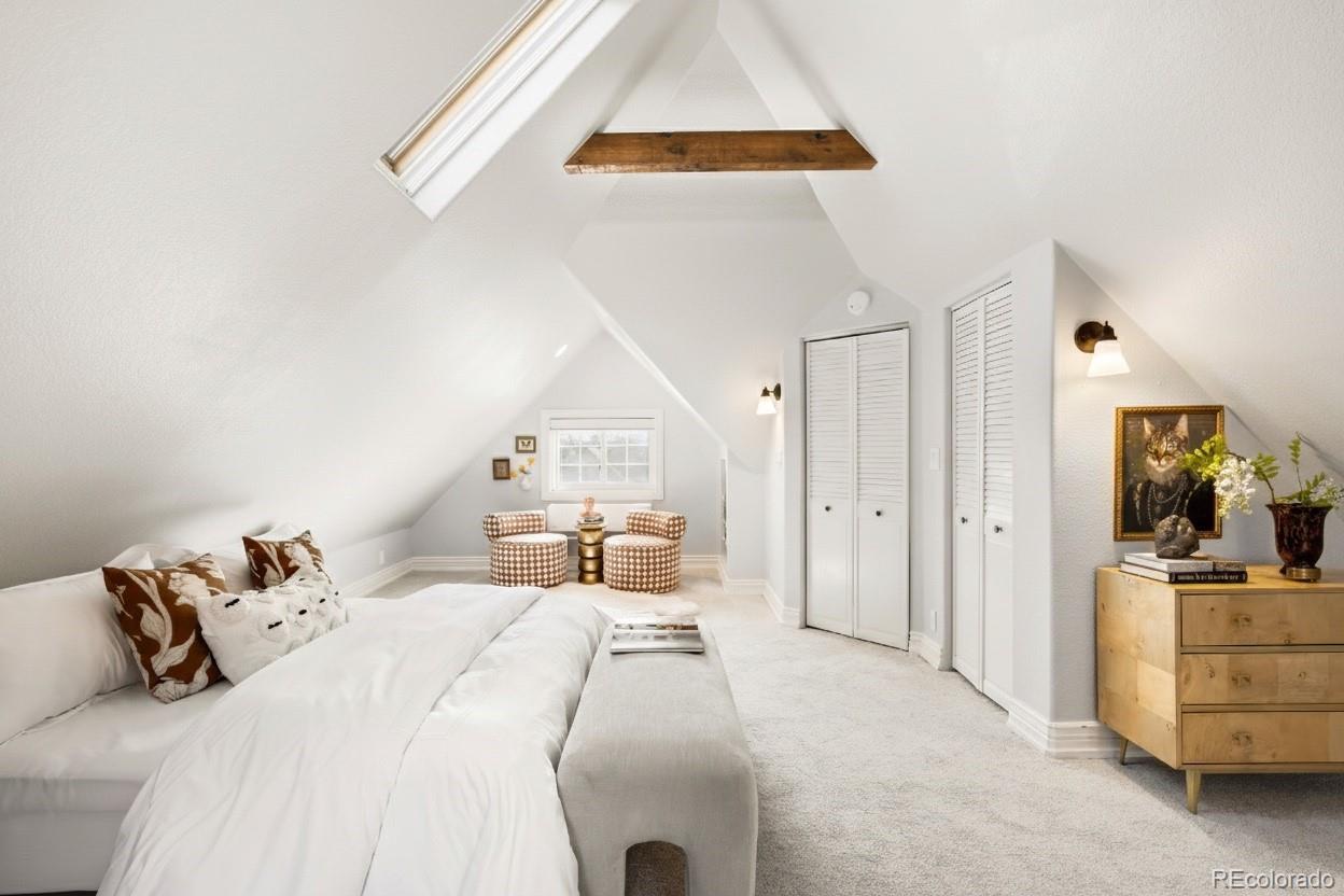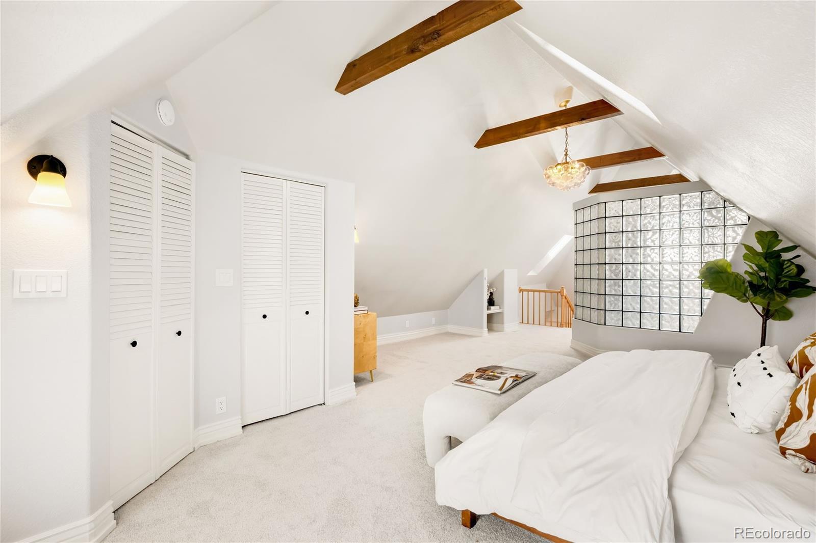 A storybook classic reimagined for modern living, this enchanting Highlands residence blends timeless character with thoughtful, turnkey updates. From its charming curb appeal to its light-filled interiors, this home exudes both coziness and elegance. Recent renovations have refreshed every corner — including an updated kitchen, updated baths, windows, roof, lighting, landscaping and more — offering the beauty of a historic home without the usual maintenance concerns. Original details remain, such as exposed brick in the dining room, original wood burning fireplace, stained glass, and wood floors grounding the space in authentic character. The entire upper level is dedicated to a serene primary suite, complete with skylights, exposed rafters, multiple closets, a sitting area for reading or working and a spacious bath with an oversized glass block multi-head shower. Outdoors, a private yard invites gardening and quiet evenings on the covered patio. An oversized detached two-car garage provides exceptional storage. All just moments from Sloan’s Lake, Jefferson Park, Highlands Square Farmer's Market, the vibrant dining and shops on 32nd Ave, plus brewery, coffee and more on 29th Ave - this home truly captures the heart of Highlands living.