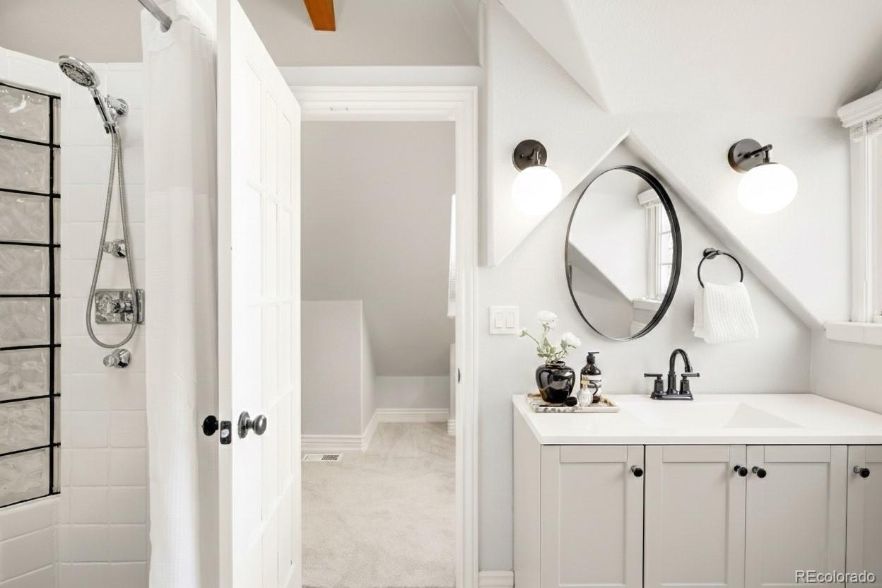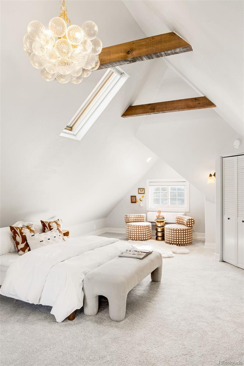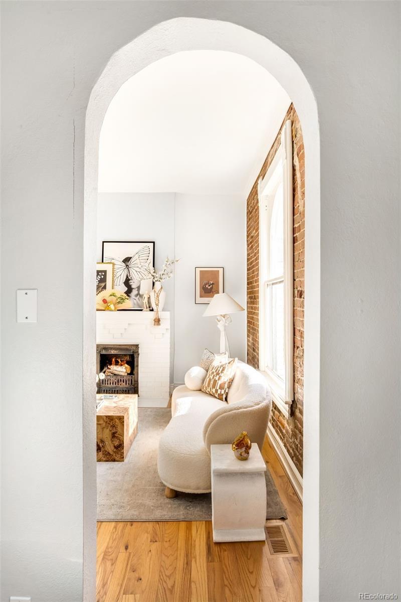 A storybook classic reimagined for modern living, this enchanting Highlands residence blends timeless character with thoughtful, turnkey updates. From its charming curb appeal to its light-filled interiors, this home exudes both coziness and elegance. Recent renovations have refreshed every corner — including an updated kitchen, updated baths, windows, roof, lighting, landscaping and more — offering the beauty of a historic home without the usual maintenance concerns. Original details remain, such as exposed brick in the dining room, original wood burning fireplace, stained glass, and wood floors grounding the space in authentic character. The entire upper level is dedicated to a serene primary suite, complete with skylights, exposed rafters, multiple closets, a sitting area for reading or working and a spacious bath with an oversized glass block multi-head shower. Outdoors, a private yard invites gardening and quiet evenings on the covered patio. An oversized detached two-car garage provides exceptional storage. All just moments from Sloan’s Lake, Jefferson Park, Highlands Square Farmer's Market, the vibrant dining and shops on 32nd Ave, plus brewery, coffee and more on 29th Ave - this home truly captures the heart of Highlands living.