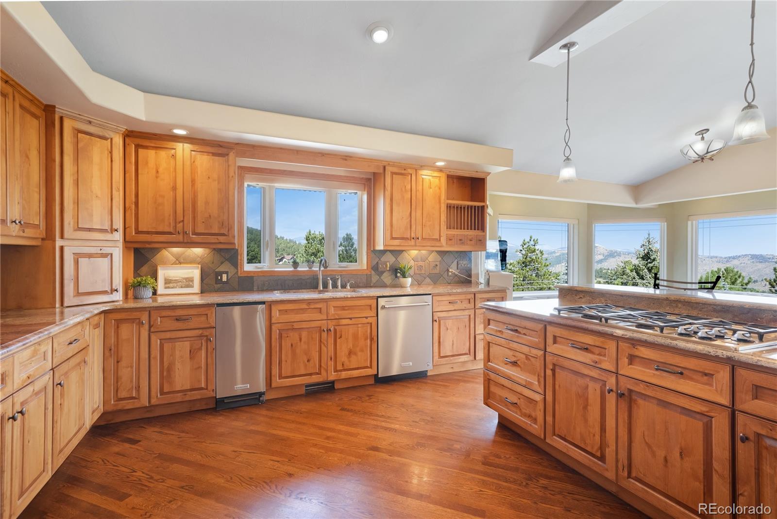 Breathtaking views and everyday convenience come together in this Lookout Mountain home. Located in Cody Park, this spacious contemporary home offers the perfect balance of mountain living and city access—just minutes from I-70, 25 minutes from downtown Denver, and 90 minutes from world-class skiing. Step inside to gleaming hardwood floors and unique architectural details. The chef’s kitchen is a true centerpiece with stainless steel appliances, a slab granite breakfast bar, huge pantry and a sunny sitting area perfect for slow mornings as the mountains awaken outside your window. The open dining and living areas invite gatherings with family and friends—whether it’s a lively dinner party or a quiet night by the fire. The primary suite feels like a private sanctuary, complete with its own sitting area, a two-sided fireplace, a five-piece bath, and a large walk-in closet. Two additional main-floor bedrooms and two home offices provide wonderful flexibility—whether you need creative studio space, a quiet home office, or room for guests. The finished walk-out lower level adds even more possibilities, featuring a mother-in-law apartment. It’s the ideal setup for multigenerational living, long-term guests, or simply giving everyone their own space. Fabulous outdoor spaces! Enjoy your morning coffee on the expansive deck as the sun rises, spend afternoons watching deer and elk wander through the pines, and wind down in the evenings with a glass of wine as the sky paints itself with breathtaking Colorado sunsets. A stamped concrete patio and a private courtyard create additional outdoor living areas—perfect for barbecues, stargazing, or cozying up with a good book. With a 3-car garage plus additional parking, there’s plenty of room for vehicles, mountain toys, and gear. Cody Park combines privacy, wide-open views, and a true sense of Colorado mountain living—where every day feels like a getaway, but the city is always within reach.