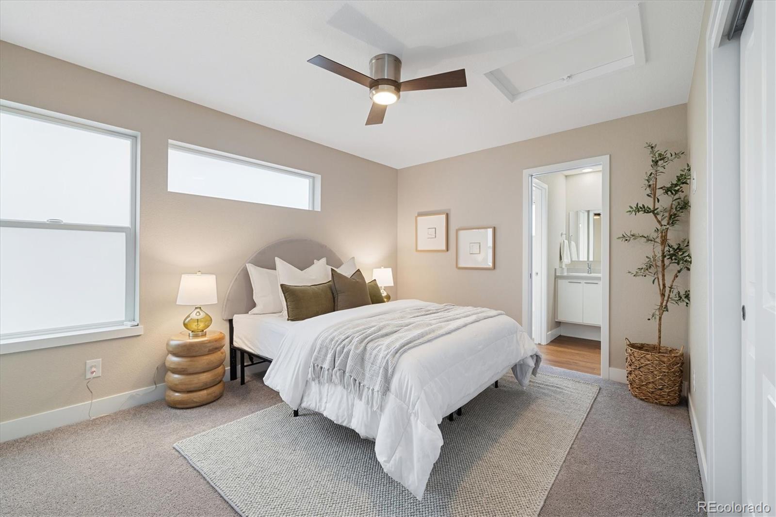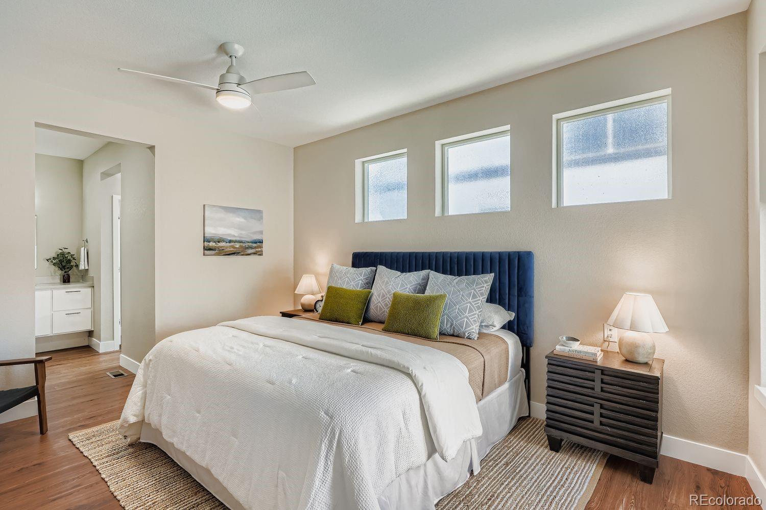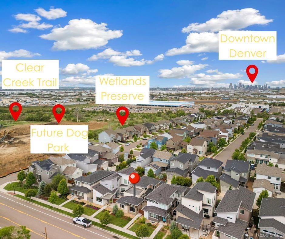 FOR VA-ELIGIBLE BORROWERS: A 2.25% VA Assumable Loan is available exclusively to qualified Active Duty or Veteran Buyers. FOR FHA and CONVENTIONAL BORROWERS: Preferred lender concession available to support a permanent Buy Down! SAVING YOU THOUSANDS ON THE LIFE OF YOUR LOAN. // Experience refined modern in this sought-after Denver Brookfield Signature 1 floorplan. A main-floor primary suite and elegant upgrades create a seamless flow throughout, while soaring vaulted ceilings and expansive windows amplify natural light. Freshly painted interiors set the stage for effortless living, and double sliding glass doors open onto a private patio—perfect for relaxed mornings or evening entertaining. The chef’s kitchen features terrazzo quartz counters, Bosch stainless steel appliances, full-height penny tile backsplash & modern open shelving. A new designer chandelier adds a refined touch to the dining area. The main level primary suite offers a serene retreat with an en-suite bath, dual vanities, a walk-in shower, and a custom walk-in closet. Also on the main floor: a stylish mudroom, laundry area with extra storage, durable vinyl flooring & direct access to the intimate side yard through sliding patio doors. Upstairs, two spacious bedrooms share a Jack-and-Jill bath. Brand New carpet & upgraded padding throughout! Fully finished basement with a large rec room, a fourth bedroom & full bath, plus a dedicated office that can easily convert into a fifth bedroom. Pre-wired for surround sound and a security system, with Ethernet ports in every room supporting gigabit-speed internet. Professionally maintained front yard & an extended concrete patio wired for a hot tub. Explore local favorites like Bruz Beers (with rotating food trucks) & Early Bird Café, and a brand new Trader Joe's in Westminster. Families will appreciate proximity to Trailside Academy (K–8) & Midtown Montessori. The vibrant Sunnyside neighborhood—with boutique shops and dining—is minutes away!