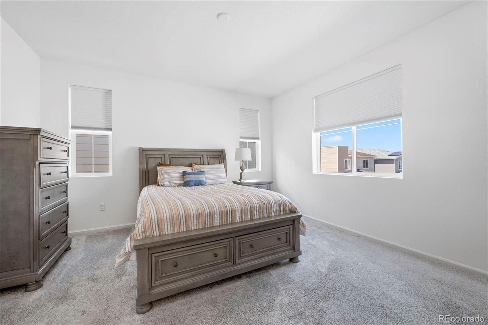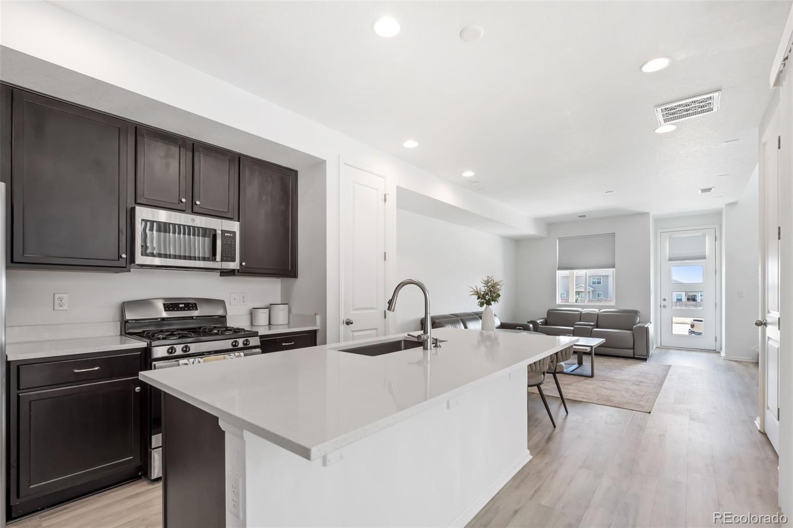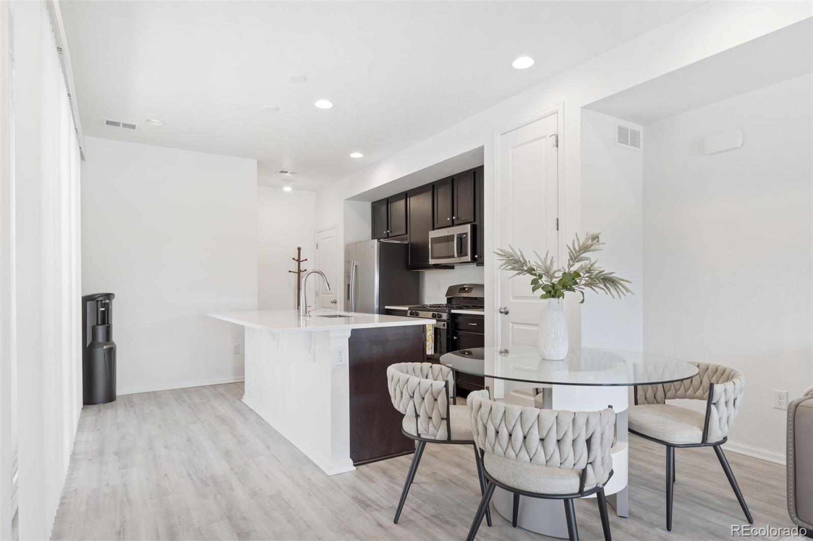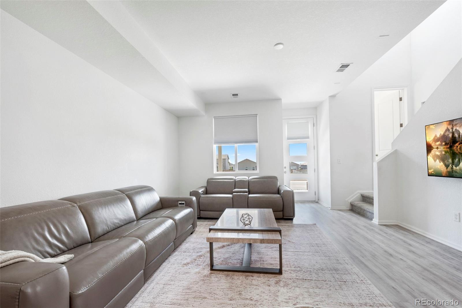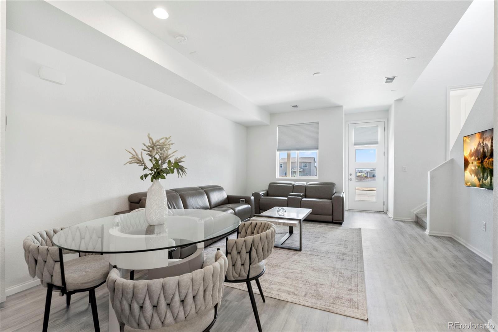 Don’t wait for new, when this beautifully upgraded paired home has been meticulously maintained and is move-in ready today! Offering a bright open floorplan with LVP flooring throughout the main level and an abundance of windows streaming in natural light. Upon entry, the family room opens to the dining area and spacious kitchen with center island, breakfast bar, access to the private patio, and all appliances including a gas range oven. Upstairs, find the primary suite with three quarter bathroom and walk-in closet! The upstairs also features a large secondary bedroom and additional full bathroom. This home also offers an attached 2-car garage, and is within walking distance to neighborhood parks, Second Creek Open Space, and within minutes to Buffalo Run Golf Course, Reunion Park and lake, Bison Ridge Rec Center, restaurants, shopping and major routes for easy commutes to work or DIA!