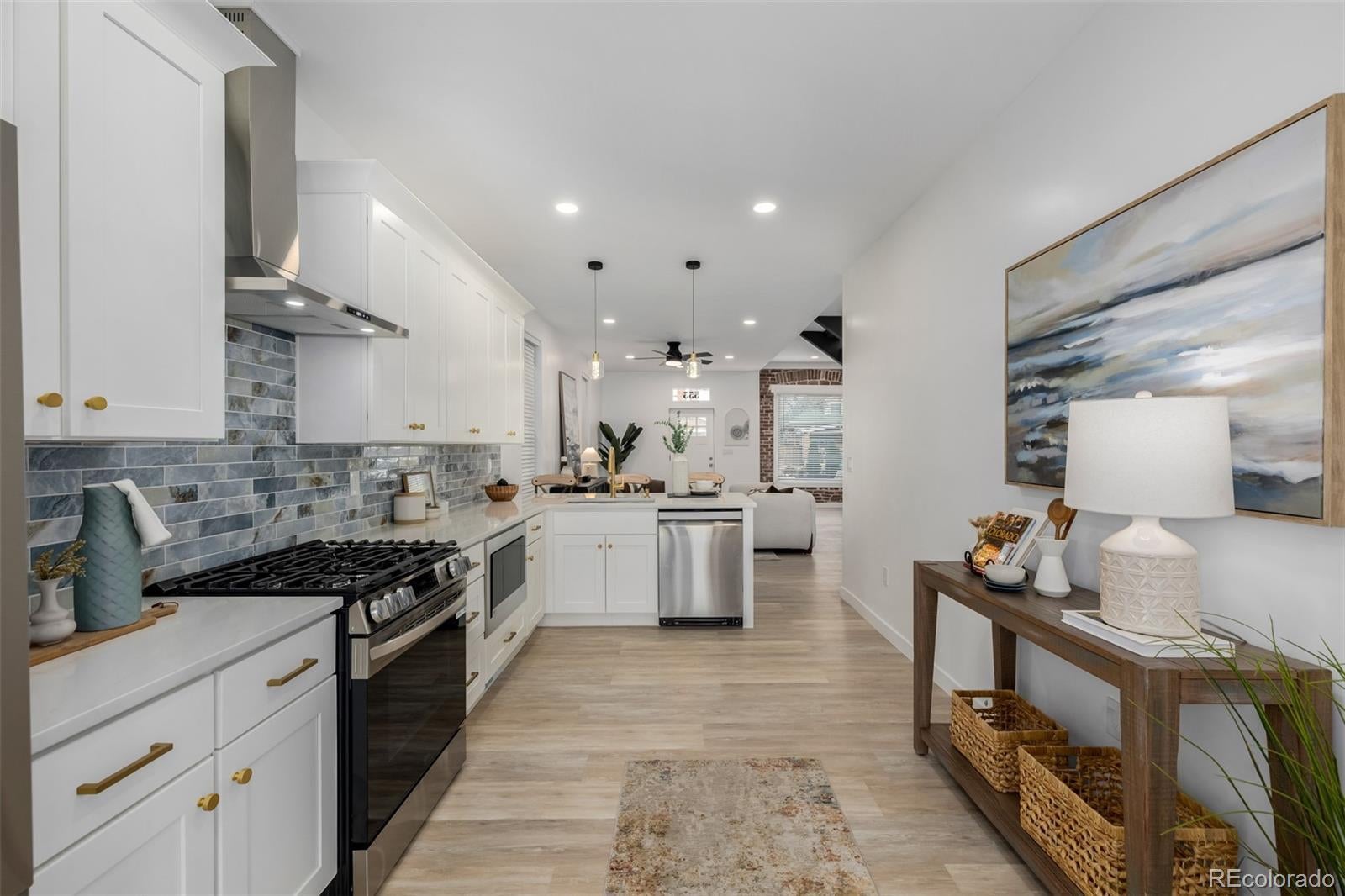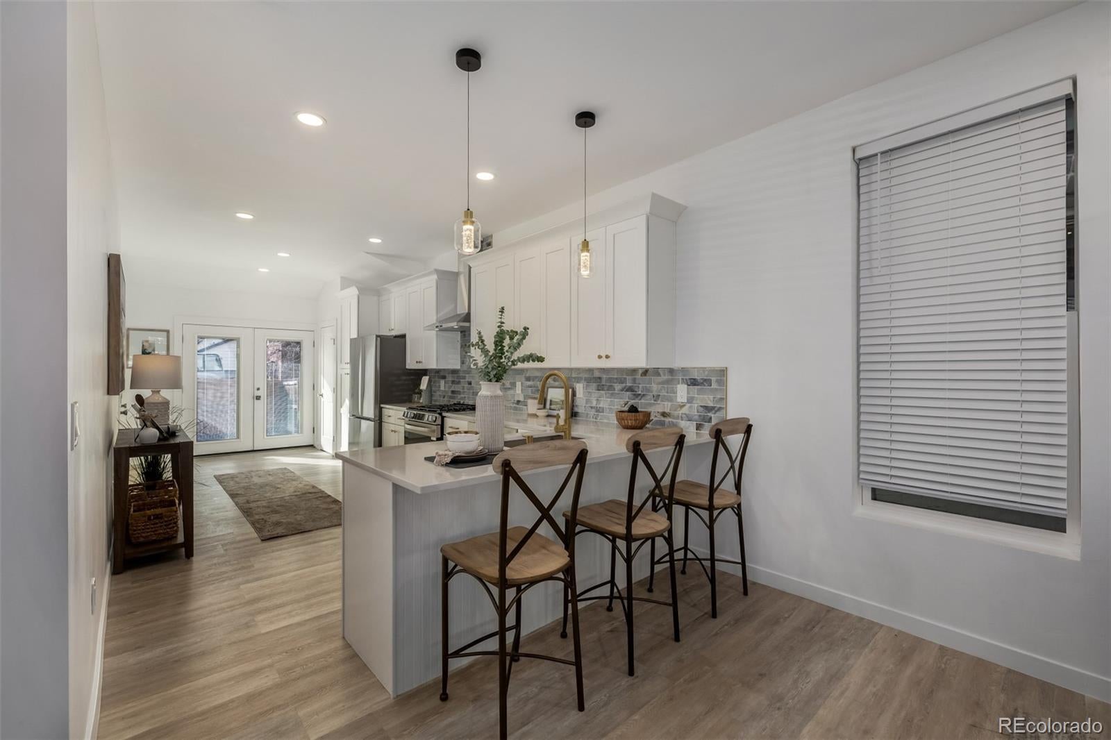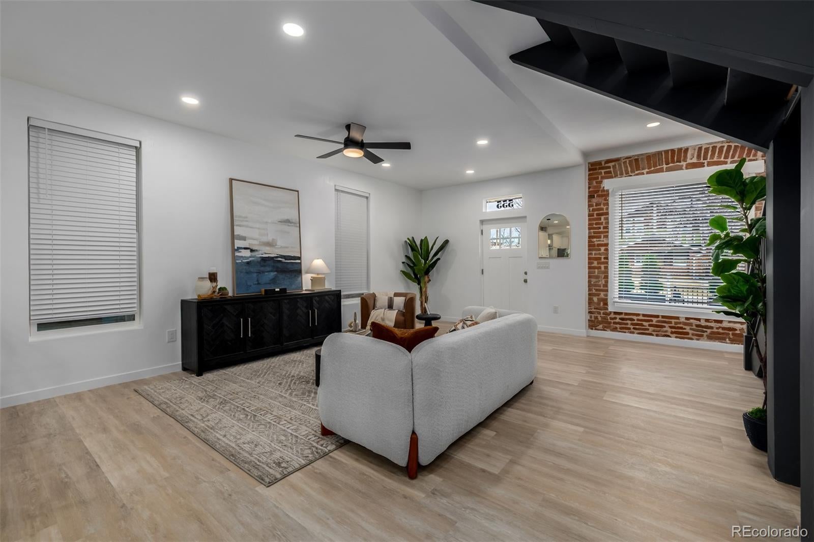 Charming and beautifully updated historic 1880 bungalow located in the highly desirable West Washington Park neighborhood, thoughtfully blending timeless architectural character with a fully remodeled, open-concept modern floor plan. Extensively renovated throughout, this home features new windows and skylights, new doors, new modern flooring ,fresh interior paint, and quality finishes that create a warm, refined living environment. The welcoming front patio sets the stage for the inviting interior, where high ceilings and a stunning staircase serve as an elegant focal point in the main living area. The open layout flows seamlessly into the dining space, highlighted by expansive windows that fill the home with natural light, creating an ideal setting for both everyday living and entertaining. Each generously sized bedroom includes its own private en-suite bathroom, offering exceptional comfort, flexibility, and functionality rarely found in historic homes of this era. The fully remodeled kitchen is both stylish and functional, featuring modern cabinetry, premium quartz countertops, and high-end stainless steel appliances, all designed to integrate effortlessly with the home’s open living spaces. Major system upgrades include a new furnace, new central air conditioning, new tankless water heater, and new modern LED lighting, providing enhanced efficiency and year-round comfort. Outdoor spaces are equally inviting, with two spacious patios ideal for relaxing or entertaining, professionally designed xeriscape front and back yards for low-maintenance living, and convenient three-car parking. Ideally positioned just blocks from Washington Park and close to local shops, restaurants, markets, and major commuter routes including I-25, this home offers a rare opportunity to own a beautifully updated historic residence in one of Denver’s most sought-after neighborhoods.