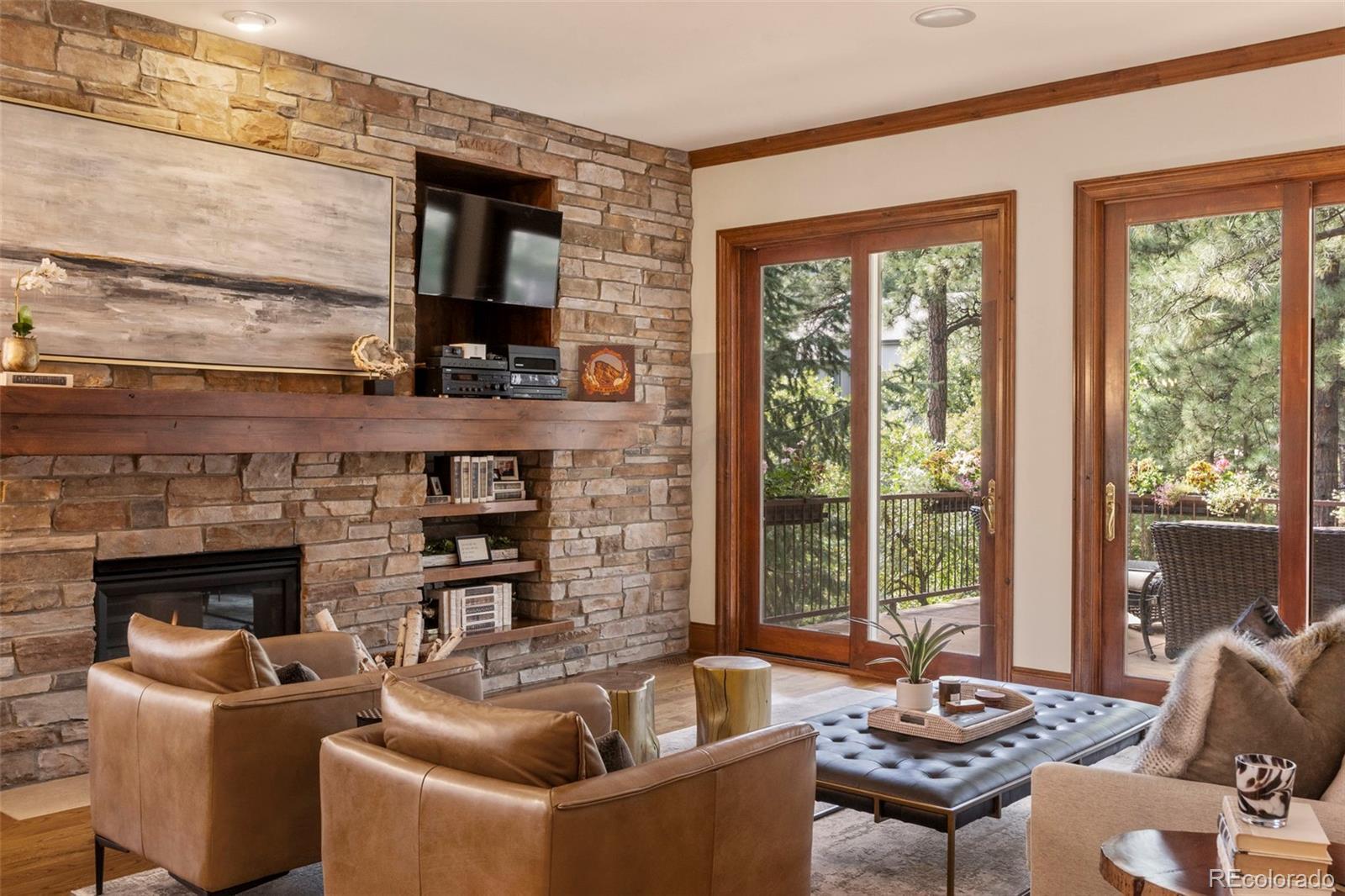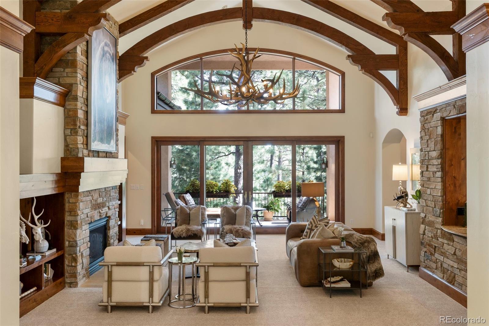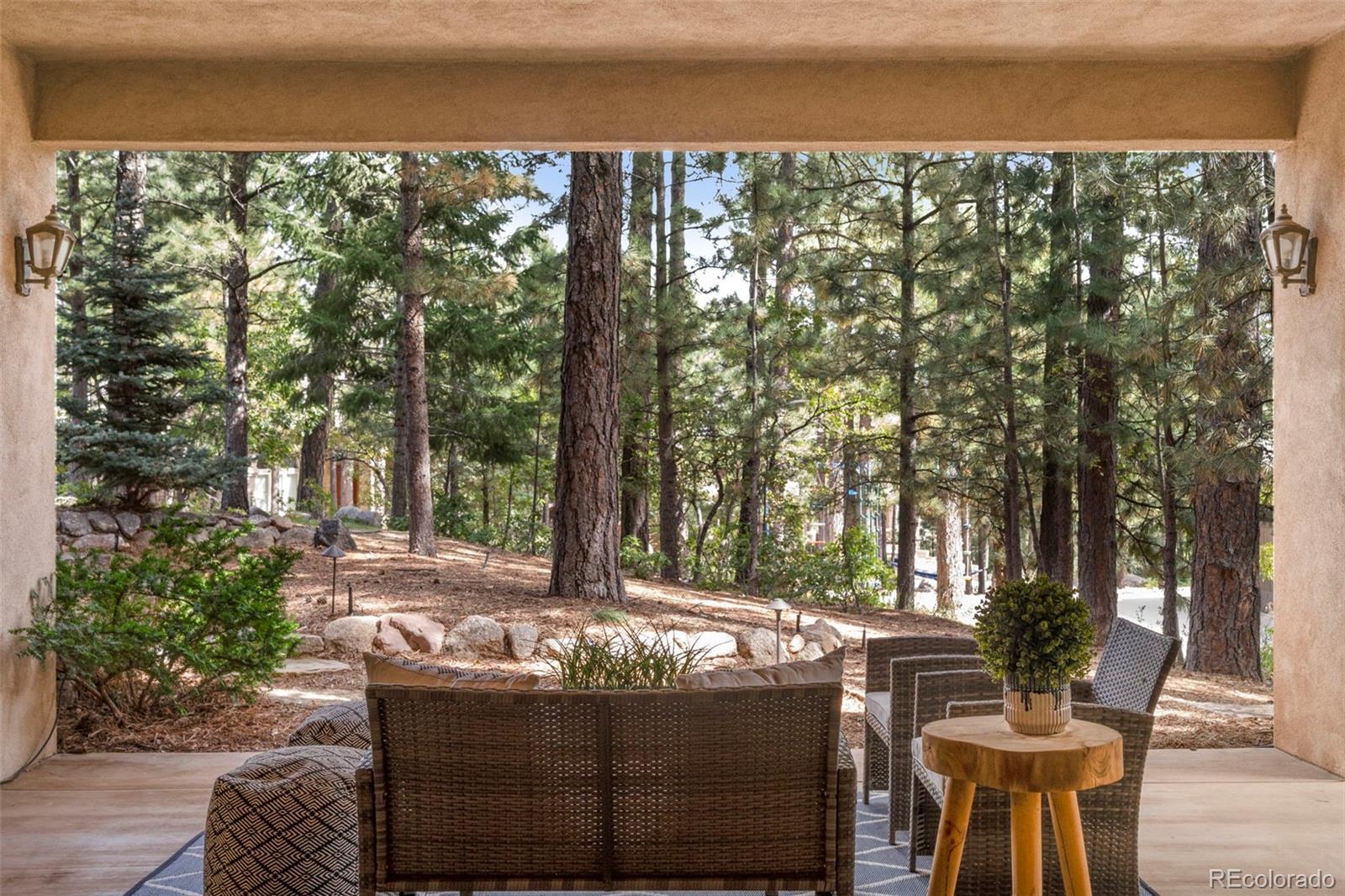 Tucked among towering pines in the coveted Broadmoor Resort Community, this exceptional 6,500-square-foot luxury lodge offers refined elegance, set amid serene mountain surroundings. Soaring ceilings, expansive windows, and warm, nature-inspired finishes create a seamless connection between indoor and outdoor living. Grand iron entry doors welcome you into interiors rich with custom wood trim, artisan stonework, and timeless textures throughout. The breathtaking great room showcases vaulted ceilings with exposed beams, a dramatic floor-to-ceiling stone fireplace, and walls of glass that frame tranquil forest views while flooding the home with natural light. Open dining and living areas flow effortlessly, ideal for both entertaining and everyday comfort. The gourmet kitchen is a showpiece, featuring a professional-grade Wolf gas range, Sub-Zero refrigerator, two dishwashers, and designer finishes. The home offers four spacious bedrooms, three full baths, and one half bath, and multiple gathering spaces, including a private theatre room and an executive office with custom millwork. Handcrafted fireplaces and curated designer details elevate every space. Enjoy covered terraces and private outdoor living areas surrounded by nature, with convenient access to world-class resort amenities, championship golf, hiking trails, and the unparalleled Broadmoor lifestyle—a rare opportunity to own a sophisticated mountain retreat in one of Colorado’s most sought-after communities. Buyer has the option to purchase a Broadmoor Golf Club Membership.