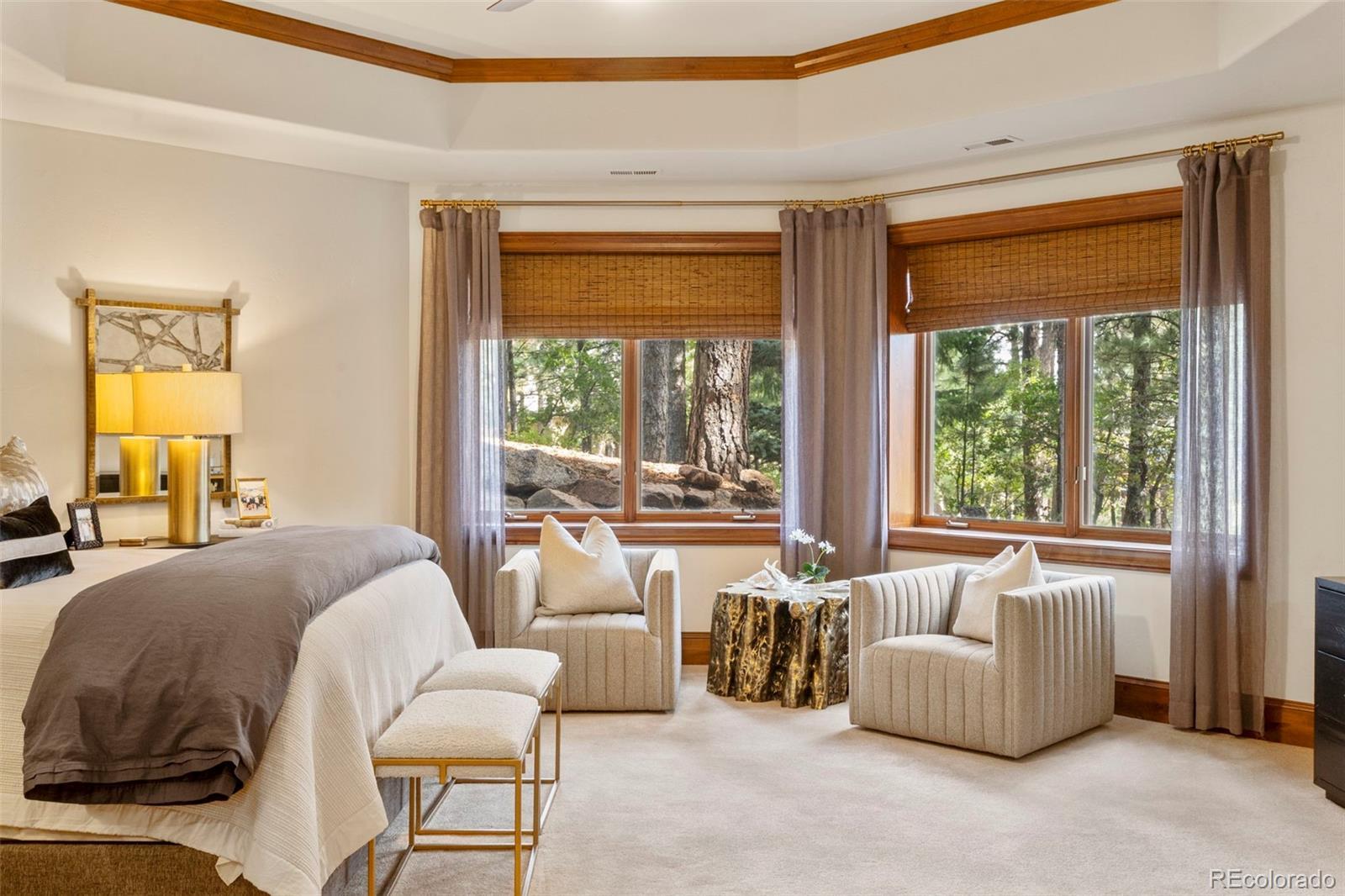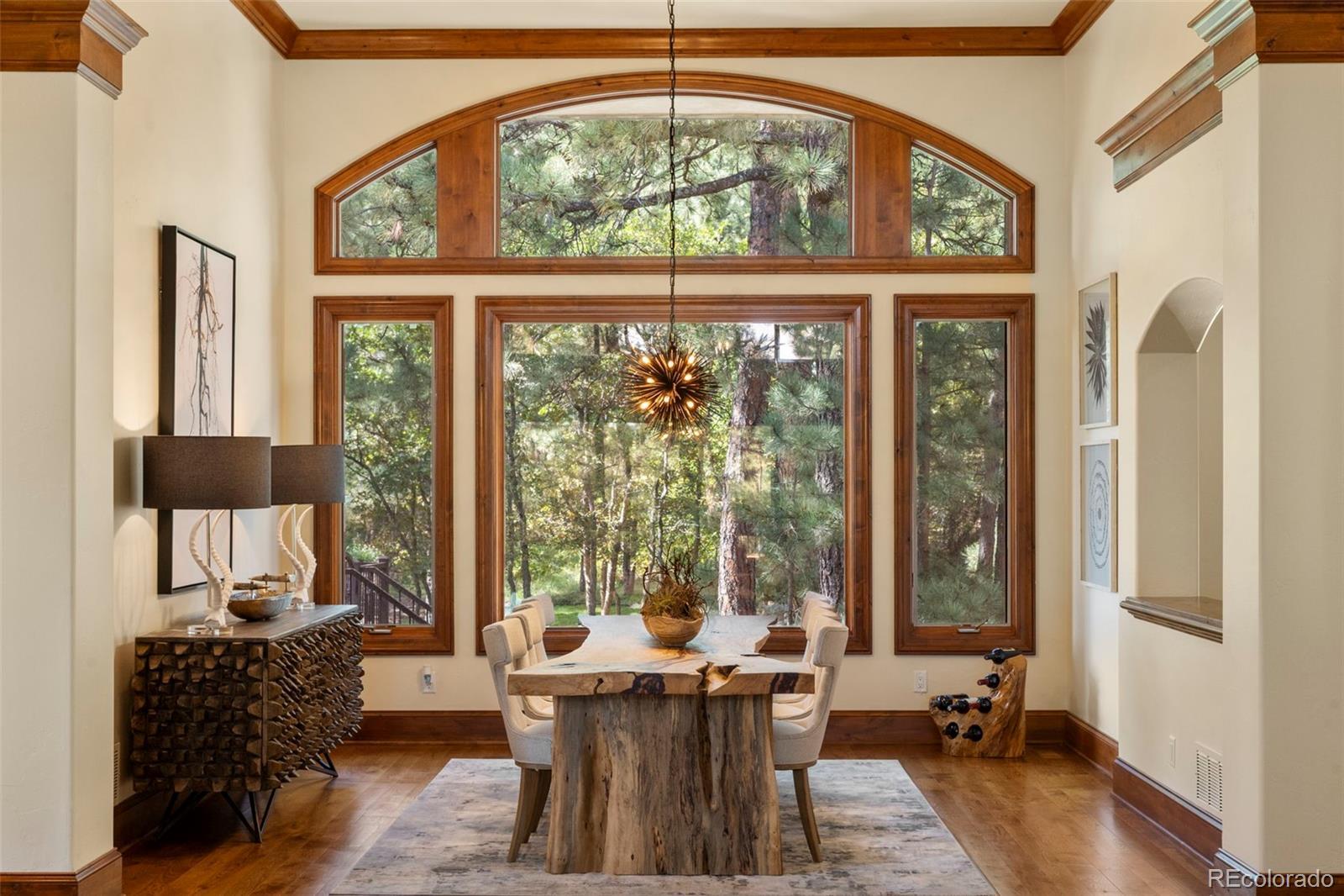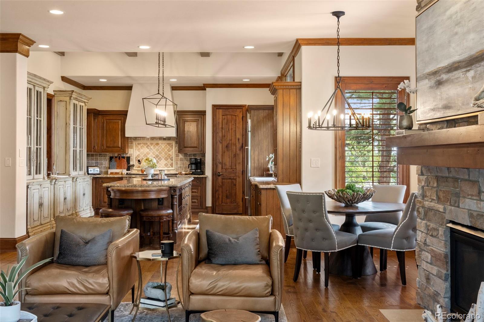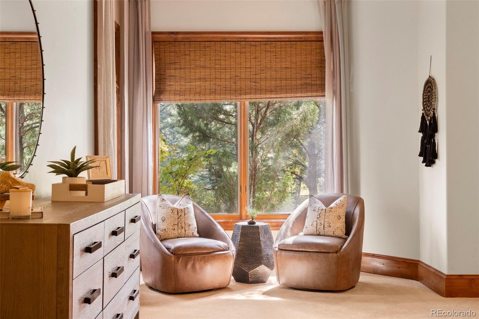 Tucked among towering pines in the coveted Broadmoor Resort Community, this exceptional 6,500-square-foot luxury lodge offers refined elegance, set amid serene mountain surroundings. Soaring ceilings, expansive windows, and warm, nature-inspired finishes create a seamless connection between indoor and outdoor living. Grand iron entry doors welcome you into interiors rich with custom wood trim, artisan stonework, and timeless textures throughout. The breathtaking great room showcases vaulted ceilings with exposed beams, a dramatic floor-to-ceiling stone fireplace, and walls of glass that frame tranquil forest views while flooding the home with natural light. Open dining and living areas flow effortlessly, ideal for both entertaining and everyday comfort. The gourmet kitchen is a showpiece, featuring a professional-grade Wolf gas range, Sub-Zero refrigerator, two dishwashers, and designer finishes. The home offers four spacious bedrooms, three full baths, and one half bath, and multiple gathering spaces, including a private theatre room and an executive office with custom millwork. Handcrafted fireplaces and curated designer details elevate every space. Enjoy covered terraces and private outdoor living areas surrounded by nature, with convenient access to world-class resort amenities, championship golf, hiking trails, and the unparalleled Broadmoor lifestyle—a rare opportunity to own a sophisticated mountain retreat in one of Colorado’s most sought-after communities. Buyer has the option to purchase a Broadmoor Golf Club Membership.