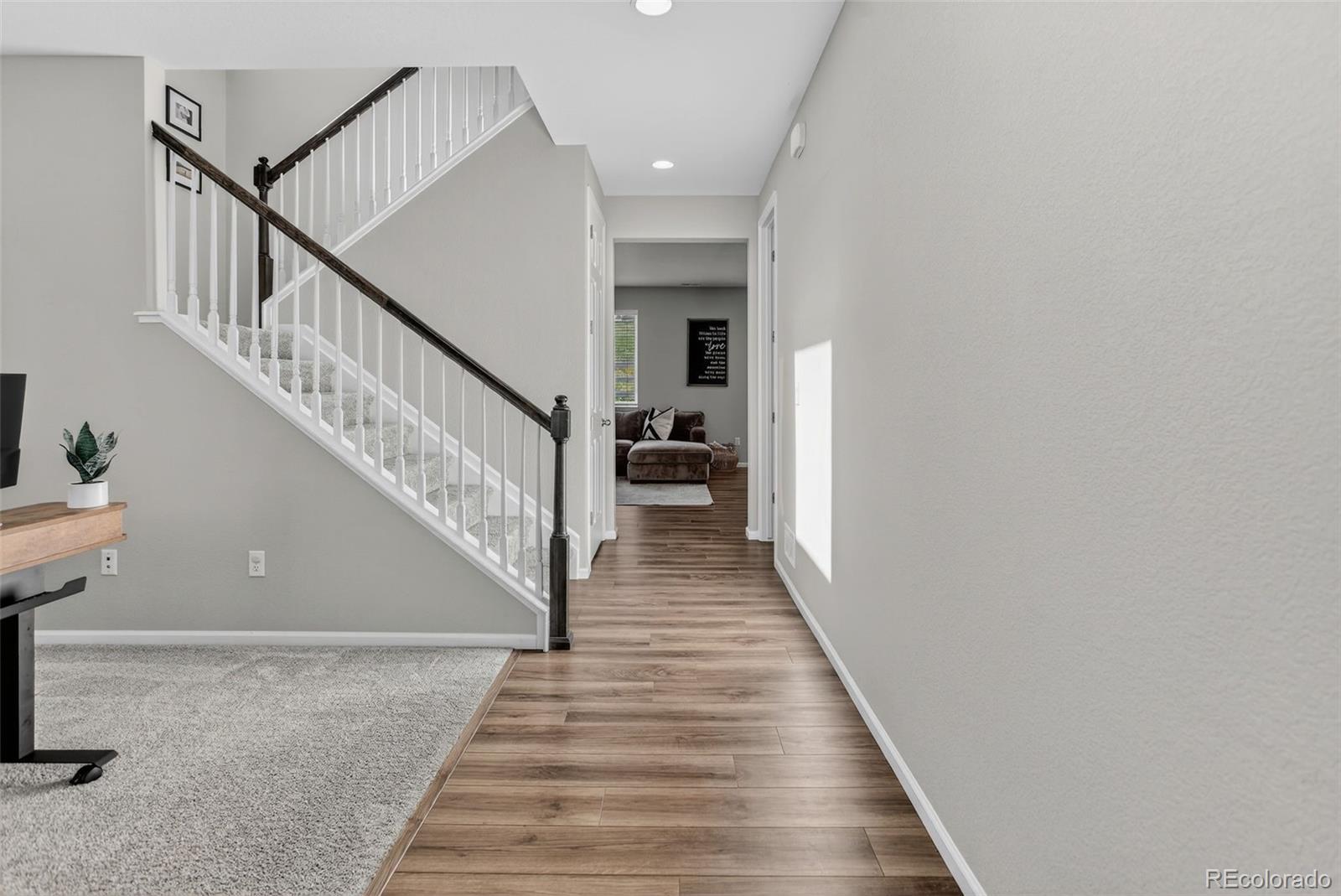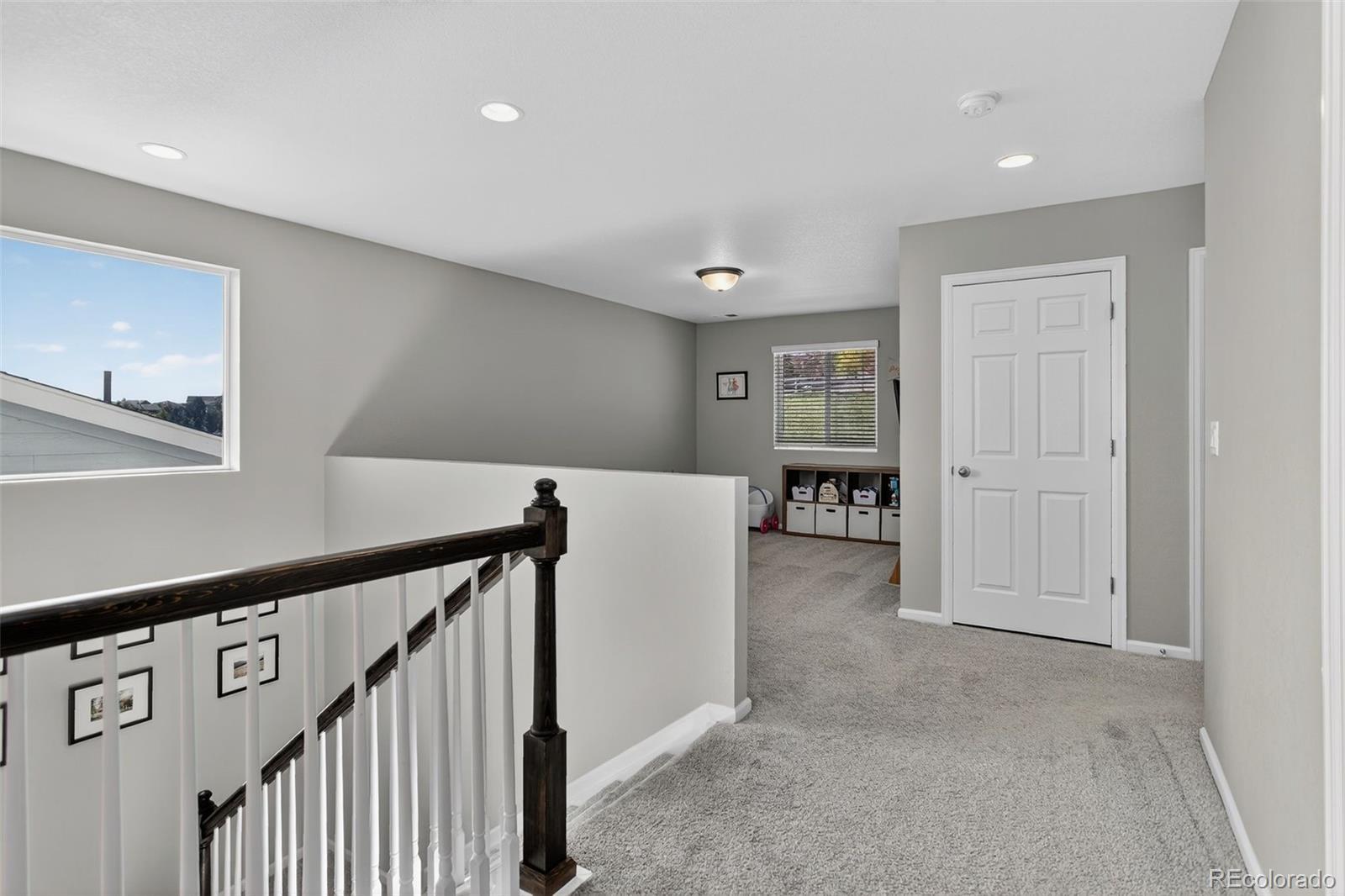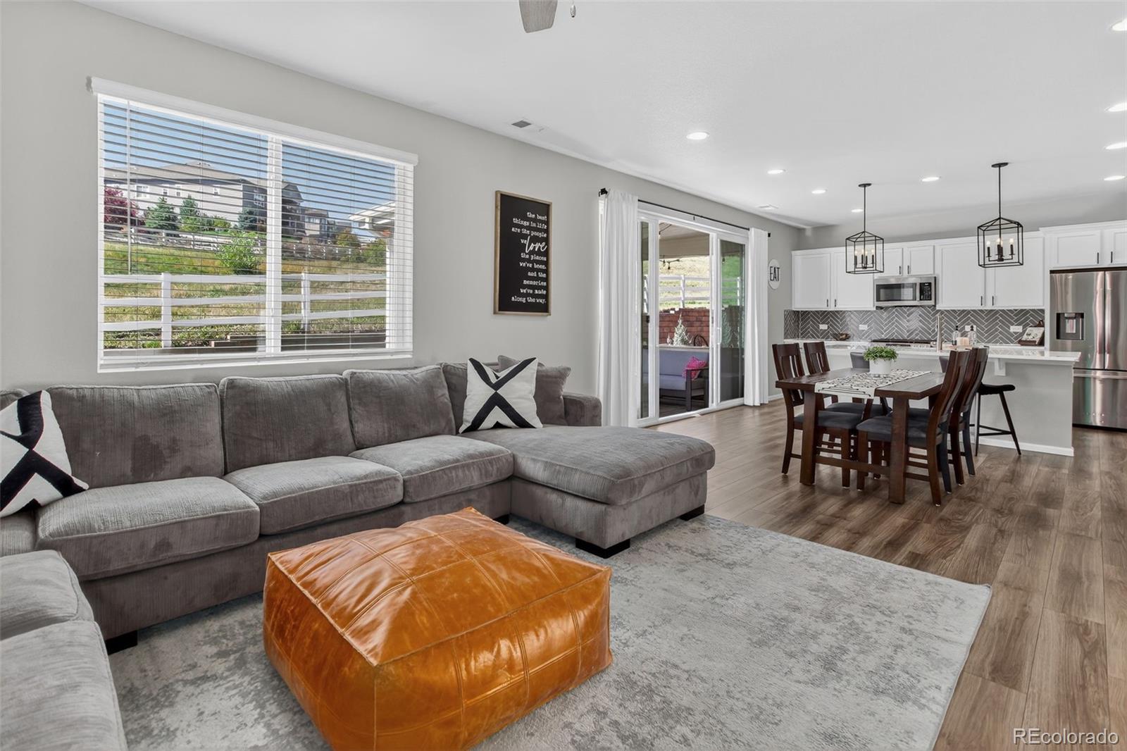 This stunning 3-bedroom, 2.5-bath home offers designer finishes, a gourmet kitchen, with quartz countertops, large center island walk-in pantry, stainless steel appliances and a gas range. The open, spacious main floor layout perfect for both everyday living and entertaining. Meticulously maintained and feeling brand new, this home shines with modern style and comfort. You'll also love the lot location, backing to open space and offering you a feel The main level features a versatile front living room, ideal as a home office or flex space. The light-filled great room that flows seamlessly into the kitchen and dining area. Step outside to a covered patio and beautifully landscaped backyard that creates a wonderful transition to outdoor living. Upstairs, retreat to the spacious primary suite complete with an en-suite bathroom and a large walk-in closet. A cozy loft area provides the perfect kids’ retreat, second living space, or media area. Two additional bedrooms and a full bath complete the upper level. 2 car attached garage, equip with EV charger for your Electric Vehicles. Don't forget about massive crawlspace that is the full footprint of the main level approximately and 5ft in height. The space can provide all the storage space that you deem necessary. The community itself offers desirable amenities, parks, and outdoor recreation, and the location can’t be beat—just minutes from excellent dining, shopping, and with easy access to I-25 for a smooth commute. With its thoughtful design, tasteful landscaping, and modern finishes throughout, 1652 Cade Ave is truly move-in ready and waiting to welcome you home.