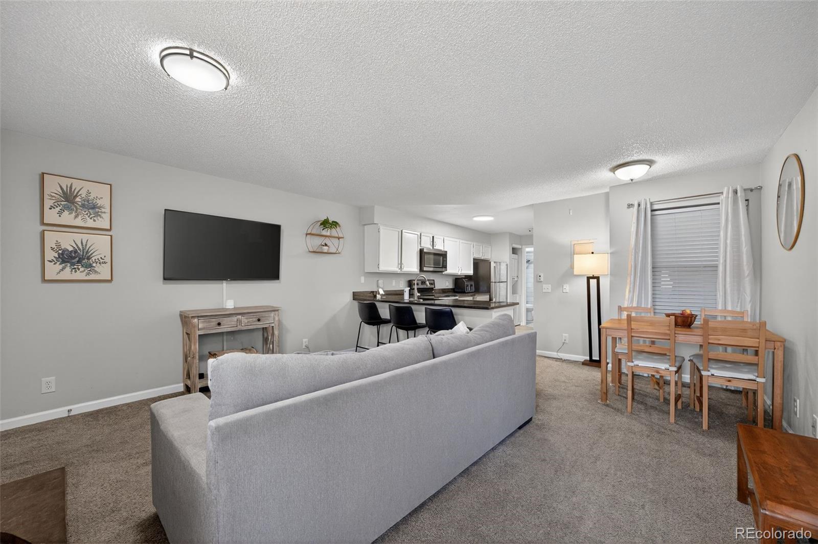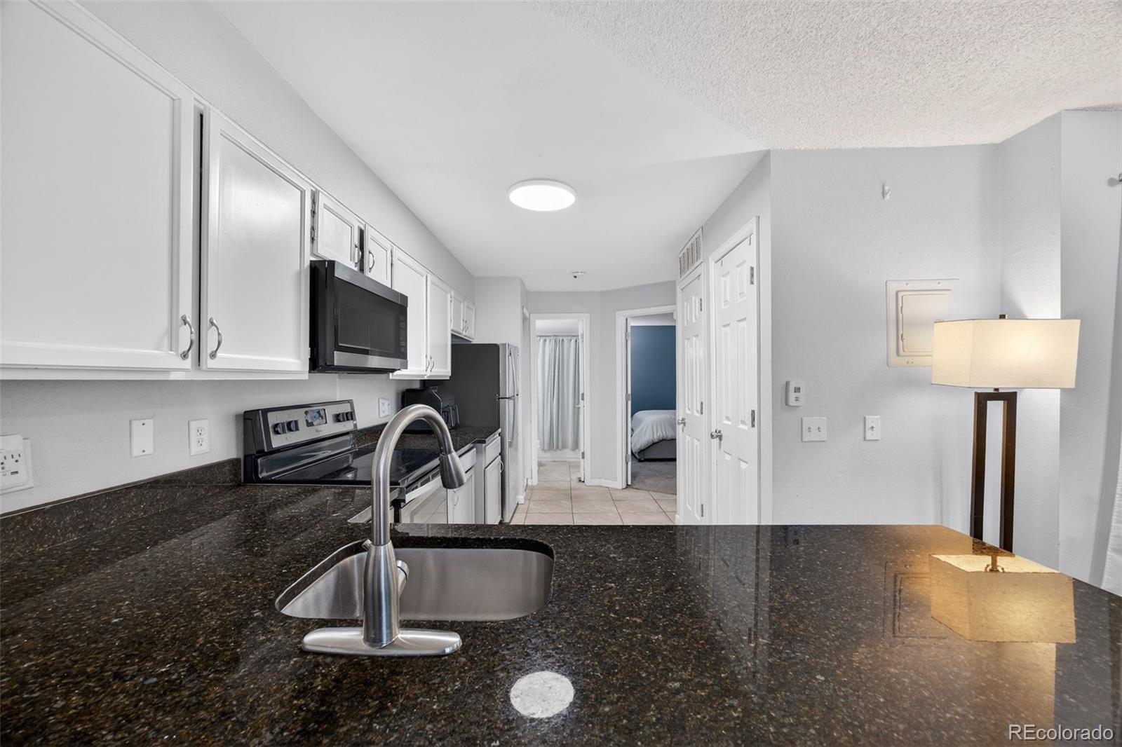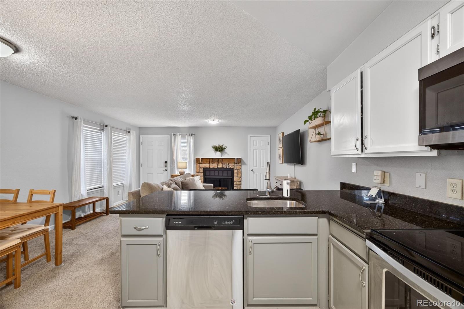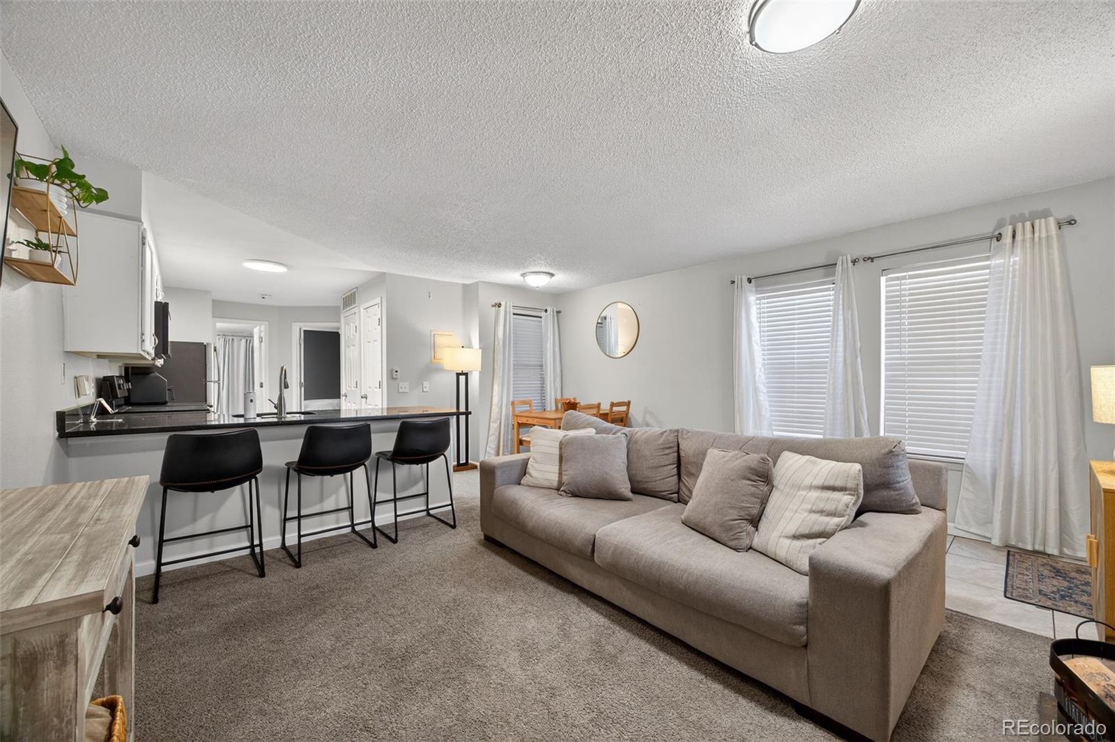 Welcome to your new happy place! This 1-bedroom, 1-bath end-unit on the lower level no stairs condo brings the perfect mix of style, comfort, and easy living — with zero to-do list and maximum peace of mind. Kitchen is ready to impress with sleek granite countertops and stainless steel appliances, making even takeout look gourmet. The open layout keeps everything feeling airy and connected. Your spacious bedroom includes a large walk-in closet (hello, shoe collection!), and the updated bathroom keeps things fresh and clean. Newer furnace with warranty and washer/dryer included. Just steps away, the community pool is waiting for your sunglasses, and summer playlists. You’re close to shopping, dining, and major commuter routes — so everything you need is right where you want it. Even better, the HOA covers exterior building maintenance, so you can spend less time worrying and more time enjoying. Perfect for a first-time home buyer and also a smart investment property, this end unit is cute, convenient, and completely move-in ready — proof that great things really do come in smart, stylish packages.