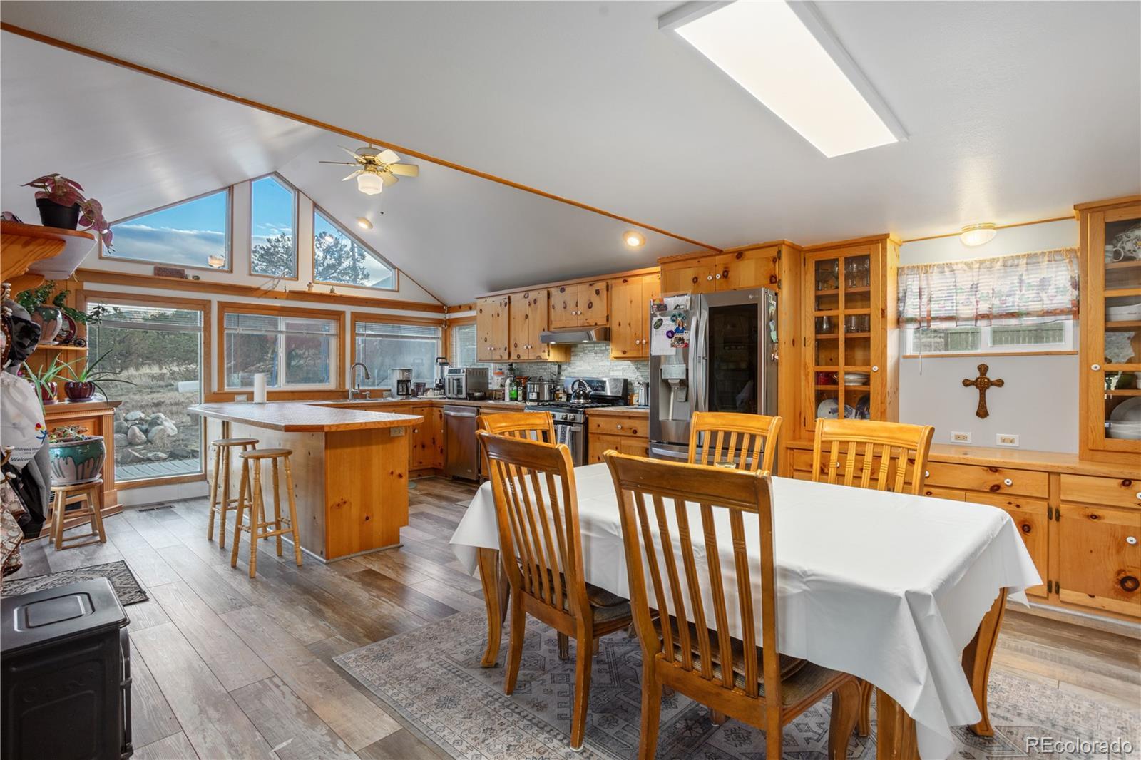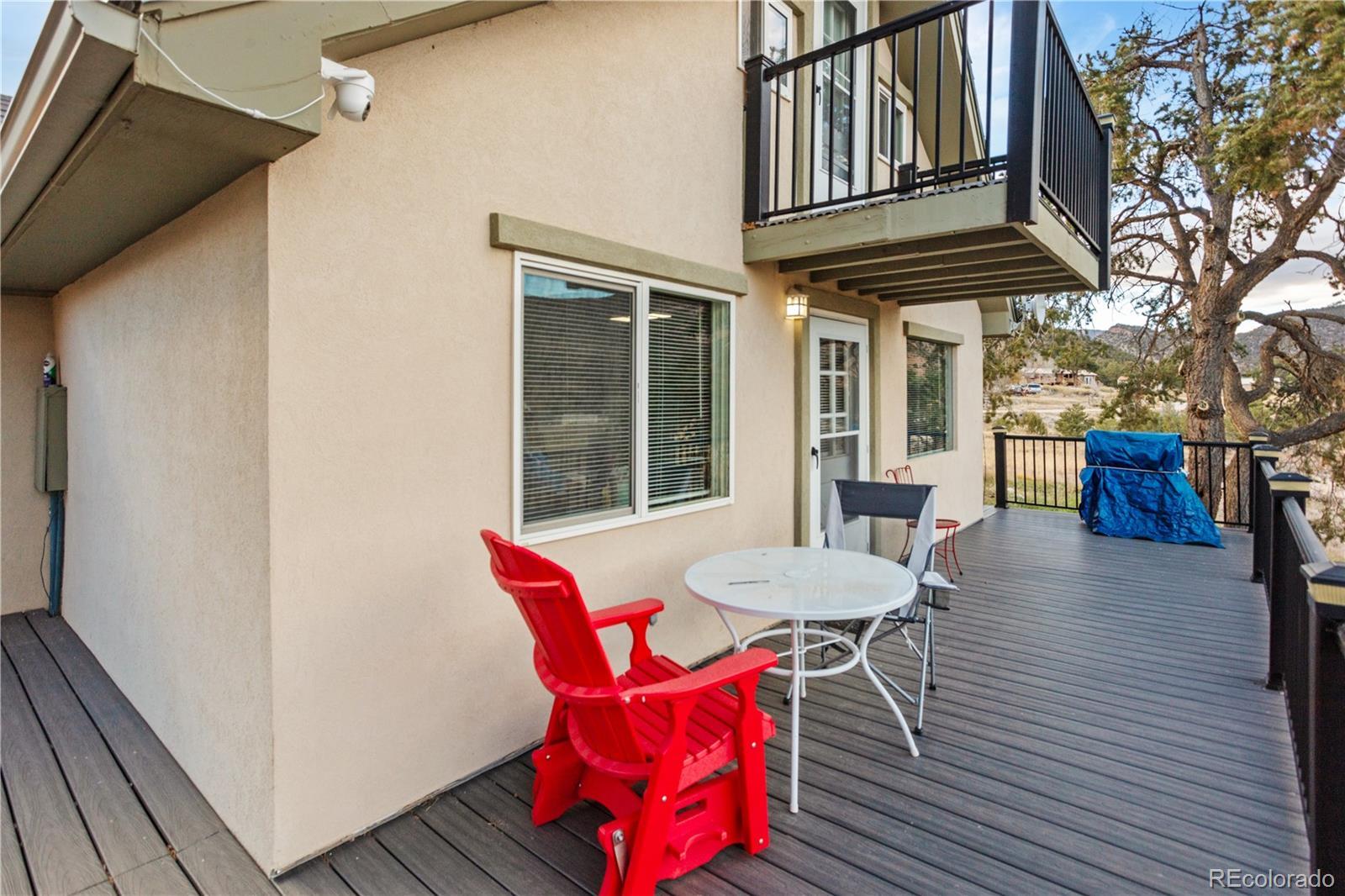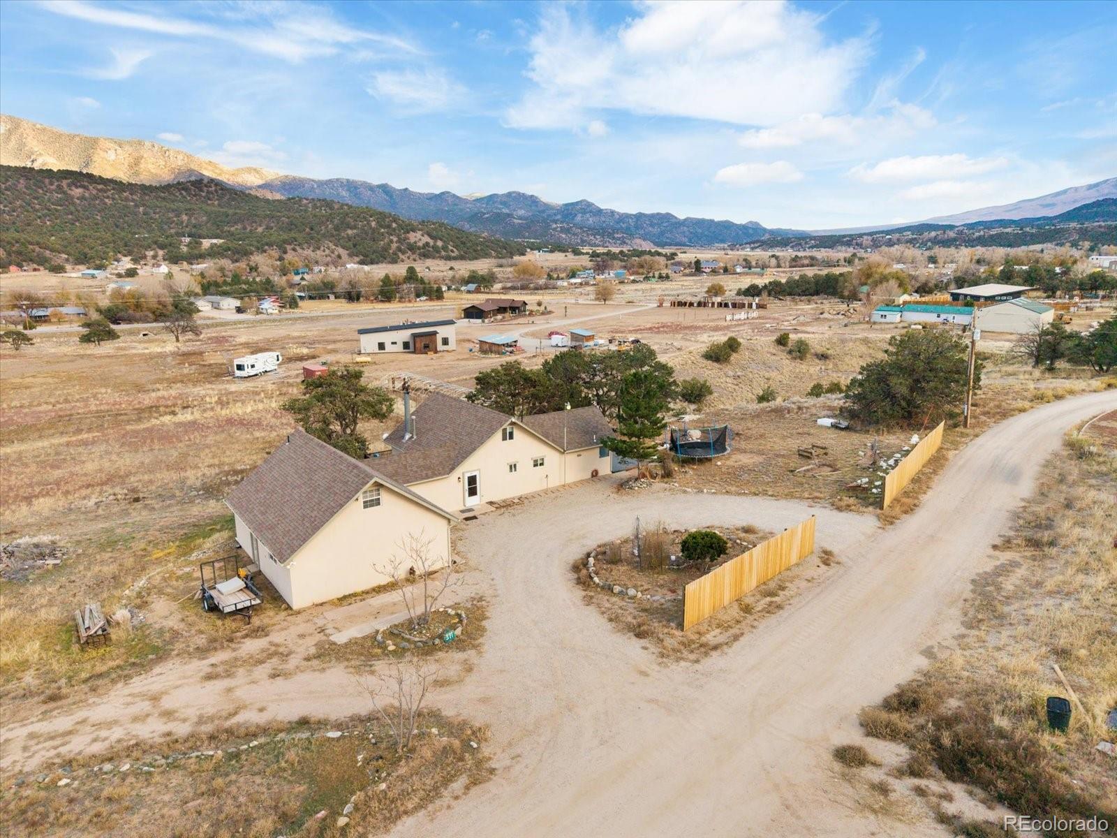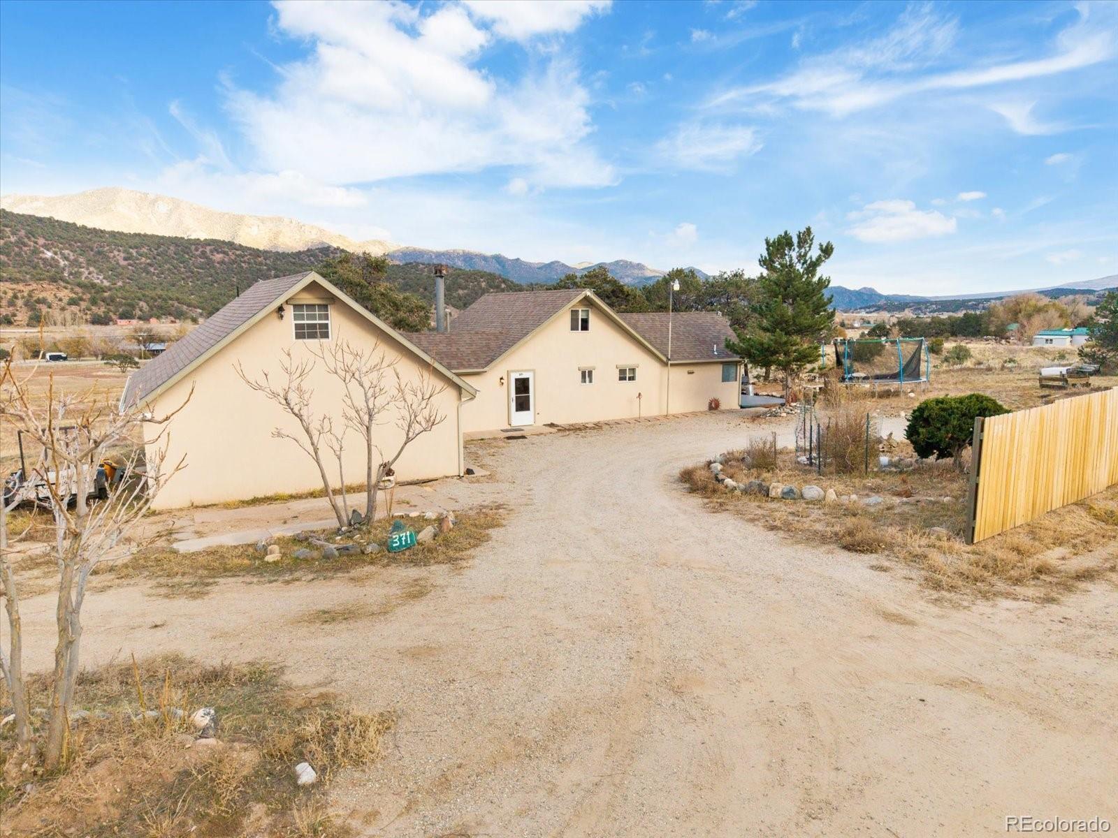This updated 4-bedroom, 3-bathroom home is located in the charming small community of Howard and sits on a spacious 1-acre lot, offering spectacular views of the Sangre De Cristo Mountain Range and easy access to the Arkansas River's Gold Medal Fishing waters. The home features a large, bright kitchen with a generous bar and counter space, newer vinyl tile on the main level and a cozy wood-burning fireplace in the family room. The 4th bedroom and 3rd bathroom are located in a separate space with an independent entrance located above the garage... think private studio space or guest room. Outside, enjoy newer stucco, roof, gutters and decking. The patio spaces are extensive and there's French drains too. You will appreciate the ample availability for parking of RV's, trailers or new workshop/garage, all without the restrictions of a Homeowners Association or covenants. Located on the west side of Howard, it's just a scenic 15-minute drive east along the river to Salida, 45 minutes to Monarch Mountain Ski Resort, and 45 minutes to CaƱon City.