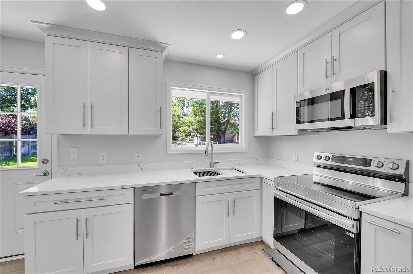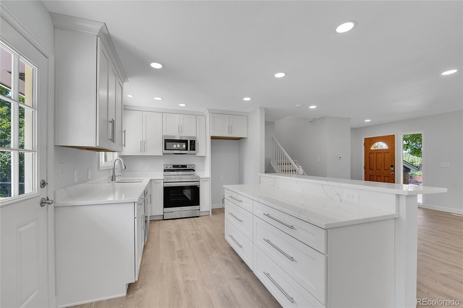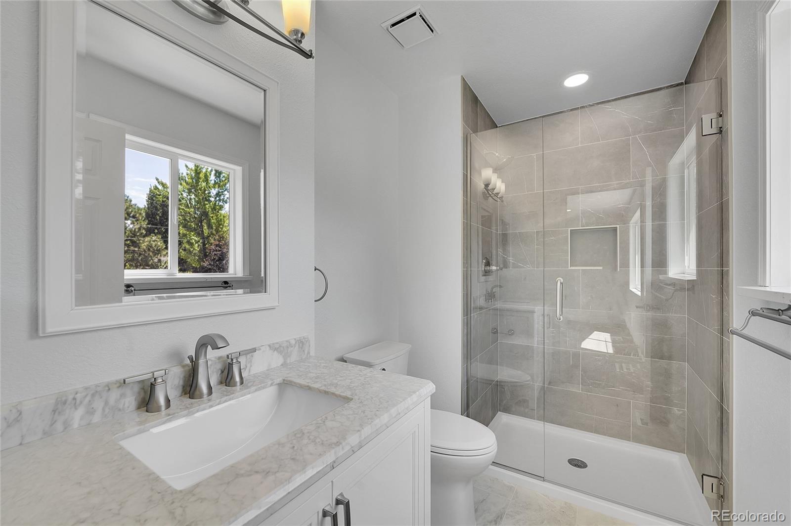 Ideal Location within Walnut Hills! Steps away from WH elementary school, South Suburban Parks and Recreation Tennis Courts, walking/bike paths, frisbee golf course and Walnut Hills park. Easy access to Castlewood Library, RTD bus pick up, Arapahoe County public pick up, light rail system, shopping, banking, Park Meadows Mall, 1-25 and C-470. Professional quality craftsmanship and design. Exterior Features include: Automatic photocell security and accent lighting, Cat 5 wired security cameras, Garage Door Opener keypad, newer Garage Door Opener with 2 transmitters, fully insulated and drywalled garage is wired for EV (240v), newer freeze free spigots, fully fenced good sized flat back yard, full yard sprinkler system with smart wiFi controller and more. Interior Features include: Totally open main floor with new kitchen cabinets and appliances, polished Avenza quartz kitchen countertops, quality Lifeproof waterproof vinyl plank flooring (Sterling Oak), substantially updated electrical system with newer 200 amp main breaker electrical panel box, LED color changing lighting throughout, LED vanity lighting in the upper level bathrooms and the dining room chandelier were created by Progress Lighting, new 2025 HW tank, significant updated and upgraded plumbing with ball valves at all sinks, toilets, dishwasher, ice maker, line, washing machine, and sprinkler system shut off points, newer air conditioning system, easy Kwikset smart keypad with Z-Wave Tech.(front door) and security locks throughout (re-key locks yourself), new marble bathroom vanity tops, fabulous new shower and bathtub, toilets, sinks, hardware, beautiful porcelain floor and wall tiles (spares available) mirrors and exhaust fans, new shower pan with new frameless, heavy glass 80" tall shower door, new semi-frameless glass bathtub door (both glass doors have easy clean protective coating), new ceiling fan in master suite, Artika LED lighting in the lower level bath.