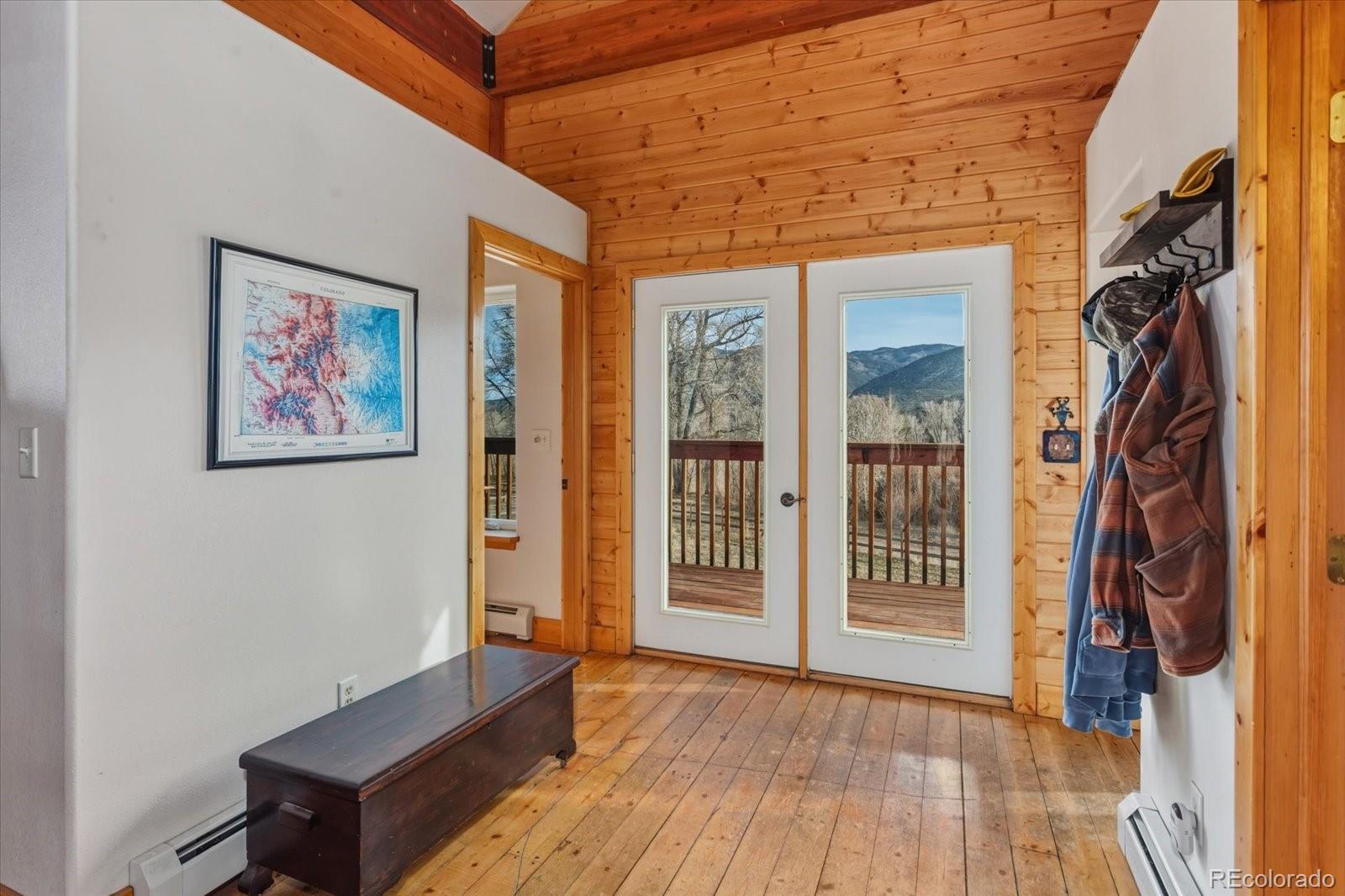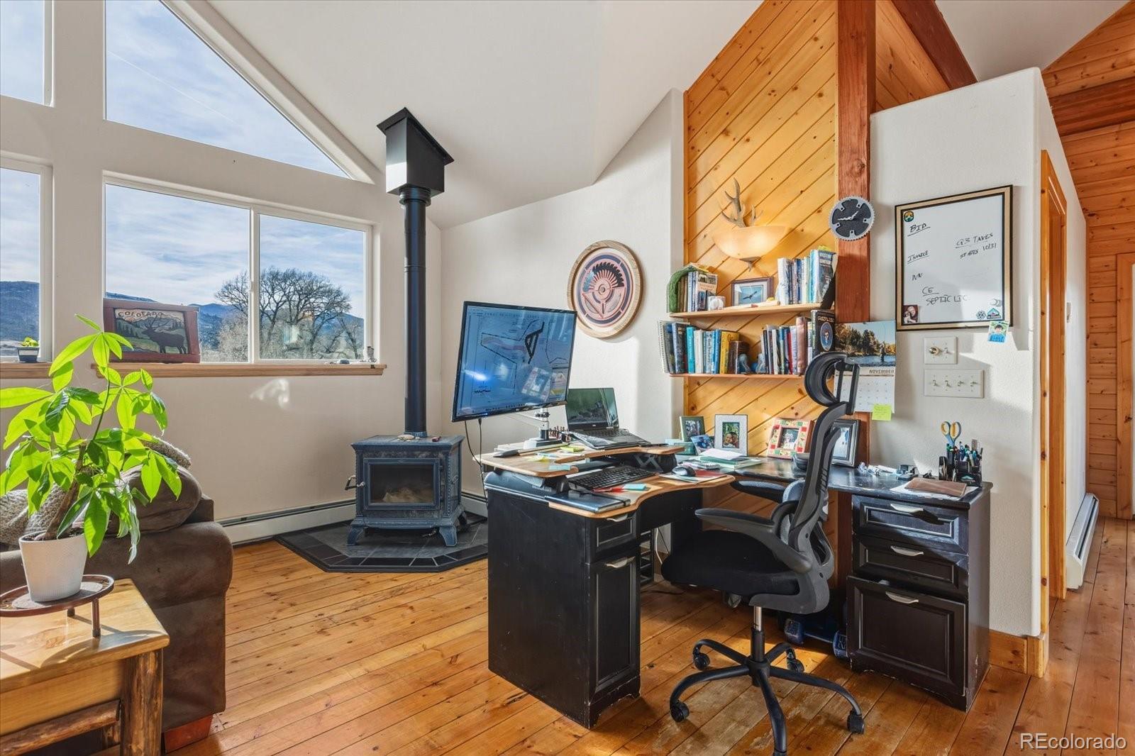 This is a true barndominium horse property with water rights, irrigated pasture, and a full equestrian setup on almost fifteen acres just outside Salida. The home sits above the working barn and captures long views of the Collegiate Peaks and the Arkansas River valley. The lower level is all function. You enter into a foyer that connects to a mudroom and laundry room, along with a three quarter bath that is ideal after barn work or time in the arena. From here you have direct interior access to the five stall barn and tack room, with wide aisles and concrete floors designed for everyday use. Upstairs is the main living space, bright and open with vaulted ceilings, exposed beams, and a wall of windows that frame the mountains. The living and dining areas flow together around a cozy stove and open to a practical kitchen with solid cabinetry and plenty of counter space. This level includes three bedrooms and a three quarter bath. Warm wood floors run throughout. Outside, the property is built for horses. There is an arena that measures about two hundred feet by one hundred fifty feet, five paddocks with loafing sheds, and vinyl fencing. About ten acres of pasture are flood irrigated, backed by strong water rights that include a one tenth ownership in the Nolan Ditch and the Pinon Ditch dedicated to CME. Additional outbuildings handle storage, tools, and equipment. The setting feels open and private, yet you are minutes from downtown Salida, Monarch Mountain, and the Arkansas River. A rare chance to own a true barndominium with real water rights, irrigated pasture, a full working barn and arena, and comfortable living space in the Heart of the Rockies.