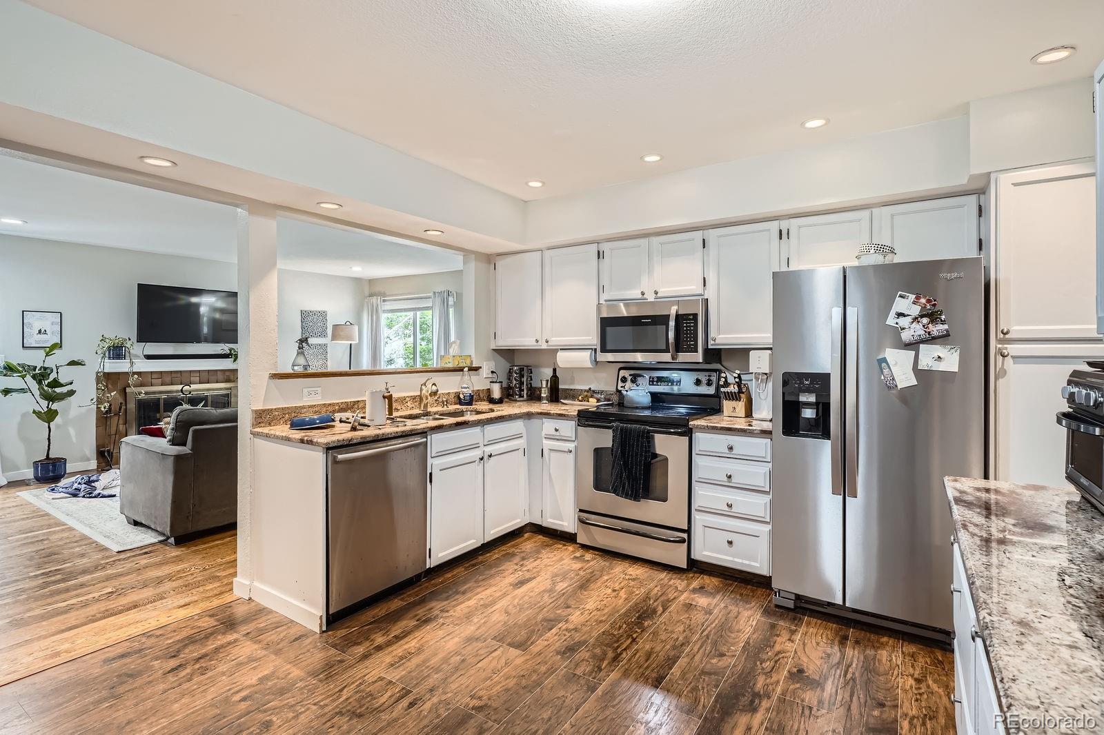 This updated Arvada single-family home, situated in a desirable cul-de-sac, offers modern finishes throughout its 3 spacious bedrooms, 3 full baths, and finished basement with over 2,300 sqft of living space. Enjoy main-floor living with a chef-friendly kitchen featuring granite countertops, a cozy living room with a fireplace, and a full-size bath. Upstairs features two nice-sized bedrooms along with an updated full bath. The basement is finished with a large living space, a bedroom, and a full bath. The property features a private, fenced backyard with a covered deck, a 2-car attached garage, and is conveniently located near a neighborhood pool, shopping, and major transportation routes, offering easy access to Denver and Boulder.