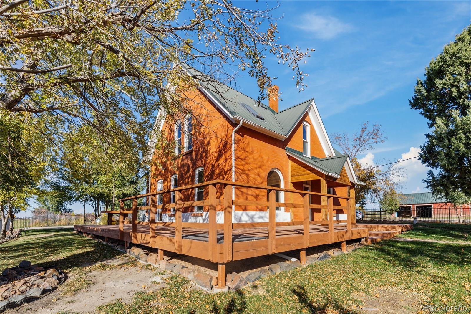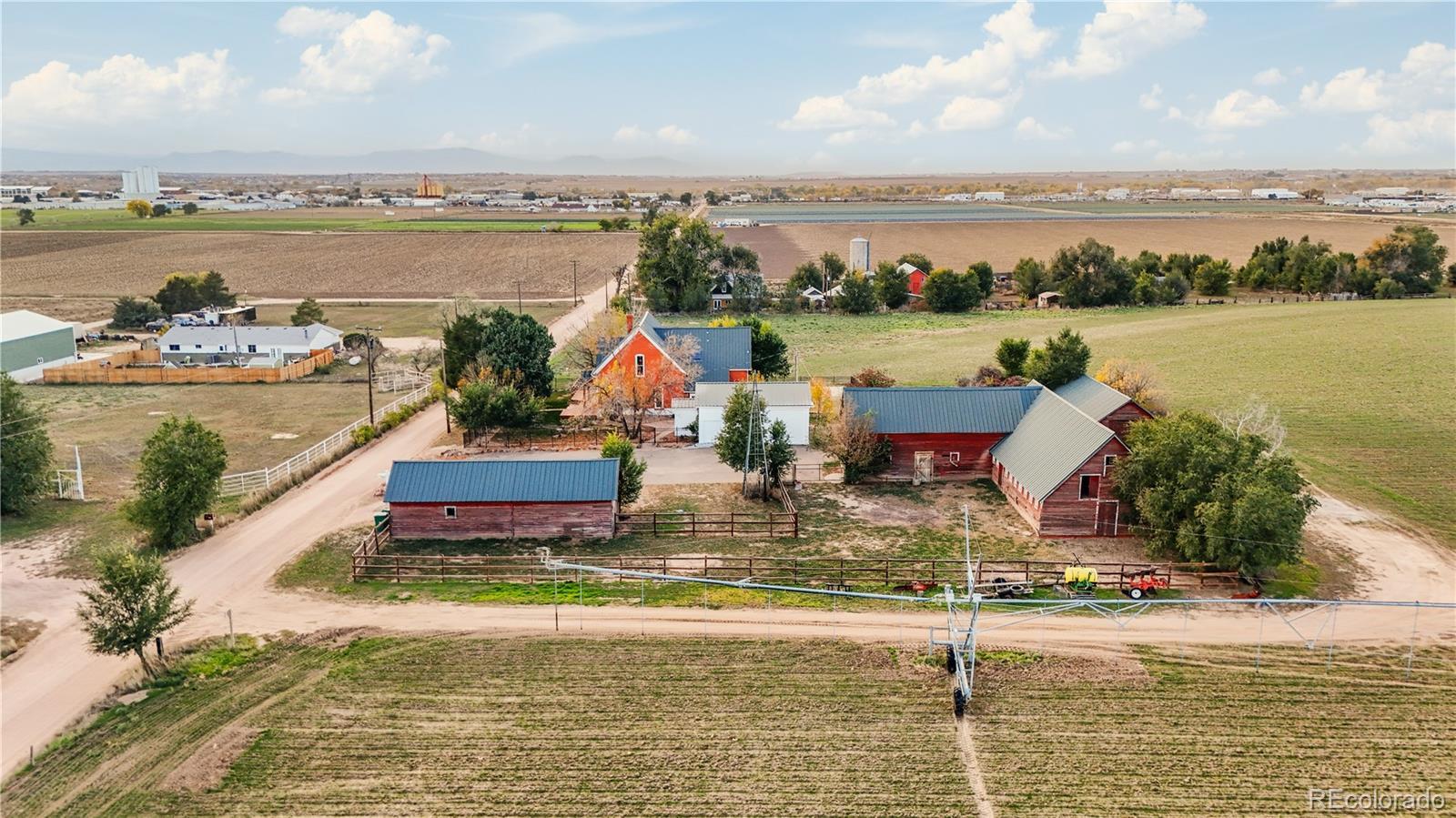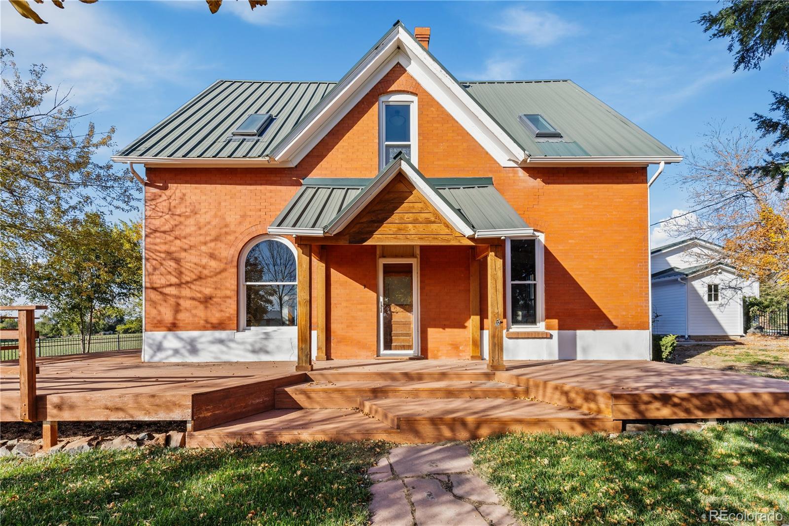 Welcome to farmhouse you've always dreamed off! Experience the perfect blend of country charm and modern comfort in this beautifully updated early-1900s farmhouse set on 2.5 acres right on the edge of Brighton. With the tax advantages of Weld County and the convenience of nearby shopping, dining, and recreation, this property offers the best of both worlds. Classic details like a tin roof, brick exterior, hardwood floors, and warm wood trim preserve the home’s timeless character, while thoughtful updates bring it into today’s lifestyle. The remodeled kitchen features stainless steel appliances, an open eating area at the countertop, and flows easily into the dining and living spaces. The expanded family room invites you to unwind by the wood-burning stove or enjoy the natural light from large windows. Upstairs, skylights brighten each bedroom. The primary suite includes a private bath with dual sinks and shower, while two additional bedrooms share another spacious bathroom with dual vanities. Each bedroom is oversized.. you'll LOVE The space! Step outside to a large wraparound deck and flagstone patio overlooking open skies and quiet acreage, perfect for entertaining or simply relaxing. 3 barns, raised garden beds, and a detached garage with space for RVs add function and flexibility to the property. Theres SOO MUCH to love about this property! Enjoy the space and serenity of country living without giving up quick access to city amenities. Your ideal farmhouse retreat awaits.