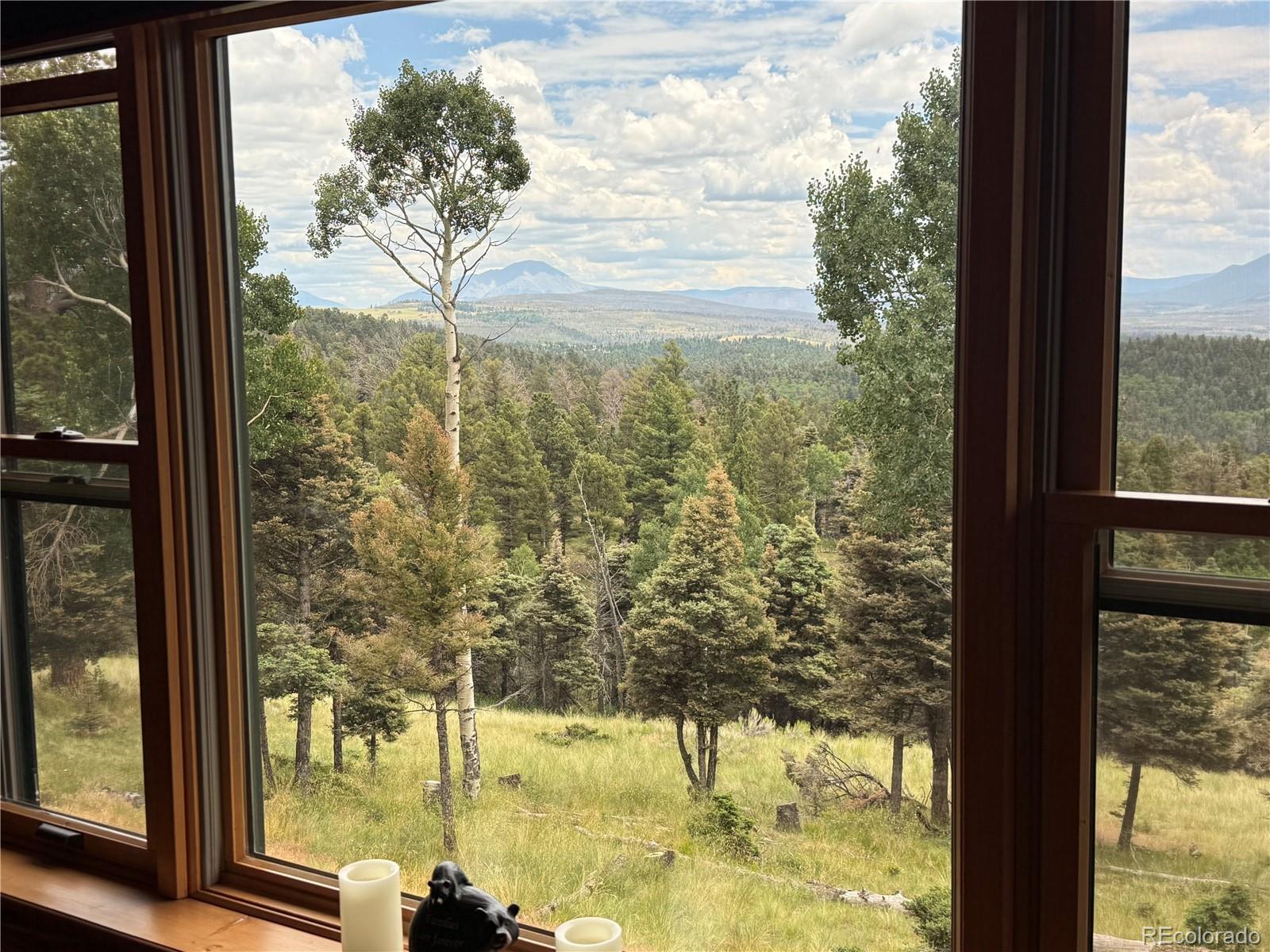 This beautiful log home is nestled on this 57 acre lot in sought after Wagon Creek Ranch. Awesome views of the 14,000 ft Mt Blanca range to the west and the Spanish Peaks to the southeast. This home was custom built to detail and master craftsmanship is evident. The great room towers up to the vaulted ceilings with huge windows to the view. The massive log stairway leads up to a spacious open loft area and the 2 bedrooms and a bathroom on the second floor. The 2 bedrooms have their own balcony with great views. The big kitchen with granite countertops and hickory cabinets is a chef's delight, complete with an eating bar and adjoins the huge dining room with 2 dining tables so the entire family can eat together. Master bedroom and bath are on the main floor along with the laundry room off of the entry room. There is a wrap around deck with custom made railings and Trex decking so you can pick the view that you enjoy the most. With 2 extra bedrooms and a 3rd bathroom in the lower level there is plenty of room for a big family or your guests to have their own private level of the house. The house comes furnished with high end furniture with the exception of a few sentimental items. The property is part of a 17,000 acre ranch that has great elk, mule deer and bear hunting. Currently you can hunt about 9000 acres of gated private land. This particular lot is in one of the best elk hunting areas on the entire ranch. There are 2 other lots that border this property that are available also for a total of 138 acres of prime hunting land. You must see this one to appreciate the quality of this home.