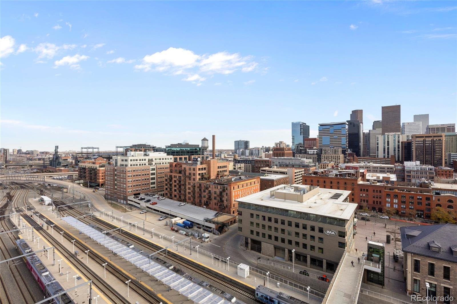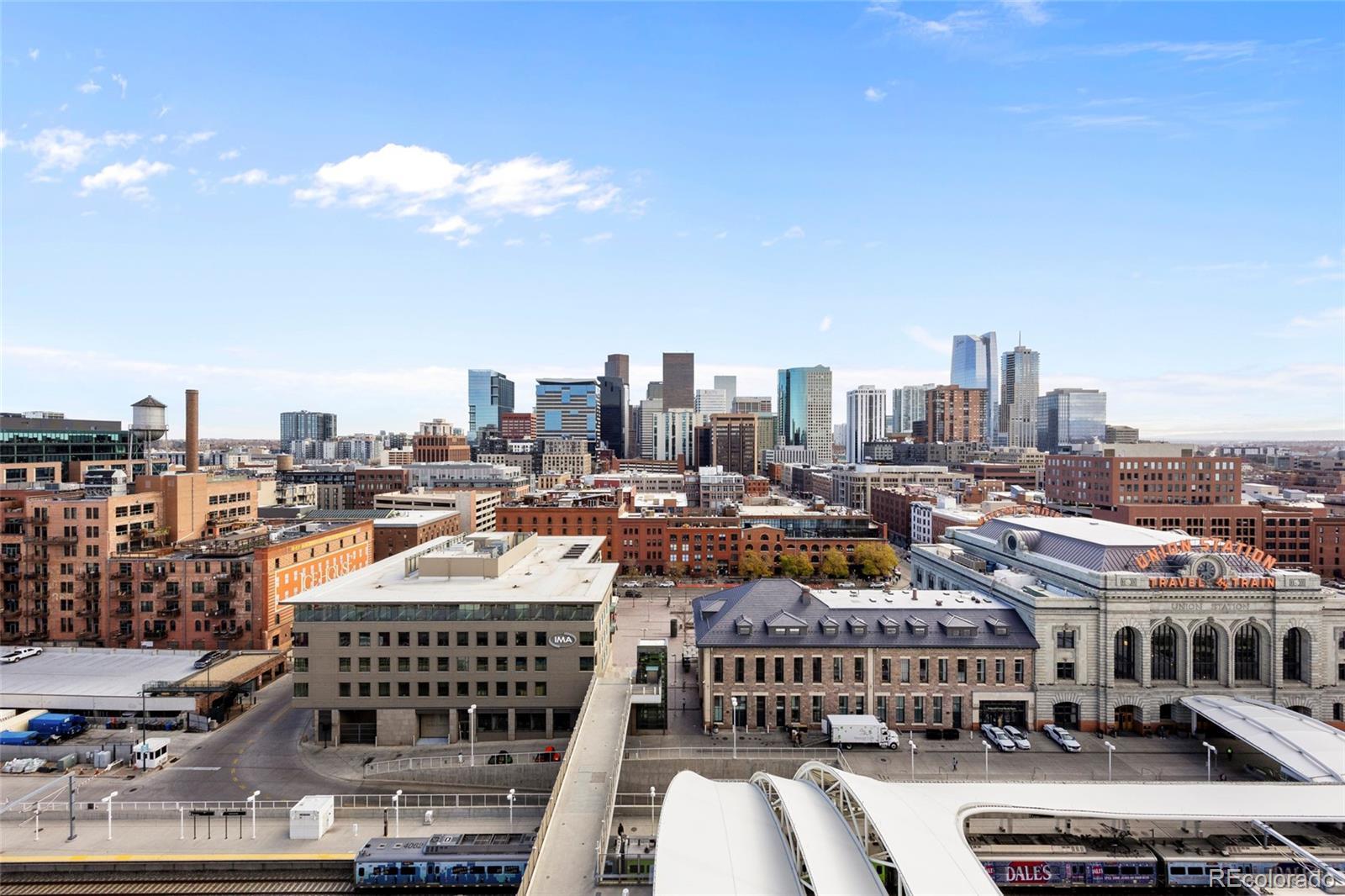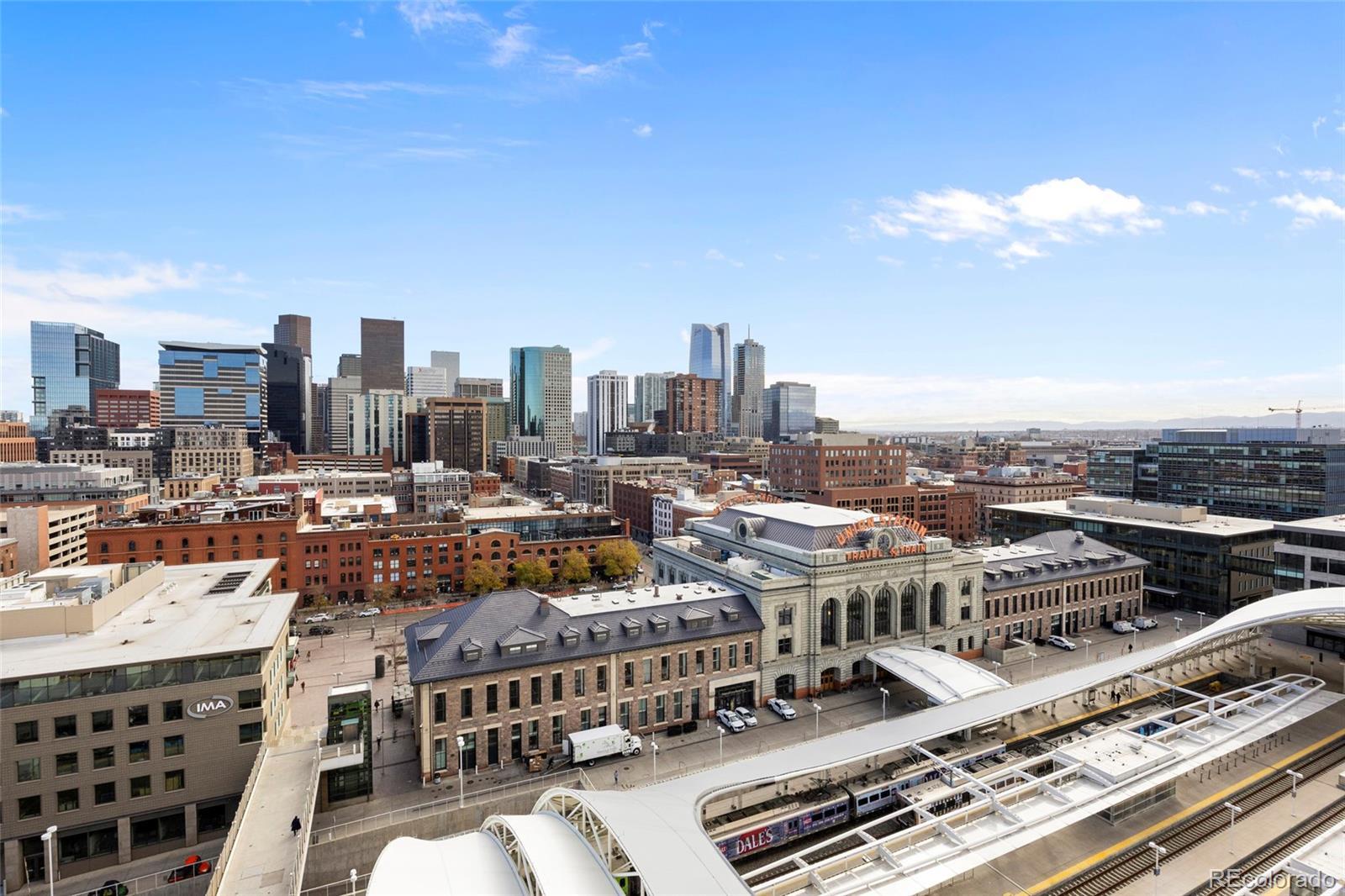 Experience the grandeur of this urban one-bedroom residence, nestled on one of the highest available floors for this floor plan and boasting Bosch stainless steel appliances, a gas stovetop, lavish quartz countertops, Calacatta marble tiling in the bathroom and backsplash in the kitchen. The living area is bathed in morning light, offering a mesmerizing portrait of Union Station and the city, with enchanting sunsets casting a magical glow throughout the space. The bedroom, tucked into an alcove, is ideal for restful slumber and includes an overhead ceiling fan with adjustable lighting, along with a custom closet system. This home is equipped with Lutron automated blinds and washer/dryer set, thoughtfully selected to elevate the luxurious living standard. The Coloradan provides an array of amenities to enrich your lifestyle: 24-hour staffed desk, cutting-edge fitness center, refined business hub, 18th-floor outdoor pool accompanied by a hot tub and fire pit, fully equipped catering kitchen, and an inviting club room with jaw dropping views for hosting guests. On the ground level, you'll discover a selection of upscale retail offerings, including Yoga Box, Kaffe Landskap for artisanal coffee and snacks and Sweet Green salads. Conveniently situated, you have next-door access to Denver International Airport’s A-Line (37 minutes door-to-door), Denver's largest Whole Foods, and an abundance of acclaimed dining establishments. Parking spaces in the attached garage are available for lease, completing the epitome of luxurious living.
