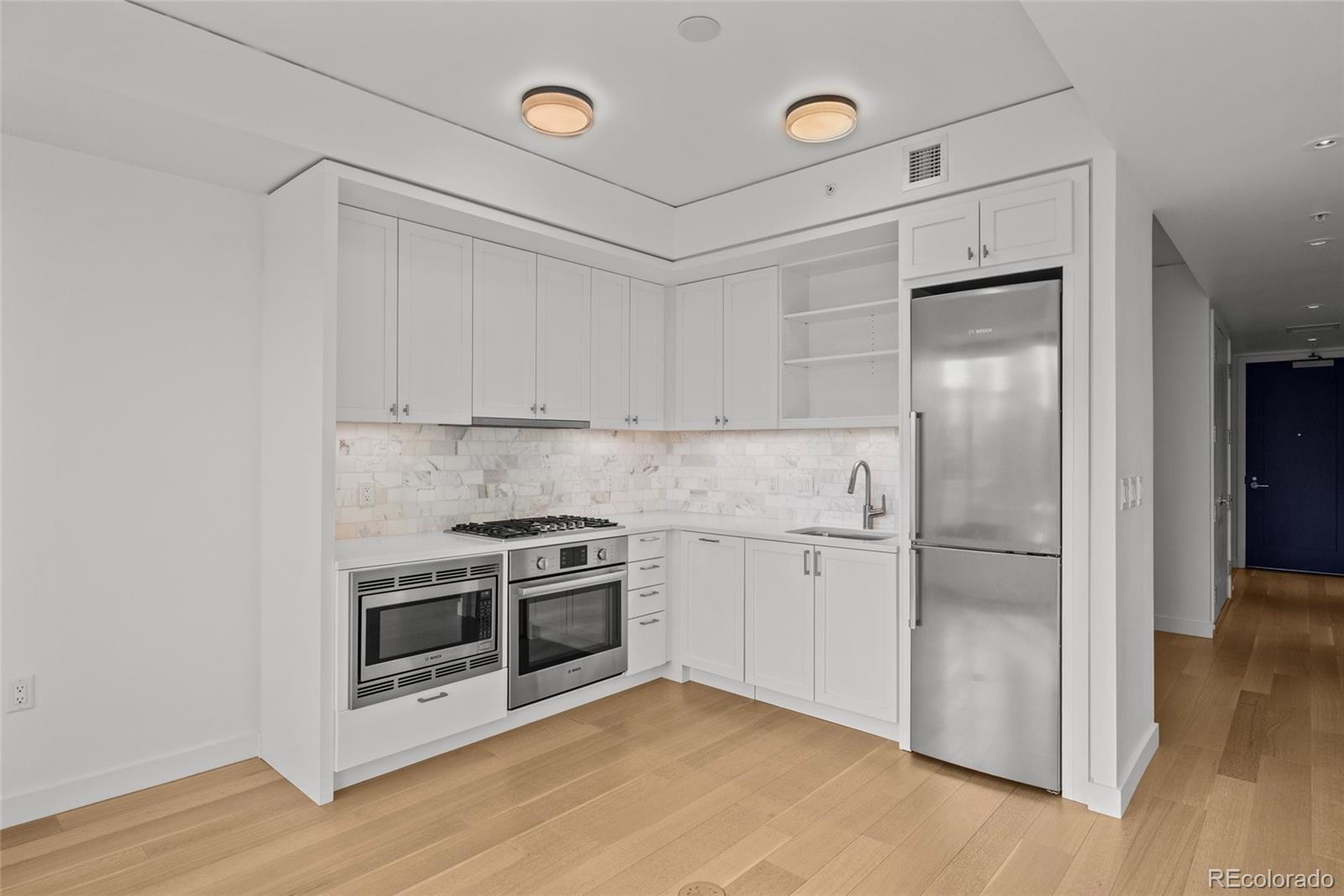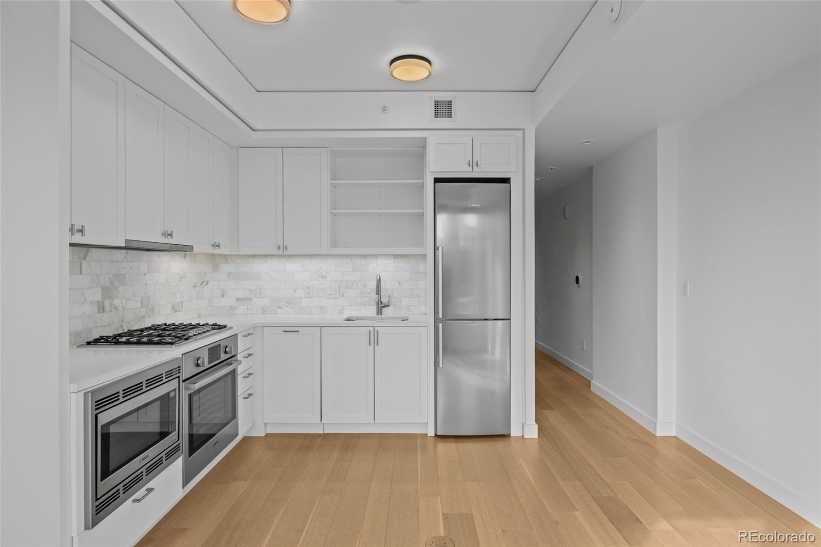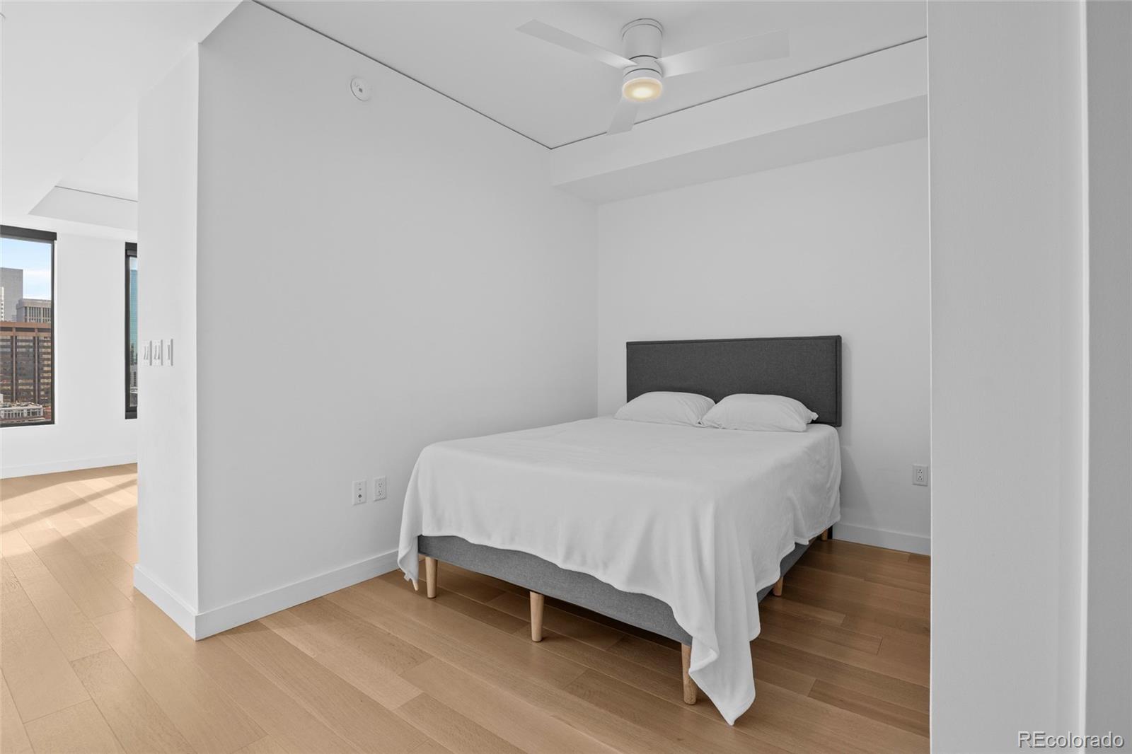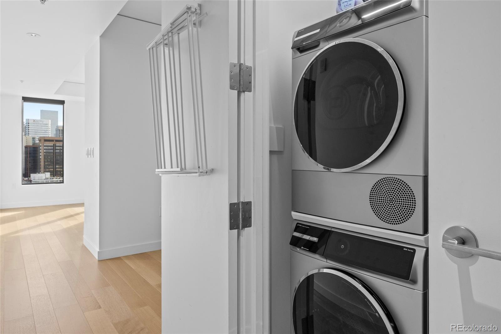 Experience the grandeur of this urban one-bedroom residence, nestled on one of the highest available floors for this floor plan and boasting Bosch stainless steel appliances, a gas stovetop, lavish quartz countertops, Calacatta marble tiling in the bathroom and backsplash in the kitchen. The living area is bathed in morning light, offering a mesmerizing portrait of Union Station and the city, with enchanting sunsets casting a magical glow throughout the space. The bedroom, tucked into an alcove, is ideal for restful slumber and includes an overhead ceiling fan with adjustable lighting, along with a custom closet system. This home is equipped with Lutron automated blinds and washer/dryer set, thoughtfully selected to elevate the luxurious living standard. The Coloradan provides an array of amenities to enrich your lifestyle: 24-hour staffed desk, cutting-edge fitness center, refined business hub, 18th-floor outdoor pool accompanied by a hot tub and fire pit, fully equipped catering kitchen, and an inviting club room with jaw dropping views for hosting guests. On the ground level, you'll discover a selection of upscale retail offerings, including Yoga Box, Kaffe Landskap for artisanal coffee and snacks and Sweet Green salads. Conveniently situated, you have next-door access to Denver International Airport’s A-Line (37 minutes door-to-door), Denver's largest Whole Foods, and an abundance of acclaimed dining establishments. Parking spaces in the attached garage are available for lease, completing the epitome of luxurious living.