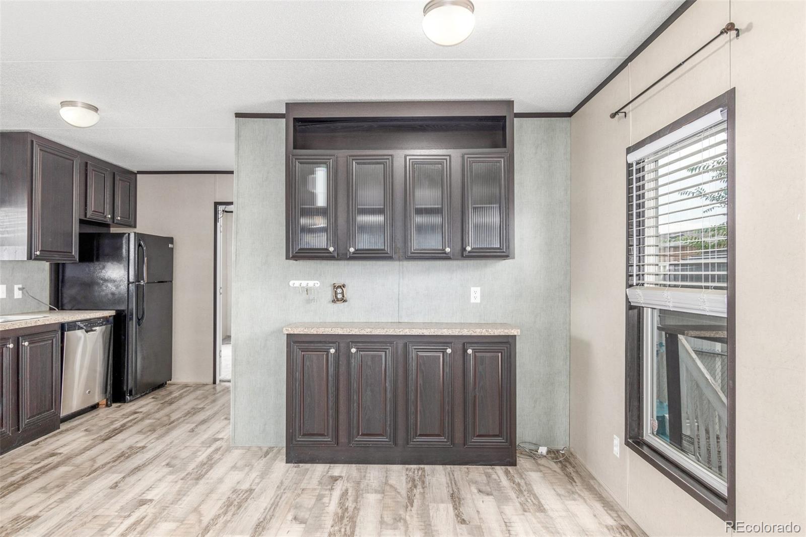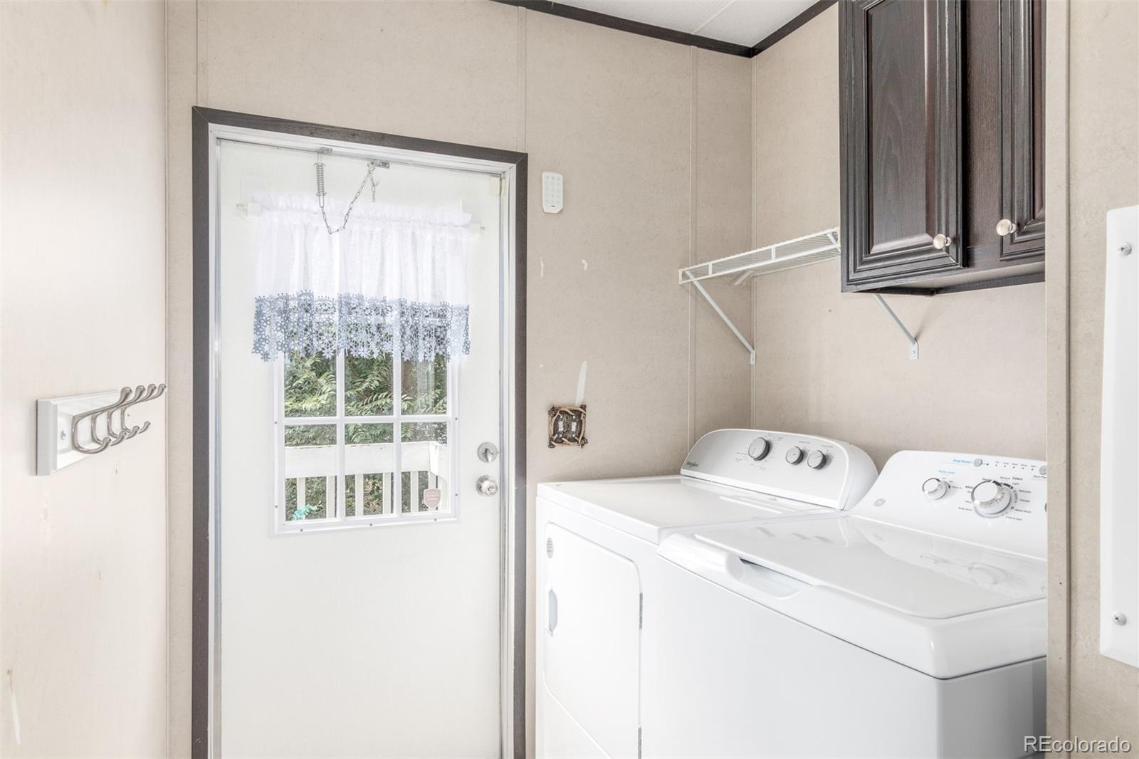 Welcome to this charming and updated 3-bedroom, 2-bath home in the highly desirable Golden Terrace community! This move-in ready home features fresh modern finishes, a bright and open layout, and a great location in the heart of Golden. Step inside to a spacious living area with abundant natural light, neutral tones, and updated flooring that flows throughout. The kitchen is well-appointed with dark cabinetry, newer appliances including a gas range and dishwasher, and plenty of counter space—perfect for everyday living and entertaining. The dining area connects seamlessly, offering room for gatherings and meals. The primary suite provides a comfortable retreat with a large closet and private en suite bath. The second bedroom is on the opposite side of the home making this an ideal layout. A dedicated laundry area with included washer and dryer adds extra convenience. Get ready to fall in love with the foot hill view! Outside, enjoy a yard with mature trees, garden beds, and a storage shed. Additional highlights include a covered carport for parking, central A/C, and low-maintenance landscaping. Divinely located in the Golden foothills, you’ll love being close to trails, parks, dining, shopping, and easy highway access for both mountain adventures and quick commutes into Denver. Enjoy your community amenities including 2 swimming pools, 2 clubhouses, billiards room, game room and picnic area. Bonus, RV Storage! Divinely located in the foothills with quick access to the front range for hiking or visiting the nearby Colorado Mills Mall area, dining and enjoying mountain views, this home blends comfort, charm, and convenience! Approximately 2 miles to Golden Light Rail station.
