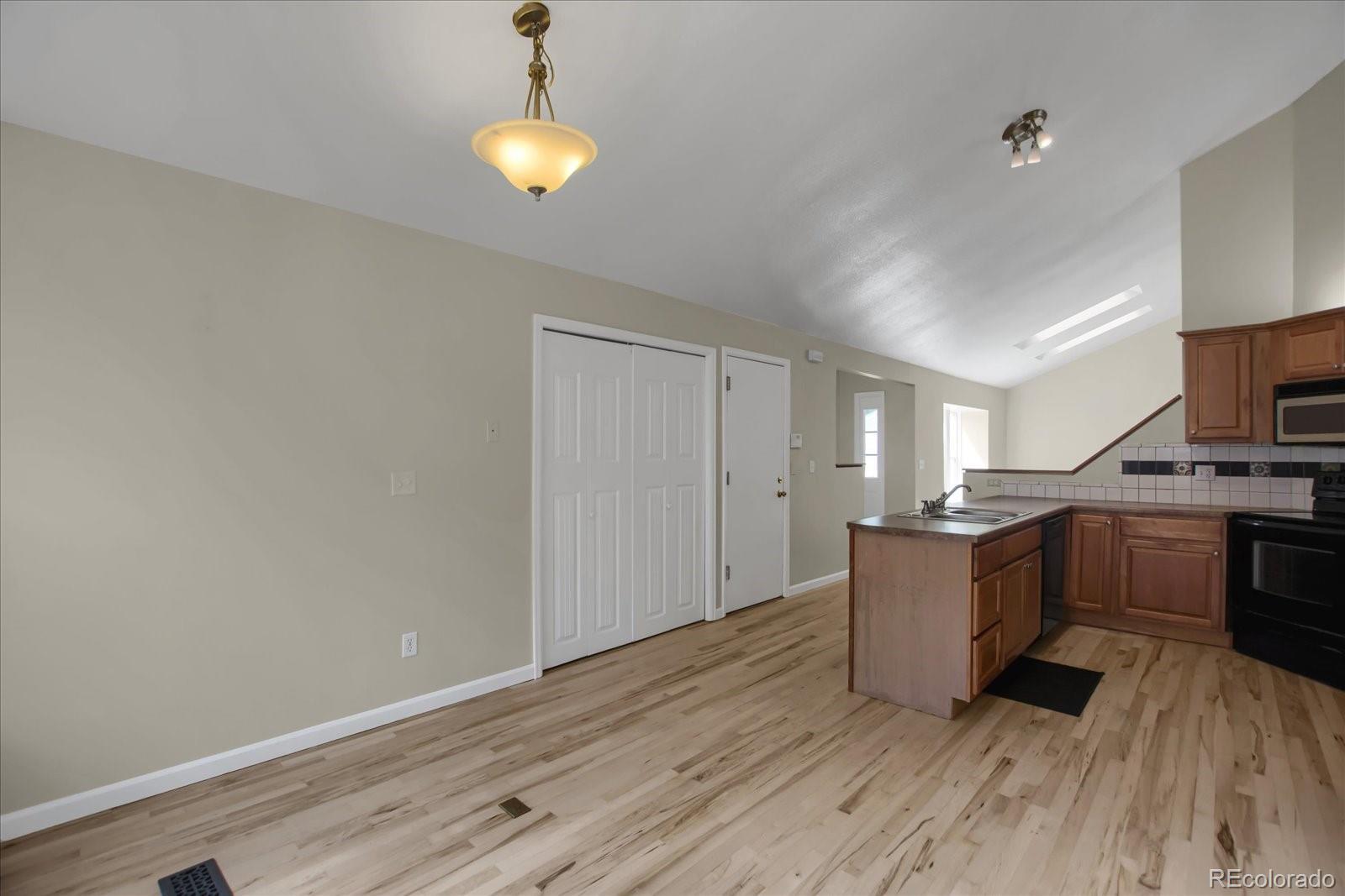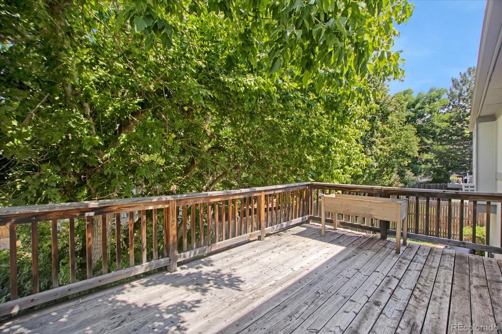What a nice area of Arvada! What a great price!! This quiet residential neighborhood is the perfect spot to call home. Priced to sell, this home will get your attention! The exterior Tudor Style with a full brick front is both attractive and low maintenance! The entry foyer has tile flooring and is a space to put on and take off the outdoor coats and shoes. Newer hardwood maple floors fill the kitchen and dining room with a clean updated look. The ceilings are high and vaulted making the space feel large and open. Long countertops surround the kitchen making cooking and food prep an easy task! Storage in this kitchen is a snap, many maple cabinets up and down plus a large double door pantry! The Living room is comfy and bright with natural light from the 2 skylights and bay of windows. The floorplan is open between the 3 levels with open railing and short flights of stairs. Much of the carpet has recently been replaced and paint has been refreshed where needed. The lower level has a large open family room or could function as a home work space, a playroom, an exercise area...you decide. There is also a 3rd bedroom on the lower level that could be the perfect storage room too. There is a handy 1/2 bath and laundry area on the lower level. Upstairs is the primary bedroom that has door access to a large private deck, a long wall of closets and a nicely vaulted ceiling! A hallway full bathroom is located between the two upper level bedrooms. The fully fenced backyard has large mature trees that offer shade and privacy. There is a paver patio outside the back door that is perfect for outdoor dining or relaxing. On the east side of the neighborhood is the famous Das Meyers German Pastry shop, on the north side is Ralston Creek Trail that runs east and west and is used by elementary school kids/parents to walk to the local Stott Elementary School and also used by runners, walkers, bikers, hikers!Walk to the Local YMCA. New Hot water Heater, New Radon Mitigation.