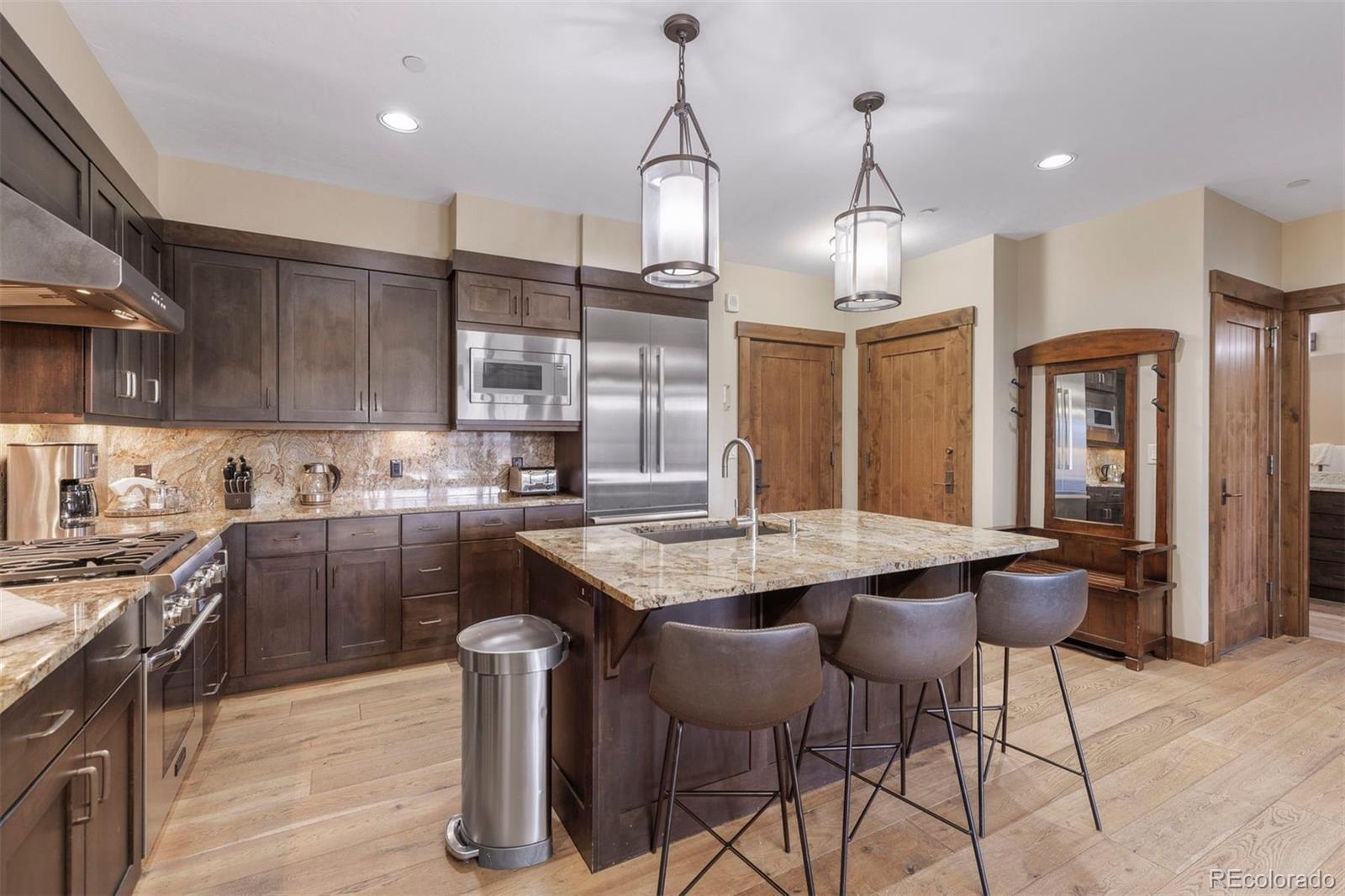 Set at the base of Peak 9 of the Breckenridge Ski Resort, in the heart of Main Street Station, this 2-bedroom, 2-bath Water House residence features an open-concept layout, warm wood floors, a cozy gas fireplace, and a chef’s kitchen with premium Thermador appliances. The primary suite includes a spa-inspired bathroom, perfect for unwinding after a day on the slopes. Additional highlights include a private ski locker, underground parking, and a secure owner’s closet. Blending luxury with year-round adventure, this condo is fully short-term rental ready. Enjoy ski valet service and a short stroll to the Quicksilver lift, or explore the vibrant dining, shopping, and après-ski scene along Main Street, all just steps away. After a day in the mountains, relax in the hot tubs or take a dip in the outdoor pool while soaking in sunsets over Breckenridge Ski Resort and beyond.