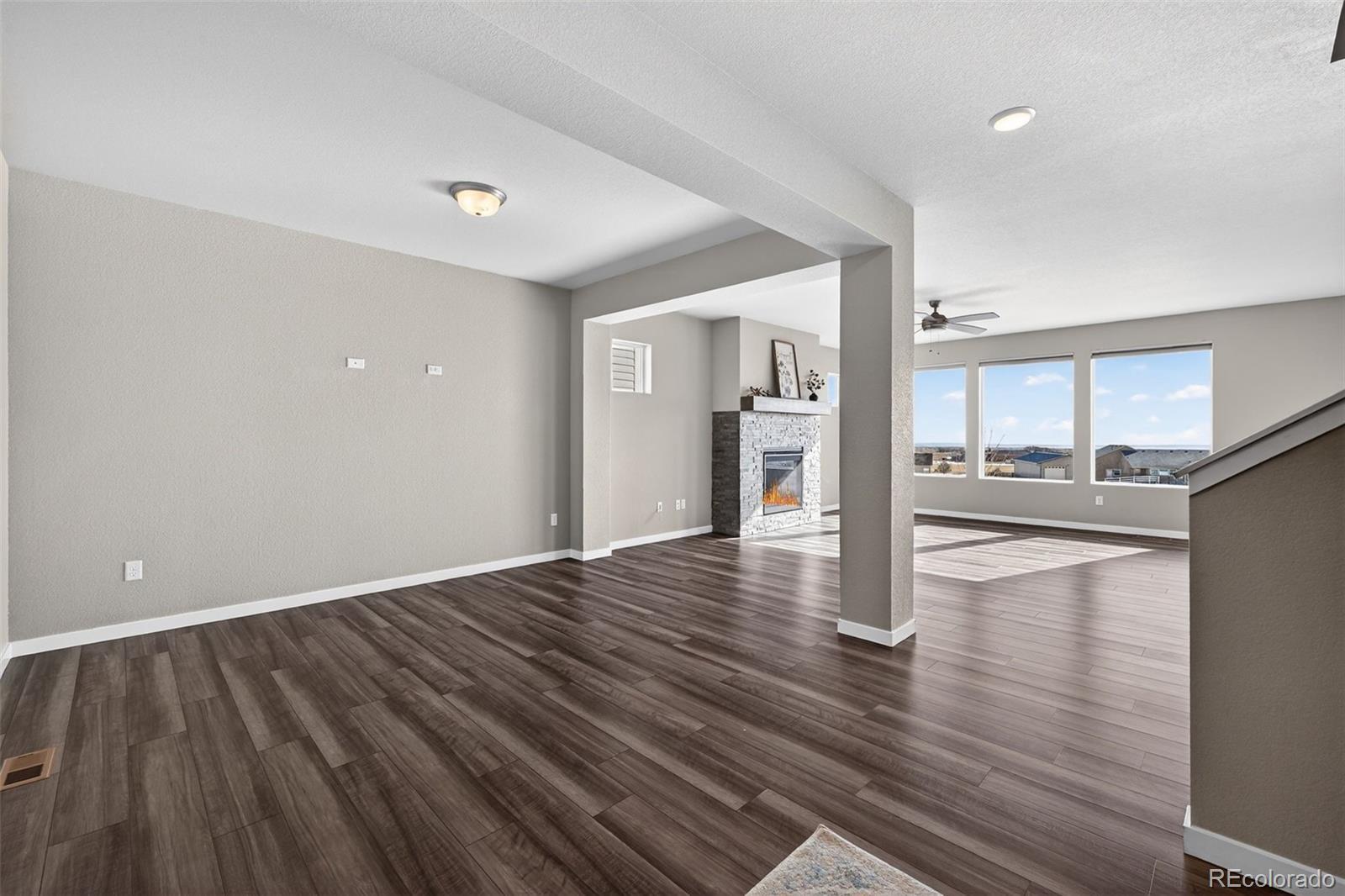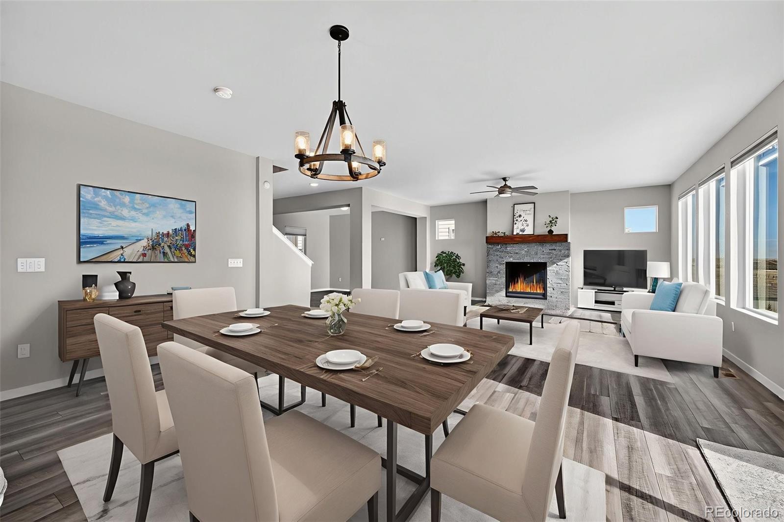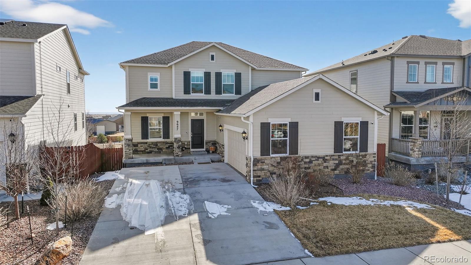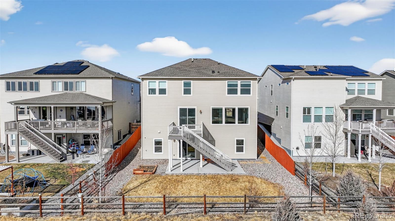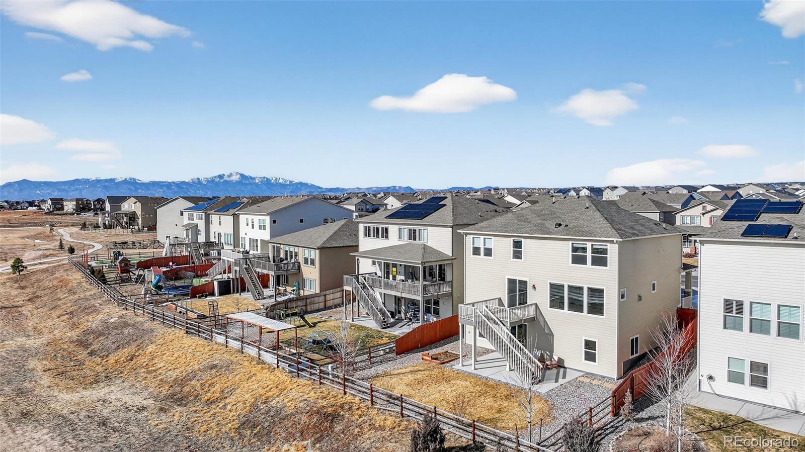 Welcome home to this beautifully appointed 4-bedroom, 4-bath residence in the heart of Meridian Ranch, one of the most desirable communities. Thoughtfully designed for both everyday living and entertaining, this home offers space, style, and views that truly set it apart. Step inside to an inviting open floorplan filled with natural light and seamless flow between the living, dining, and kitchen areas. The living room is anchored by a beautiful fireplace, creating the perfect cozy gathering spot on Colorado evenings. Just beyond, a Trex deck extends your living space outdoors — ideal for morning coffee or sunset relaxation. The gourmet kitchen is a showstopper, featuring generous counter space, quality finishes, and room for everyone to gather around the heart of the home. Whether hosting holidays or casual dinners, this space delivers both function and flair. Upstairs, you’ll find a versatile loft area — perfect as a home office, study space, or additional lounge — along with spacious bedrooms designed for comfort and privacy. The fully finished walkout basement adds incredible flexibility, offering additional living or entertainment space and direct access to a concrete patio making indoor-outdoor living effortless. And then there are the views — sweeping south-facing vistas and breathtaking east-west sightlines that showcase the majestic Front Range. Colorado living doesn’t get better than this. Residents enjoy the exceptional amenities provided by the Meridian Ranch Metro District, including water, sewer, snow removal, an indoor/outdoor pool, and a full workout facility — all designed to support an active, connected lifestyle. This home blends comfort, elegance, and community — a place where memories are waiting to be made.