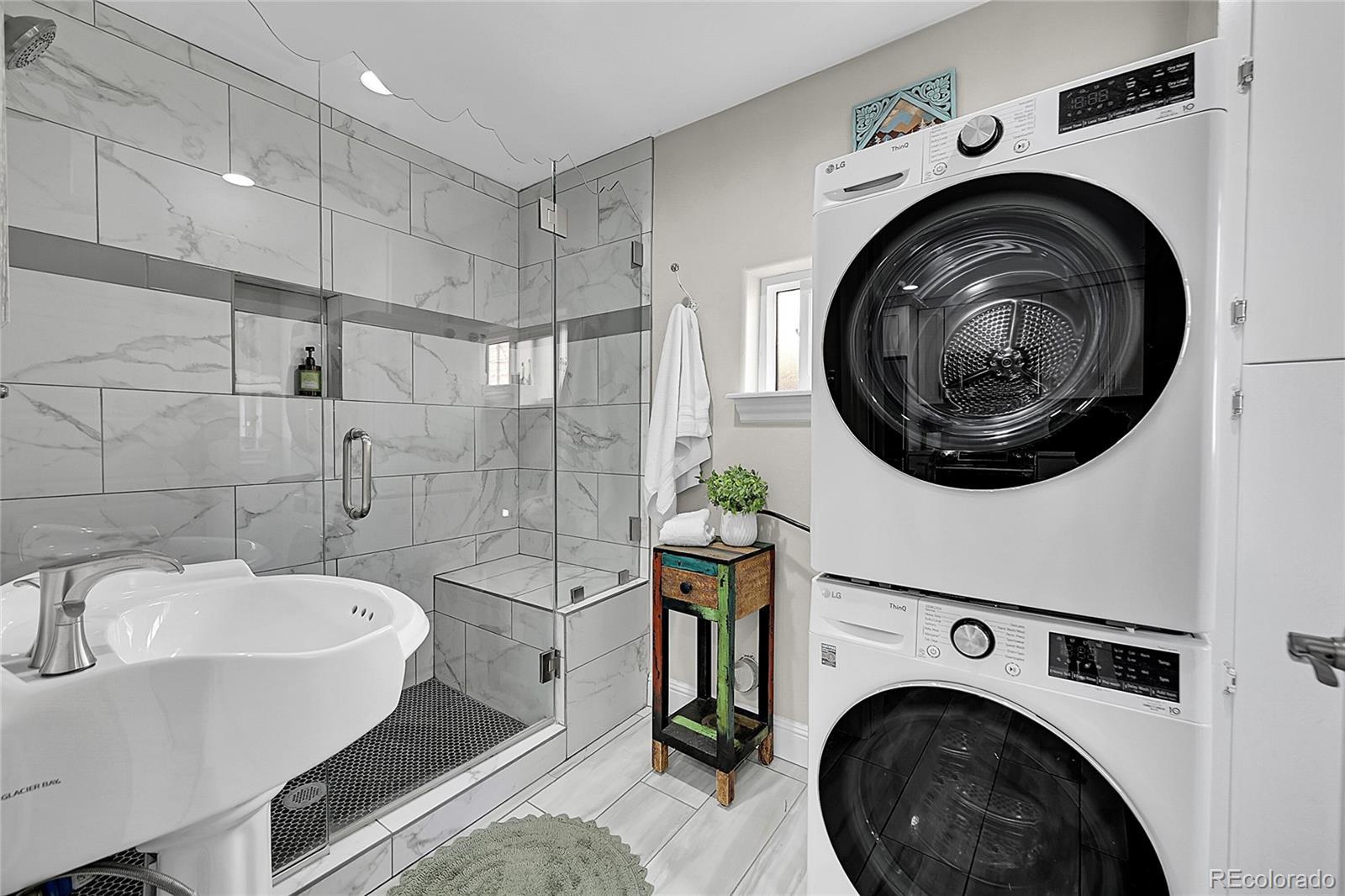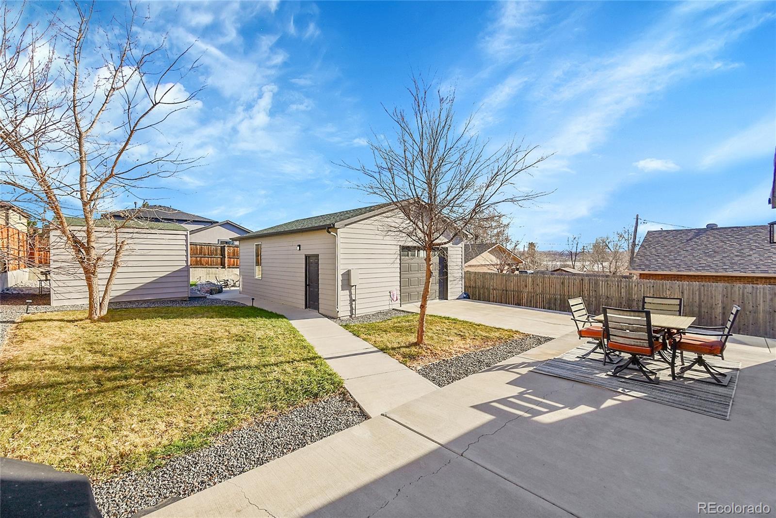 Buyers, there is a 3% Assumable FHA Loan. Call agent for details! Car enthusiasts, hobbyists, or entertainers will love the expansive 31' x 23' detached 3+ garage offering endless possibilities! This is a true highlight of this home plus an impressive outdoor living space, featuring two patios (one patio has a gas line for a BBQ grill or firepit) an easy-to-maintain artificial grass area, a storage shed and 2 additional car spaces behind the front gate! Inside, this cozy and well-maintained home features hardwood floors throughout, neutral colors, plantation shutters, a primary bedroom with walk-in closet and an additional secondary closet, bedroom #2, a ¾ bathroom with a custom walk-in shower, built in storage cabinets, and an in-unit washer and dryer, plus an updated kitchen with Shaker style cabinets, Quartz countertops, newer stainless steel appliances, a pantry, and eating area—perfect for everyday living. Additional upgrades include newer HVAC and central air conditioning, a newer roof, energy-efficient double-pane windows, newer interior paint, new fence and gate. Centrally located with easy access to major highways and convenient access to River Point shopping and cuisine, and just a 10-minute drive to Wash Park/DU area and numerous nearby trails and parks. A rare opportunity combining comfort, convenience, and versatility. Schedule your showing today and start a new year with a new home.