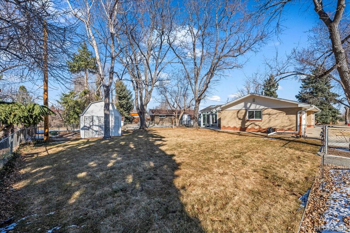 This charming all brick, ranch home sits on a large corner lot in Old Town Louisville. Inside, you will find an updated, open-concept home with beautiful hardwood floors throughout, newer interior paint, a whole house humidifier and an on-demand tankless water heater. The cozy living room is complete with a remote-controlled shade, a gas fireplace and dual access to the kitchen and dining areas. The eat-in kitchen features all stainless-steel appliances, counter space, as well as pull out shelving in the cabinets. Just off the kitchen, a slider leads to a fully enclosed patio with a wall full of windows and a skylight to let all the sunshine in. This sunroom is not included in the square footage and is approximately 200 square feet. Outside is a shed for all your outdoor needs and a concrete patio, where your patio furniture can reside, while you watch the sprinkler system water the grass for you. You can get to the oversized 1 car garage from the house and the backyard, and there is extra space in the front of the house for additional parking. Head downstairs and you’ll find an additional bed and 3/4 bath, plus a good-sized family room/recreational room and a utility/laundry area with built in shelving. One block to Community Park, trails and all that Old Town Louisville have to offer. This gem will not last long!