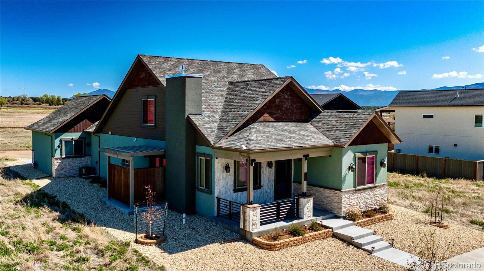 Experience luxury living in this custom-built 5-bedroom, 3-bathroom home located in the heart of Poncha Springs, Colorado. Thoughtfully designed with high-end finishes, the open-concept residence features hardwood and tile flooring throughout, a spacious living room with a cozy gas fireplace, and a beautifully appointed kitchen and dining area. The expansive primary suite offers a tranquil retreat with a generous in-suite bathroom and a private seating area. The main floor includes two additional bedrooms and a full bath, while the upstairs provides two more bedrooms and another bathroom—ideal for family or guests. A large laundry room adds convenience with ample space for storage and organization. Step outside to enjoy the fully fenced backyard with a private patio, perfect for outdoor gatherings, plus an additional patio off the dining room for quiet mornings or evening relaxation, with an amazing view of the mountains. A two-car garage adds practicality to this one-of-a-kind home. Just minutes from the charming town of Salida and its vibrant historic downtown, and a short drive to Monarch Ski Area, this property is a dream with the Arkansas River and countless recreational opportunities nearby. Welcome home!