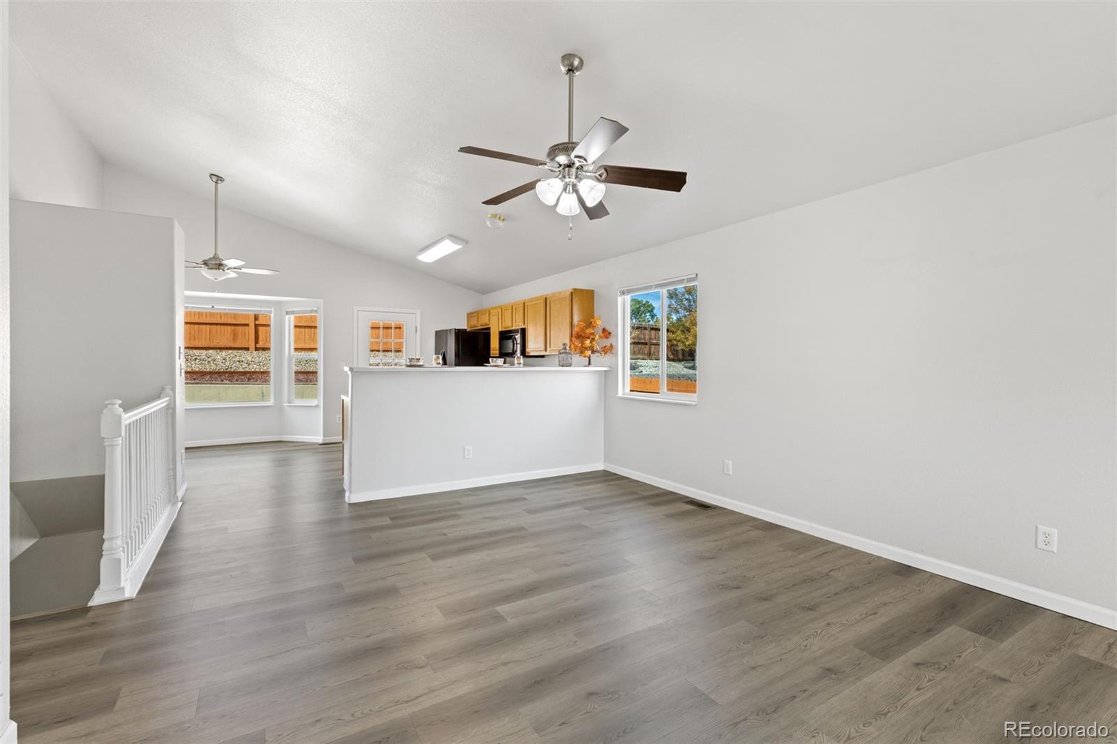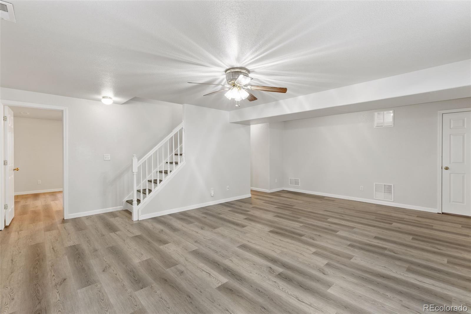Ranch home with 4 bedrooms, 2 full bathrooms and 2 car garage. 2 bedrooms and one bath on the main floor. Family room is open to the kitchen and dining area. Walk out from the kitchen to the back yard. Basement provides a large rec room, 2 bedrooms, a full bath and storage area. Newer interior paint and newer luxury flooring! New Exterior paint in 2024! Back patio & fenced in back yard with new landscaping. 2024-Hot water heater. 2023-roof. Great location with easy access to Powers, Fort Carson, Peterson, The Airport, Amazon Center, and downtown.