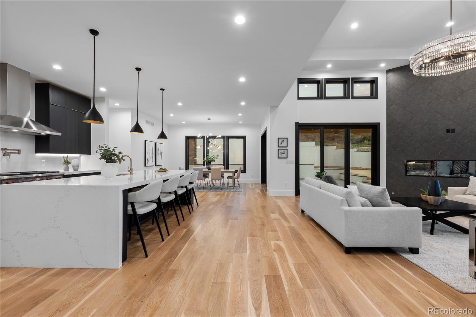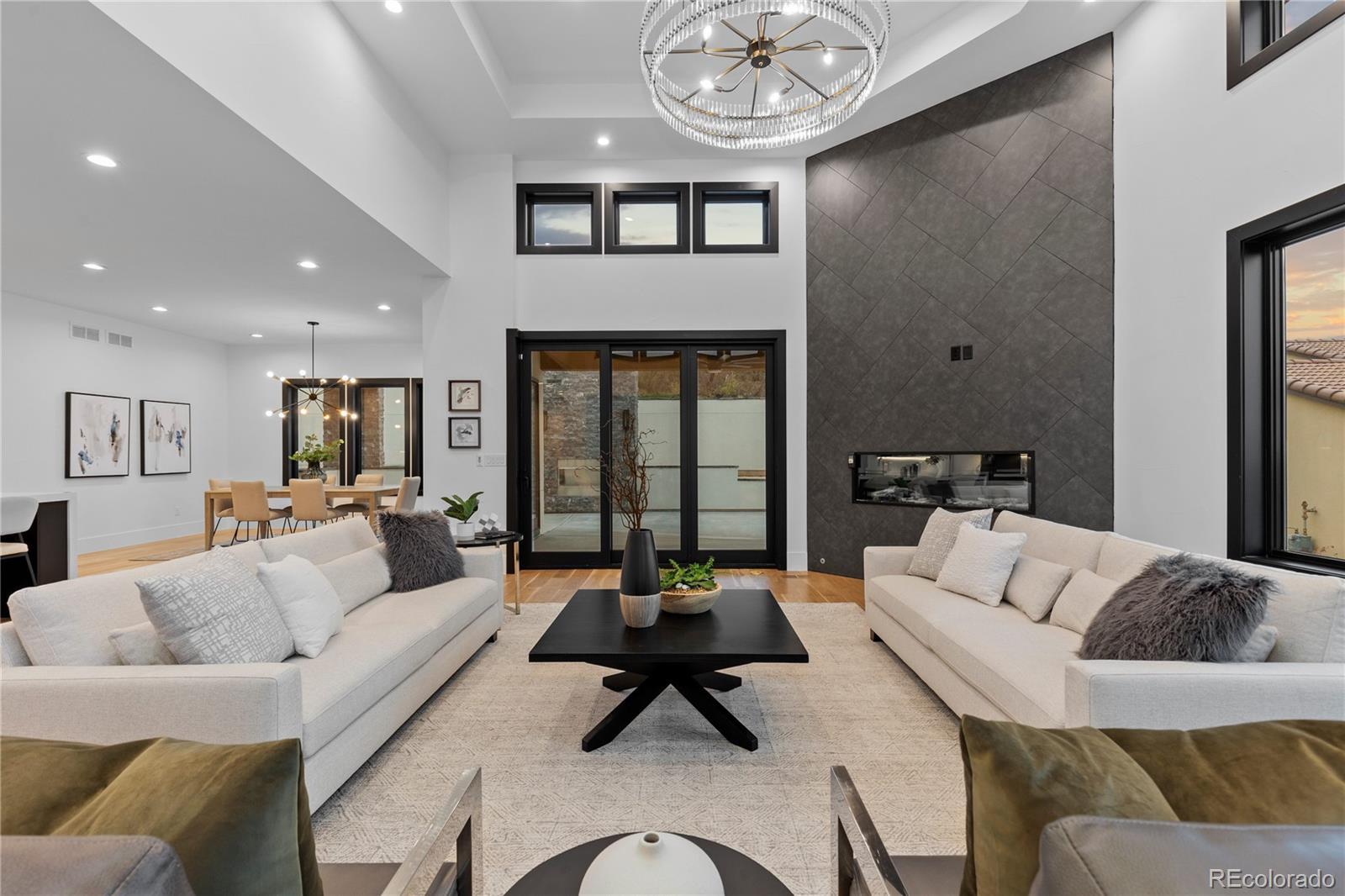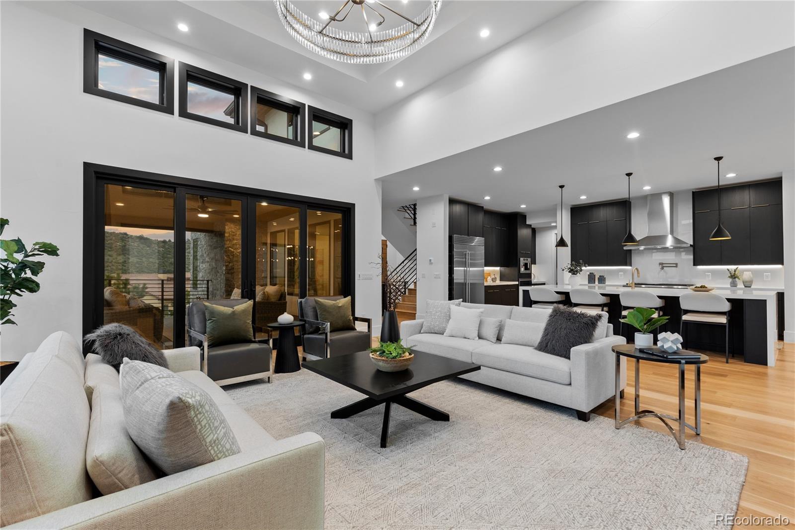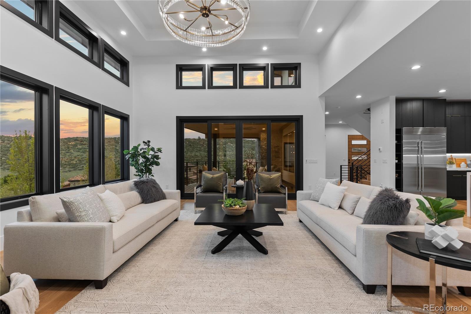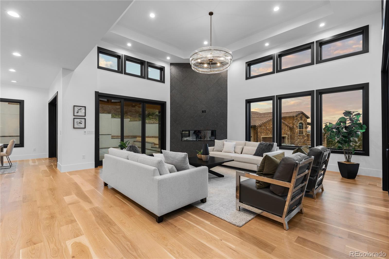 Introducing the latest custom home by Dublin Development, nestled within the gates of the prestigious Ravenna Country Club. 8103 Raphael Lane showcases modern luxury and refined design across 6,048 square feet of thoughtfully crafted living space. Step inside to a stunning main level where natural light pours through large windows in the private office, offering inspiring views of Colorado’s striking landscape. The heart of the home is a gourmet kitchen, complete with a separate caterer’s kitchen—perfect for hosting. The soaring two-story great room is anchored by a beautiful fireplace and opens to two separate outdoor living areas, seamlessly blending indoor and outdoor living. The main level primary suite is a true retreat, with its own fireplace and spa-inspired bath designed for ultimate relaxation. Upstairs, an expansive living space lives like a private apartment—ideal for guests or multi-generational living. Complete with a wet bar, beverage fridge, and a luxurious ensuite bath, this level is framed by panoramic views that capture the beauty of Colorado. The lower walkout level is built for entertaining with a full pub-style bar, tall ceilings, a spacious family room, and two ensuite bedrooms, all designed with comfort and style in mind. An oversized 3-car garage provides ample room for vehicles, storage, and your golf cart—ready for a quick ride to the course or club amenities. This one-of-a-kind modern home offers the latest in design, finishes, and functionality in one of Colorado’s most exclusive communities.