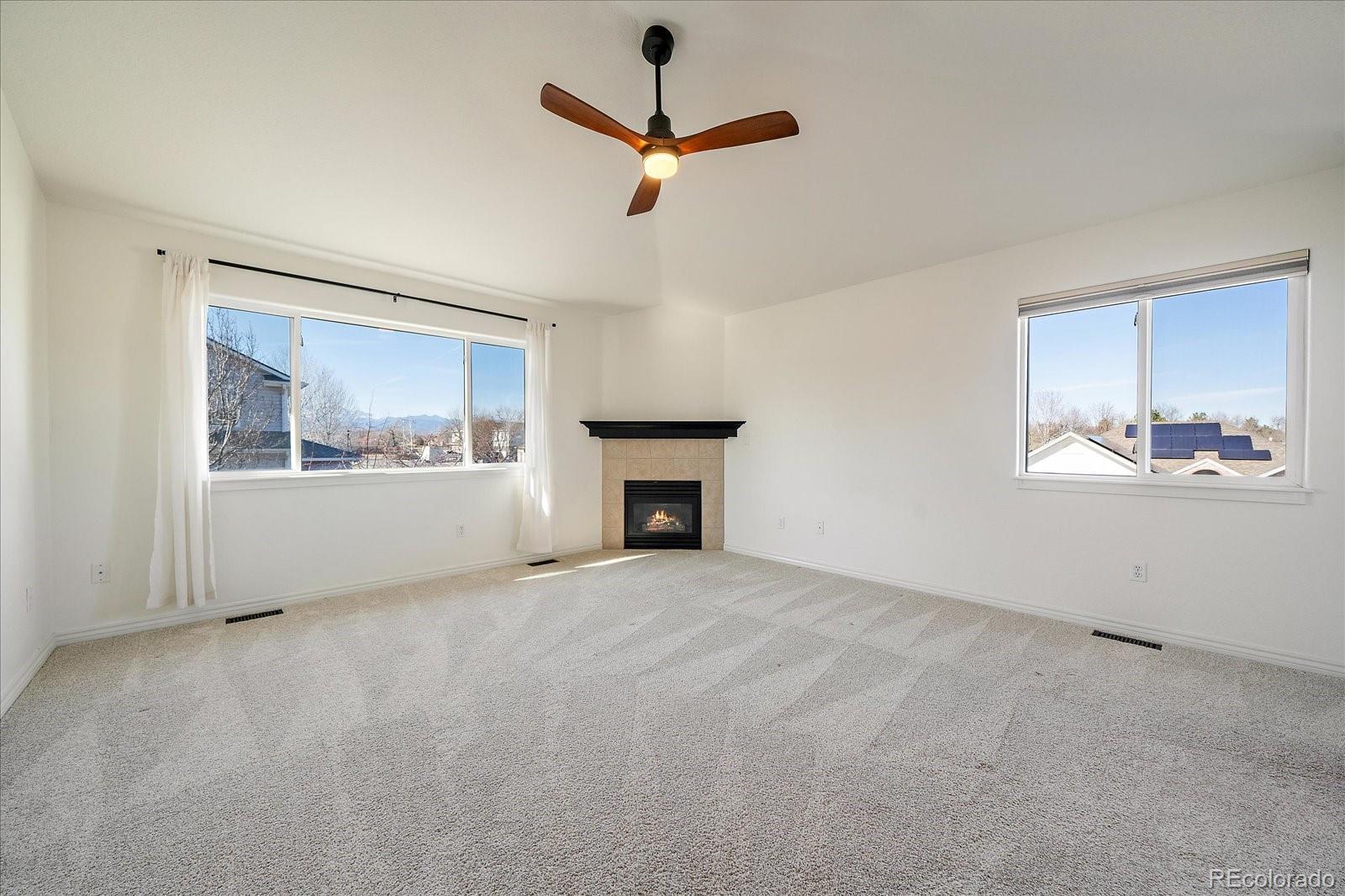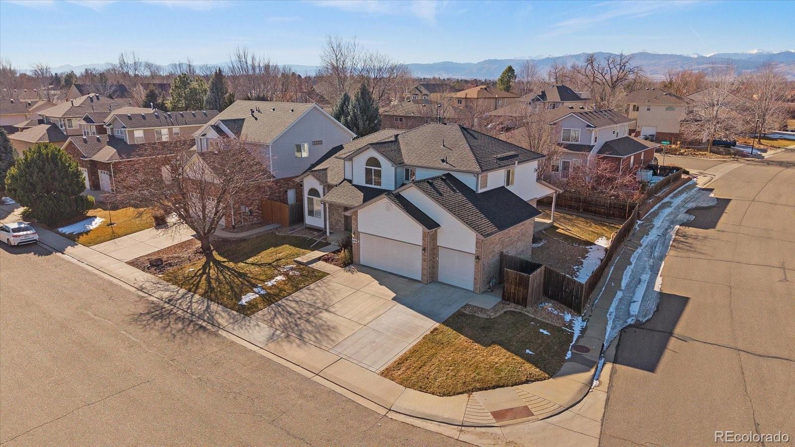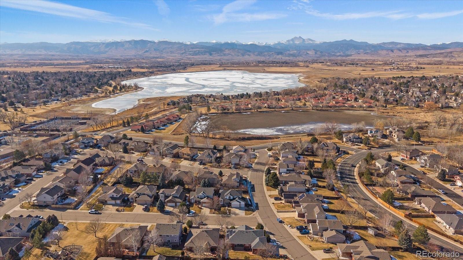 This beautiful corner lot offers stunning views of Long's Peak, especially from the oversized primary bedroom, complete with a cozy gas fireplace. The modern eat-in kitchen features quartz countertops and a stylish subway tile backsplash, providing excellent western and backyard views along with ample natural light. Beautiful hardwood floors cover much of the 1st floor. Enjoy relaxing in the living room with its gas fireplace and sliding doors that open to a covered patio and a private, flat backyard, perfect for entertaining. The yard also includes a large storage shed with electricity and cabinetry. Just a few houses south is a neighborhood park and a path leading to Dawson park and McIntosh Lake, where you can fish, paddle board, or enjoy the scenic trail that goes around the full circumference of the lake. The 3-car garage comes equipped with industrial overhead heating, extra outlets, a 220V outlet, and offers plenty of storage and work space. The laundry room is conveniently located upstairs near the four spacious bedrooms, three of which face west. Both upstairs baths have great fixture upgrades. The unfinished basement is ready for expansion with egress windows and roughed-in plumbing. Roof, fascia and gutters new in 2024! CHECK OUT the attached drone video for a better sense of location or copy and paste and go here.... https://iframe.videodelivery.net/0a253e8dc7eb4a0345ebca1f368c1579