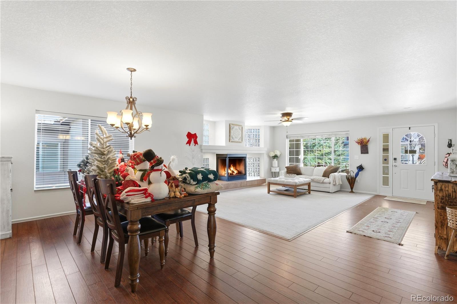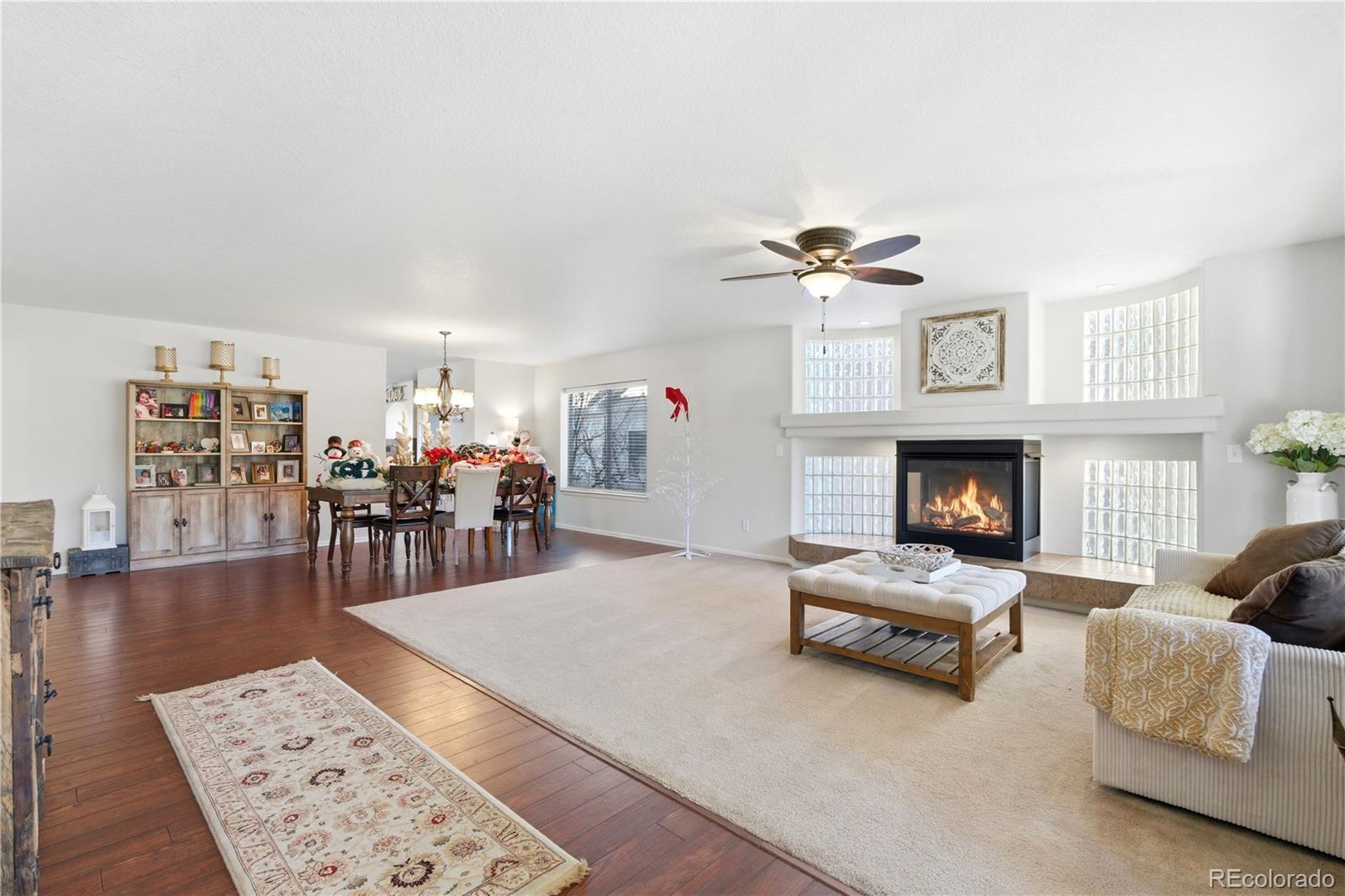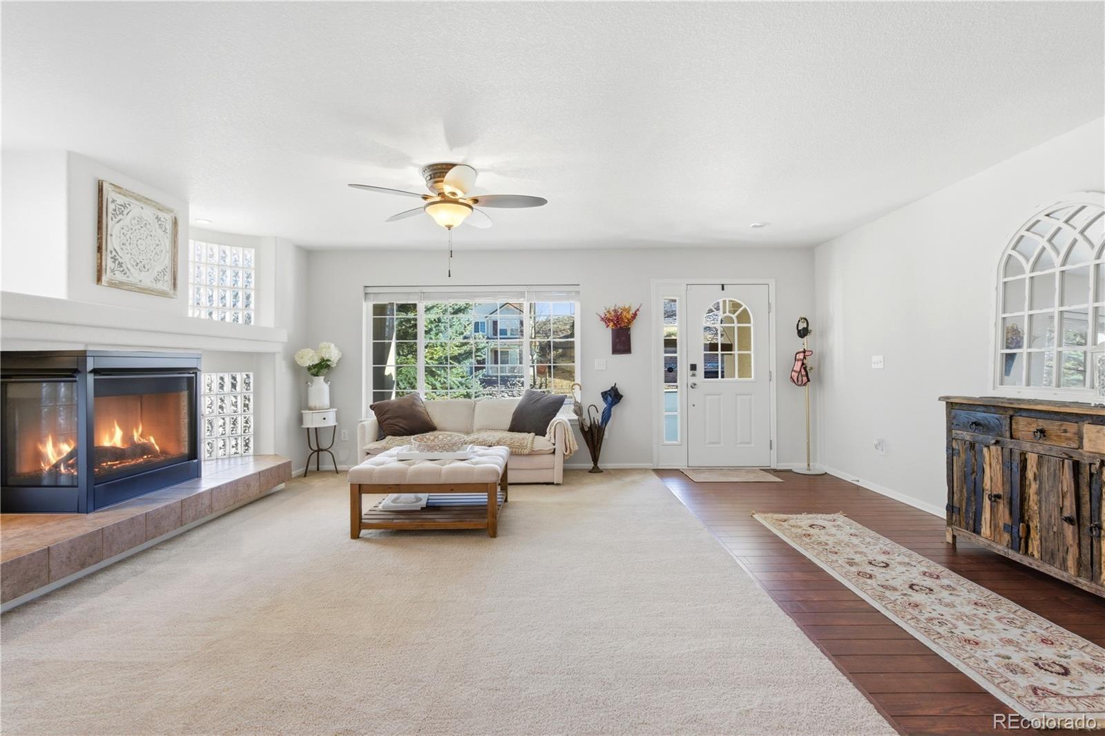 Set at the end of a quiet cul-de-sac, this stunning two-story home offers sweeping, unobstructed Front Range views that truly steal the show. From sunrise to sunset, the west-facing outlook delivers breathtaking Colorado scenery that will never be blocked; a rare and priceless feature. Adding to the appeal is an assumable VA loan at 5.5%. Inside, the home welcomes you with abundant natural light, rich hardwood floors, and a thoughtful layout designed for both everyday living and entertaining. The main living room is anchored by a dramatic three-sided glass fireplace and framed by floor-to-ceiling windows. A formal dining area sits just off the living space, ideal for cozy dinners by the fire. The chef’s kitchen features a large center island with seating, granite countertops, stainless steel appliances, ample cabinetry, and an oversized walk-in pantry. The kitchen flows seamlessly into the family room, where a second gas fireplace, custom built-ins, and expansive windows create a warm and inviting space. From here, step outside to the expansive west-facing deck, an entertainer’s dream and the perfect place to soak in Colorado sunsets and mountain vistas. Upstairs, a generous loft provides flexible space for a home office, game room, or media area. The spacious primary suite is a true retreat with jaw-dropping views, a five-piece bath, oversized shower, soaking tub, and a large walk-in closet. Three additional bedrooms, each with walk-in closets, and a full bath complete the upper level. The 1,587-square-foot unfinished walk-out basement offers endless possibilities to customize and expand, opening to a private patio below. A 4-car garage (3-car plus tandem) with epoxy flooring provides exceptional space for vehicles, storage, and all your Colorado gear. Located in The Meadows, residents enjoy access to The Grange pool and clubhouse, Bison Park, Ridgeline Open Space, and miles of trails, close to shopping, dining, and top-rated schools.