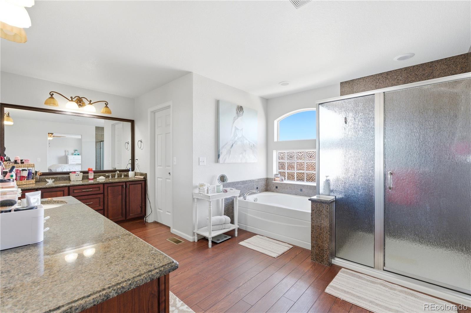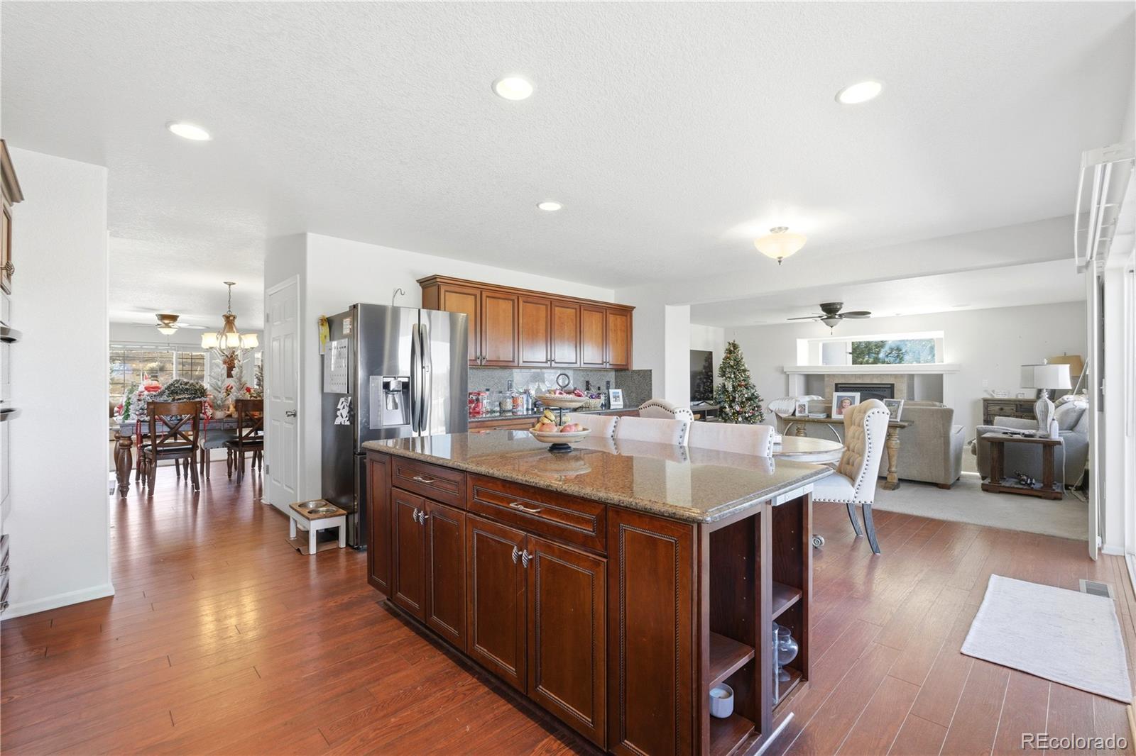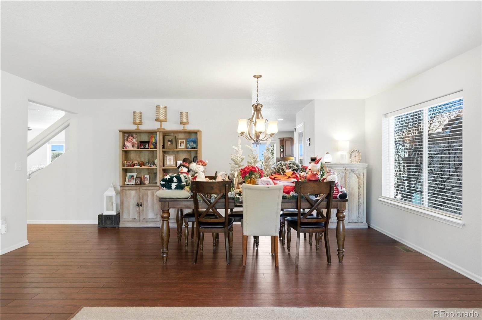 Set at the end of a quiet cul-de-sac, this stunning two-story home offers sweeping, unobstructed Front Range views that truly steal the show. From sunrise to sunset, the west-facing outlook delivers breathtaking Colorado scenery that will never be blocked; a rare and priceless feature. Adding to the appeal is an assumable VA loan at 5.5%. Inside, the home welcomes you with abundant natural light, rich hardwood floors, and a thoughtful layout designed for both everyday living and entertaining. The main living room is anchored by a dramatic three-sided glass fireplace and framed by floor-to-ceiling windows. A formal dining area sits just off the living space, ideal for cozy dinners by the fire. The chef’s kitchen features a large center island with seating, granite countertops, stainless steel appliances, ample cabinetry, and an oversized walk-in pantry. The kitchen flows seamlessly into the family room, where a second gas fireplace, custom built-ins, and expansive windows create a warm and inviting space. From here, step outside to the expansive west-facing deck, an entertainer’s dream and the perfect place to soak in Colorado sunsets and mountain vistas. Upstairs, a generous loft provides flexible space for a home office, game room, or media area. The spacious primary suite is a true retreat with jaw-dropping views, a five-piece bath, oversized shower, soaking tub, and a large walk-in closet. Three additional bedrooms, each with walk-in closets, and a full bath complete the upper level. The 1,587-square-foot unfinished walk-out basement offers endless possibilities to customize and expand, opening to a private patio below. A 4-car garage (3-car plus tandem) with epoxy flooring provides exceptional space for vehicles, storage, and all your Colorado gear. Located in The Meadows, residents enjoy access to The Grange pool and clubhouse, Bison Park, Ridgeline Open Space, and miles of trails, close to shopping, dining, and top-rated schools.