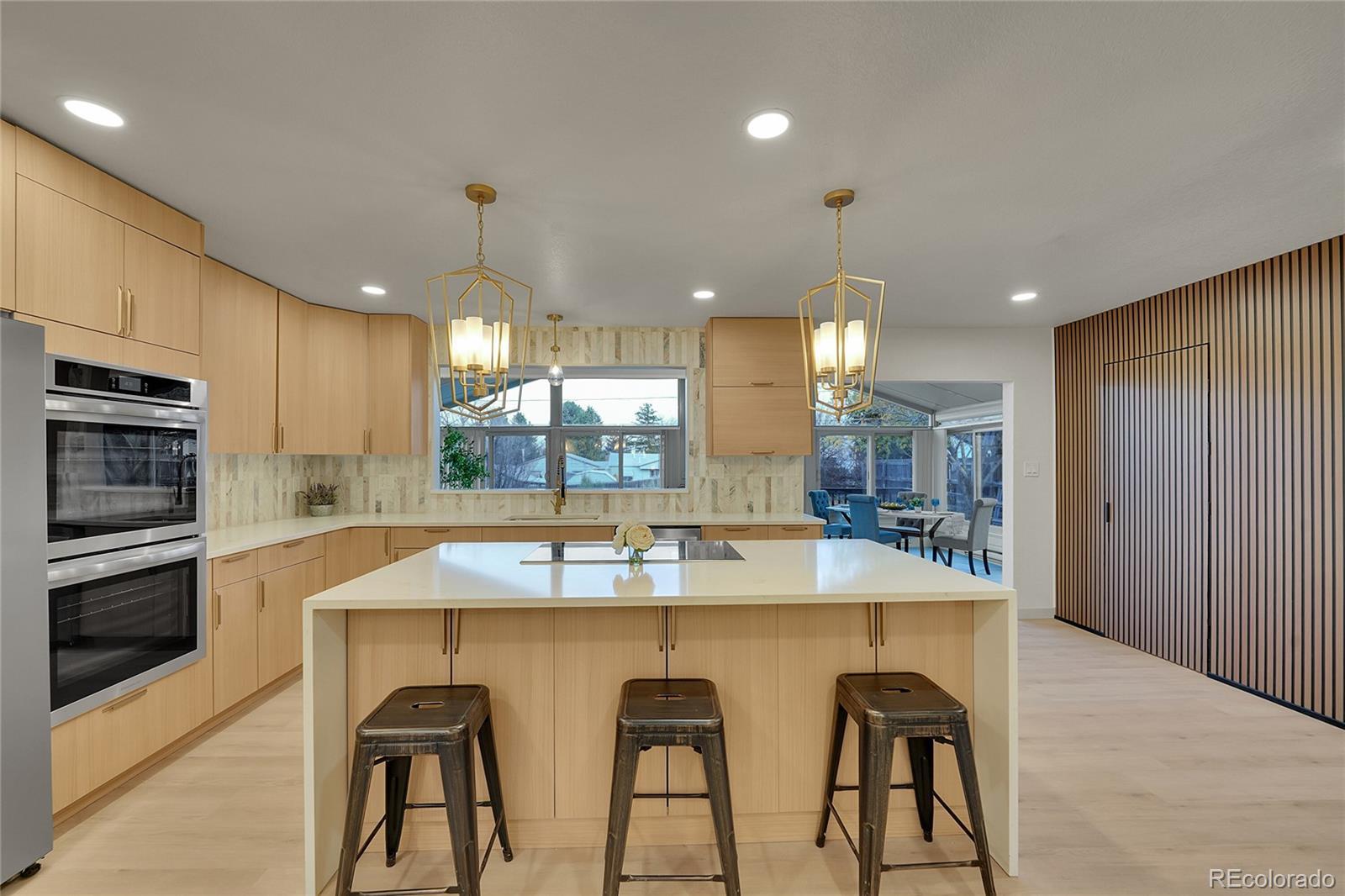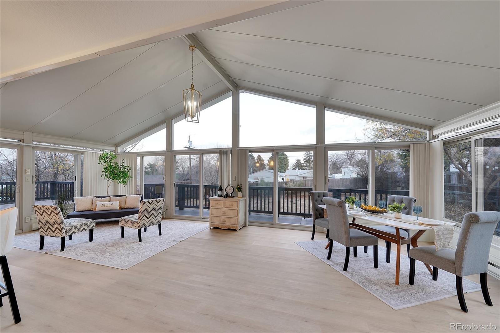Welcome to 830 Welch, an exquisitely renovated modern residence nestled within one of Lakewood’s most peaceful and highly coveted neighborhoods. This expansive 5-bedroom (2 basement non-conforming), 3-bath luxury home has been reimagined with sophisticated finishes, refined craftsmanship, and an effortless blend of comfort and elegance. Step inside to discover new flooring throughout, guiding you into a bright, open layout. The formal living room sets an elegant tone, while the cozy den with a fireplace offers the perfect spot to unwind. A stylish panel accent wall with a hidden door adds architectural interest and a touch of intrigue. The primary suite serves as a private sanctuary, featuring a luxurious double-sink vanity, a large spa-inspired shower with an illuminated shower niche, and thoughtfully selected finishes that evoke calm and indulgence. The heart of the residence is the gourmet chef’s kitchen, a showpiece of luxury featuring premium materials, a spacious double oven setup, and an impressive large kitchen island that serves as both a culinary workspace and a stylish gathering point. This extraordinary kitchen opens gracefully to an oversized solarium, creating an effortless environment for both grand gatherings and relaxed everyday living. This elevated space floods the interior with natural light to offer year-round enjoyment. Outdoor living shines here as well—step onto the large deck overlooking an ample sized, and fully fenced yard, ideal for morning coffee or hosting summer evenings under the stars. Additional highlights include a spacious two-car attached garage, thoughtfully updated interior and exterior spaces and plenty of room to spread out across multiple living areas. Modern, warm, and move-in ready, 830 Welch offers elevated living in a peaceful Lakewood setting. This is the home you’ve been waiting for.