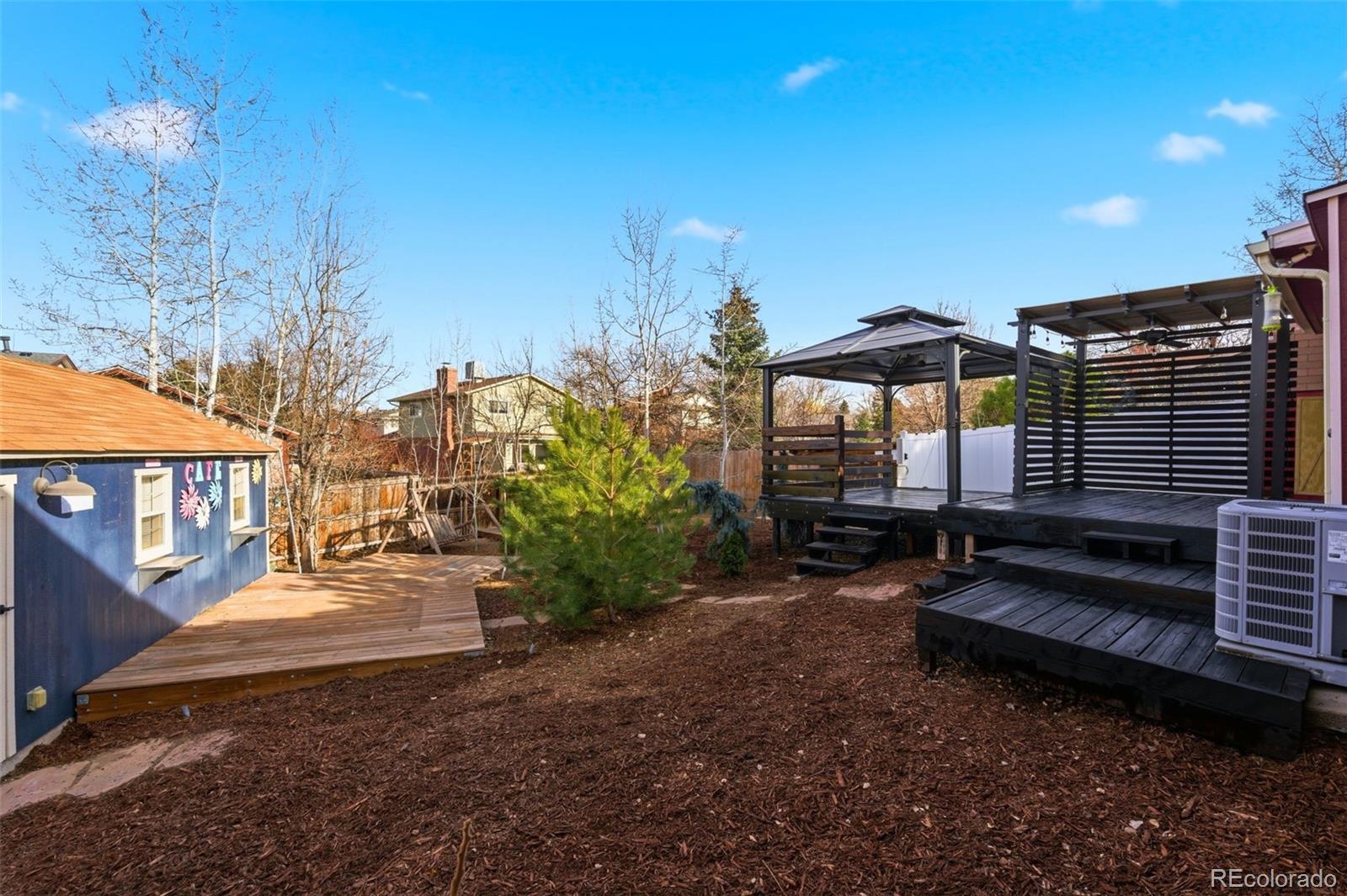 Set on one of the largest lots on the block (over 9,300 sq ft) with NO HOA, this single-story home with a finished basement offers three bedrooms and three bathrooms, including a main-level primary suite. Fresh interior paint, new carpet in the living room, updated vinyl flooring in the kitchen and pantry, and a remodeled kitchen with butcher block counters, new stove and dishwasher finish off the Ktchen. The living room is bright with a bay window, fresh paint and a freshly serviced wood-burning fireplace. An East facing enclosed sunroom off the kitchen adds flexible space for relaxing or entertaining. A nearby walk-in pantry/storage area accommodates all your storage needs. In the finished basement you'll find a large family room, a spacious bedroom with an ensuite bath, egress window, plus laundry and storage. What truly sets this property apart is the outdoor and parking setup. The fully fenced, xeriscaped yard includes mature trees, gazebo, deck, dog run, chicken coop, and a 10x10 storage shed. A concrete RV pad poured in 2019 can accommodate your recreational vehicles and toys. For hobbyists and makers, the detached garage features 220V power and A/C, ideal for a workshop, welding, or equipment use. The attached two-car garage has been finished and converted into flex living or rec space with a workshop. Major systems have been cared for, including a newer roof (2019) The furnace, A/C ducts, and fireplace were cleaned and serviced for peace of mind. This is a rare opportunity for buyers who need room for toys, tools, pets, and people — without HOA restrictions — in a location that keeps you close to everything with easy access to Highway 36 for quick commutes to Boulder or Denver, this property is designed for buyers who value lifestyle! Call for your private showing today!