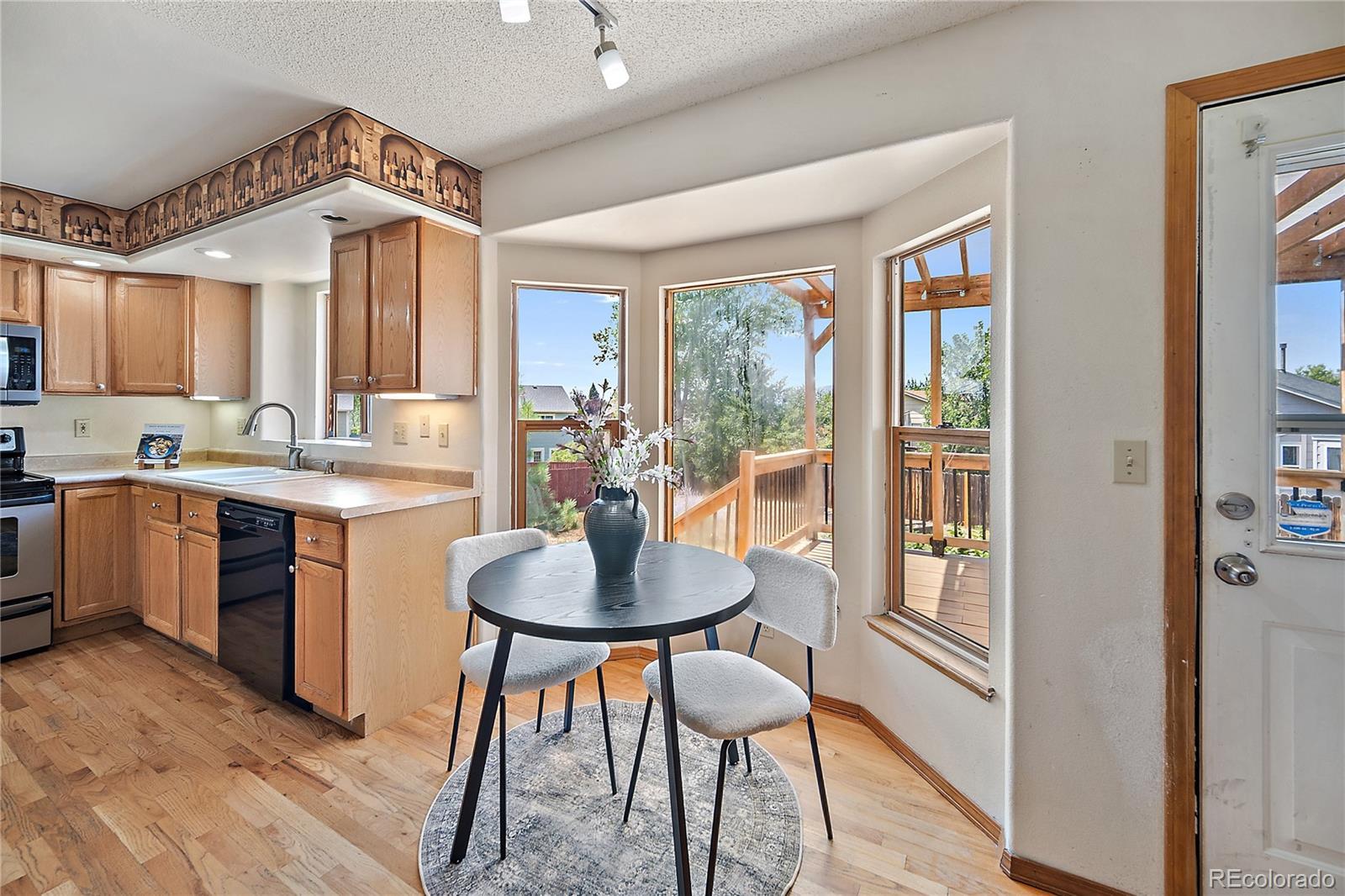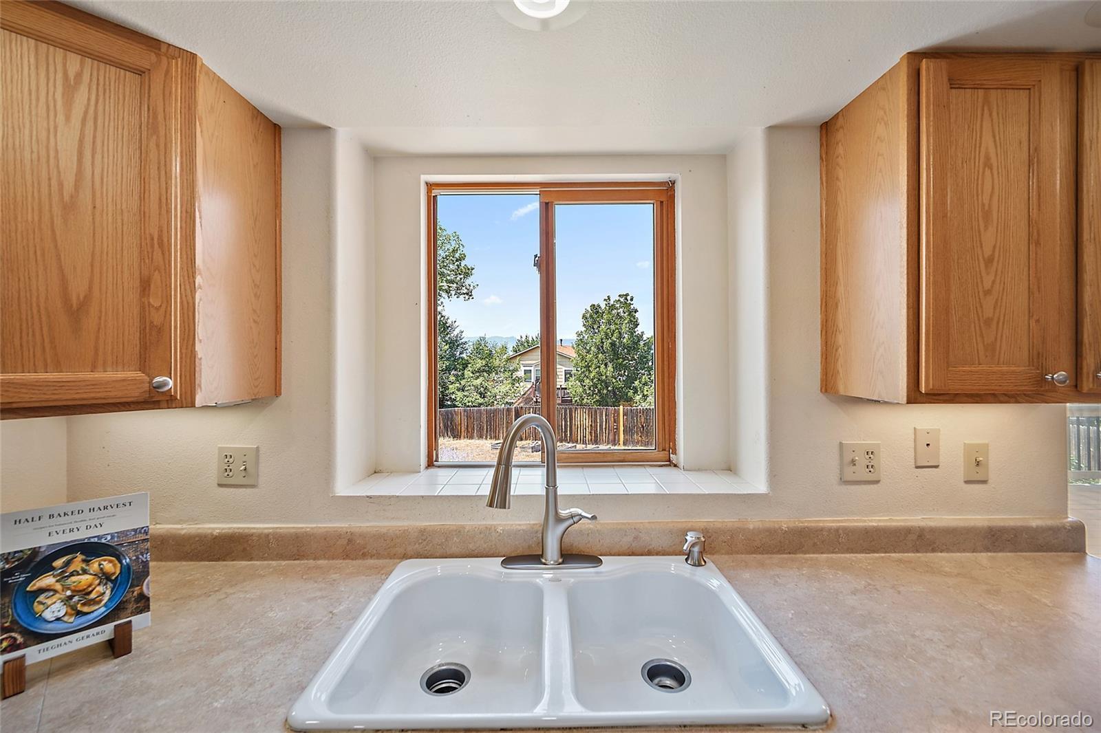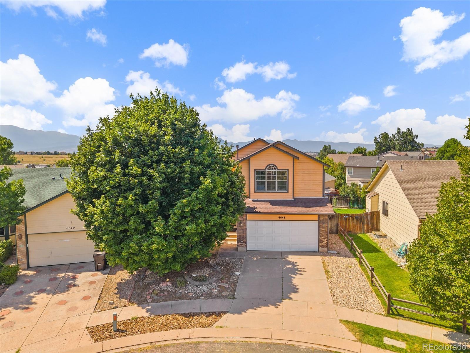 This spacious four-bedroom, three-and-a-half-bath home includes a finished basement and sits on a 7,666 square foot lot with incredible views of Pikes Peak and the Front Range. Inside, you’ll find thoughtful updates throughout. Luxury vinyl plank flooring flows through the living and formal dining areas on the main level and continues upstairs.The basement features brand-new carpet, adding a cozy feel to the additional living space. The primary bathroom has been fully remodeled and feels like a spa retreat with a freestanding soaking tub, double vanity, and a beautifully tiled walk-in shower. The secondary upstairs bathroom has also been upgraded with modern finishes and a sleek, glass shower door. Step outside to enjoy the large composite deck and a wood pergola, creating the perfect spot for sipping your morning coffee or evening entertaining. The location is one of the biggest highlights. Situated just off Dublin and Powers, you're minutes from multiple hospitals, shopping, dining, and everyday conveniences. Whether you're heading to work or enjoying a night out, everything you need is close by. Plus, NO HOA! This home blends comfort, style, and location in one fantastic package. Come see it for yourself!