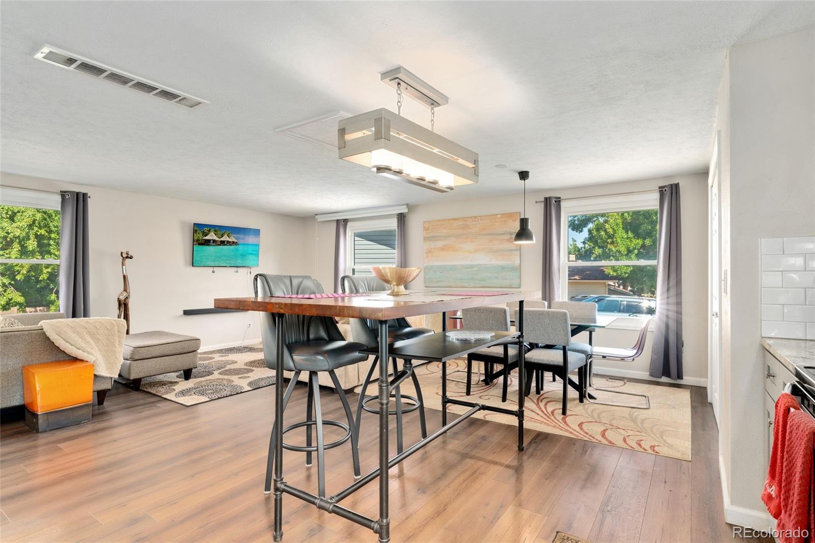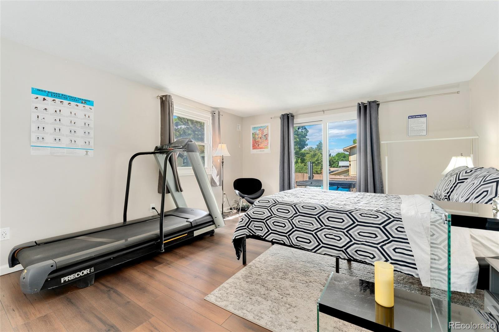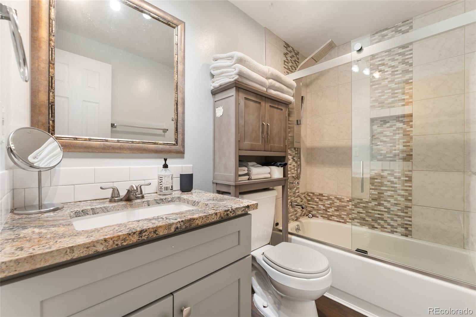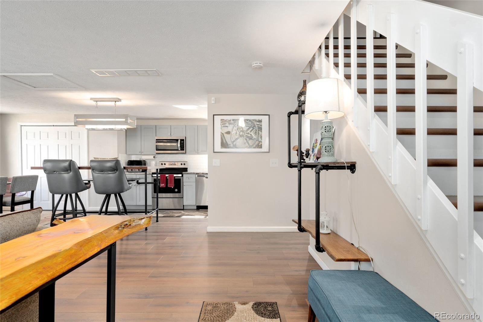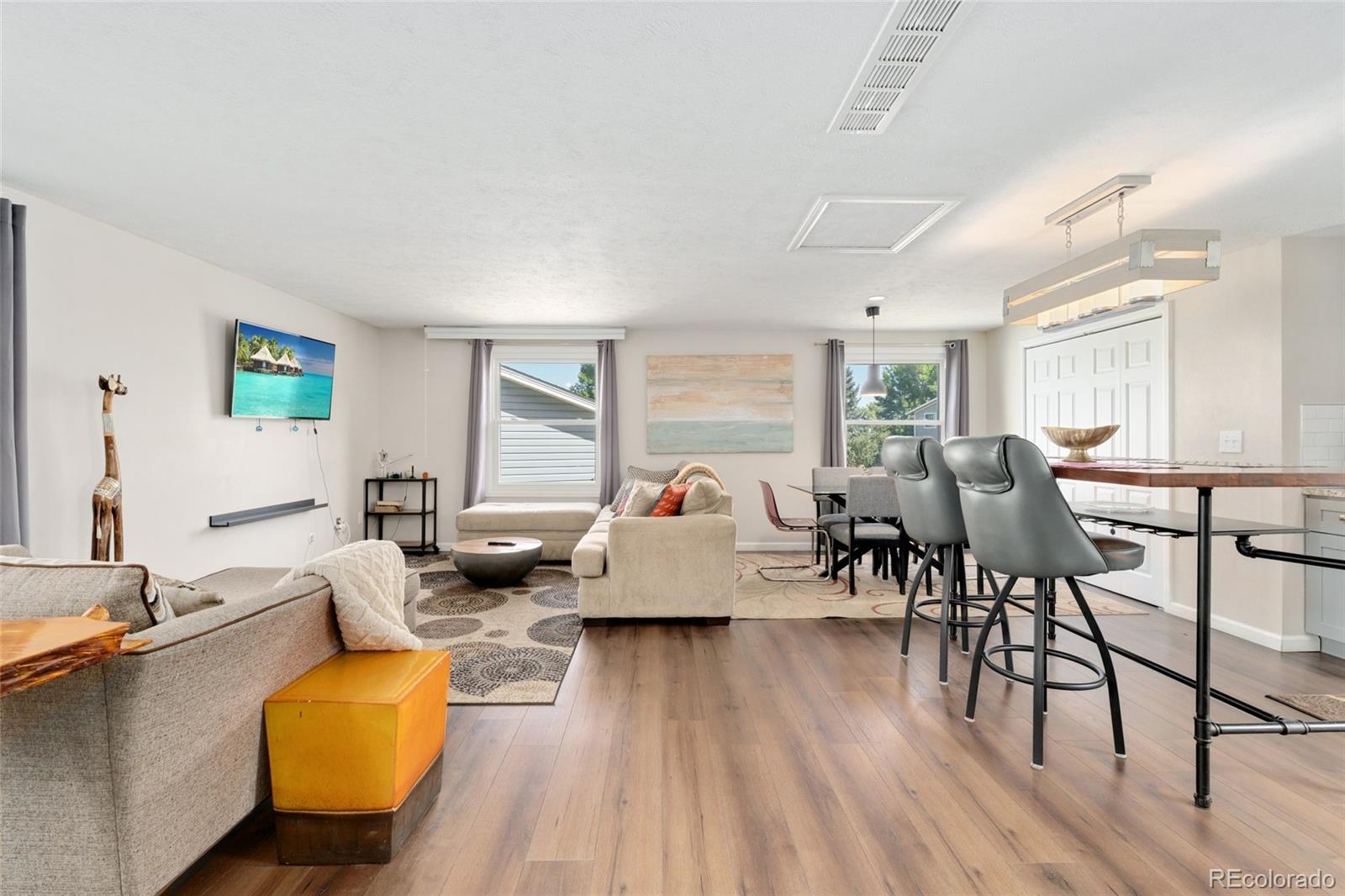 Charming and beautifully maintained, this home is nestled in the desirable Trendwood community on a quiet cul-de-sac street. Step inside to easy-maintenance laminate wood floors and a great open-concept main level. The chef-worthy kitchen features light gray cabinetry, granite countertops, stainless appliances, and a subway tile backsplash. The main level also offers both a living room and family room, with the flexibility to convert the family room into a spacious primary bedroom with an attached bath if desired. Upstairs you’ll find three bedrooms, including a primary suite with a large walk-in closet. The private backyard is perfect for relaxation or entertaining, complete with a large concrete patio, fenced garden area, and a separate corner brick patio. Recent updates include a new electric panel, new patios, and a fully renovated bathroom. Energy-efficient solar panels add to the home’s appeal. Community trails are just steps away, leading to the Westminster Sports Center and neighborhood park. Standley Lake is minutes away, and easy access to Hwy 36 makes commuting to the mountains, Boulder, and downtown Denver a breeze.