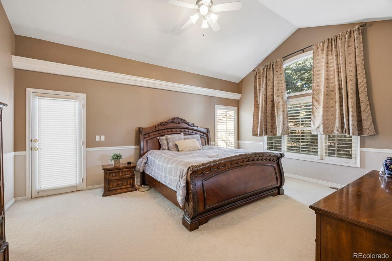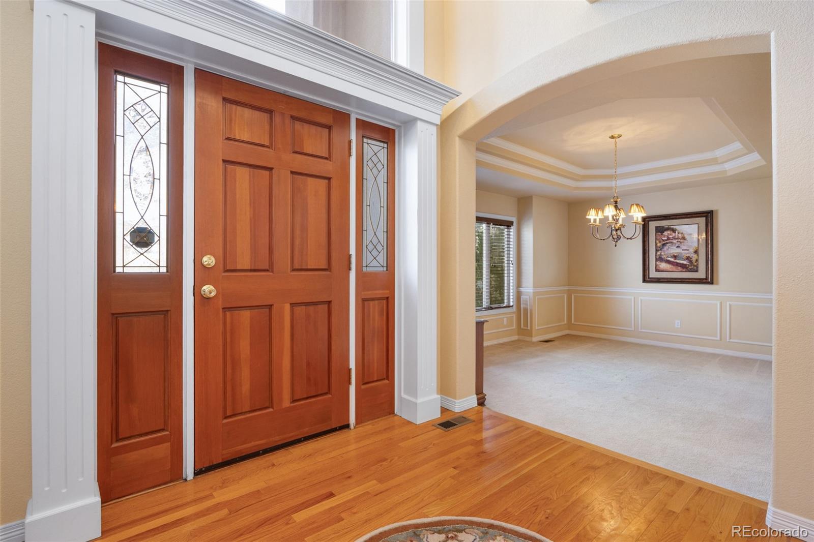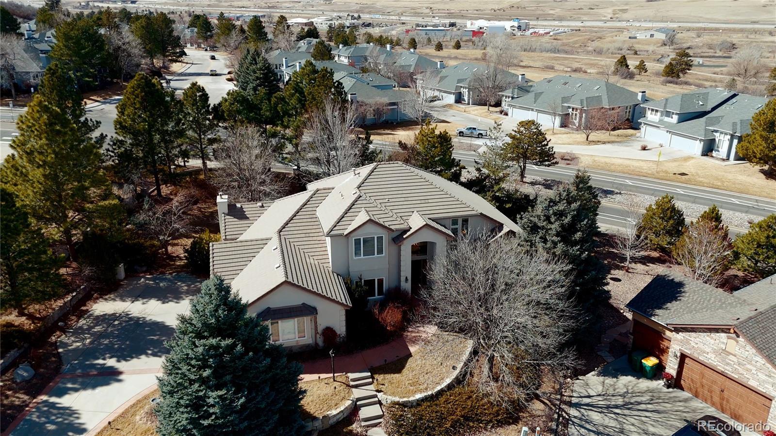 Tucked on a quiet cul-de-sac in Players Club Estates and set on a rare 23,740 sq ft lot spanning two parcels, this executive home offers privacy, space, and timeless appeal just moments from Plum Creek Golf Course. Tiered landscaping and decorative stone walls create a striking first impression, while inside a sun-drenched foyer opens to a thoughtful floor plan that blends elegant formal spaces with comfortable areas for everyday living. The main-floor primary suite features a luxurious five-piece bath, walk-in closet and direct access to a private deck. The main floor also features a private office with French doors and custom, floor to ceiling built-ins. The spacious kitchen includes a center island with a band new cooktop, double oven, and generous storage, flowing easily into gathering spaces ideal for entertaining. Upstairs offers three large bedrooms and two full baths, while the finished walkout basement adds a rec/media room, game area, wet bar, wine cellar, and flexible bonus space with exceptional storage throughout. Enjoy Colorado’s sunshine and Front Range sunsets from two elevated decks or the lower patio, all in a move-in ready home with a 3-car garage and convenient access to trails, shopping, and I-25.