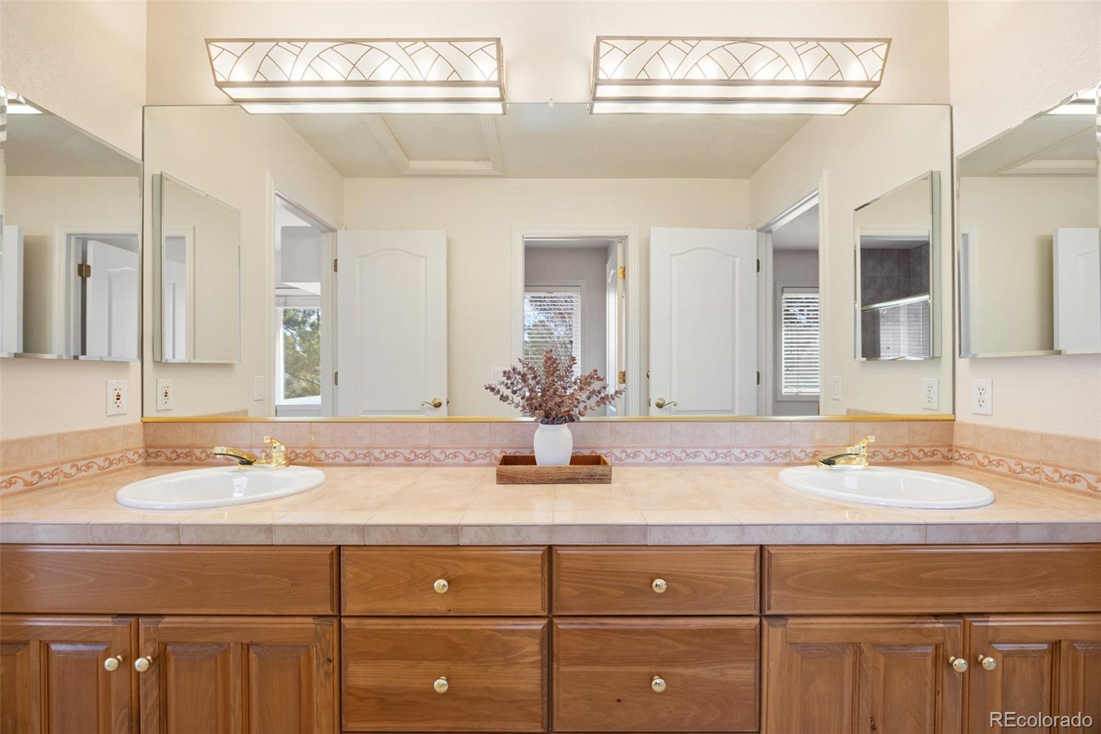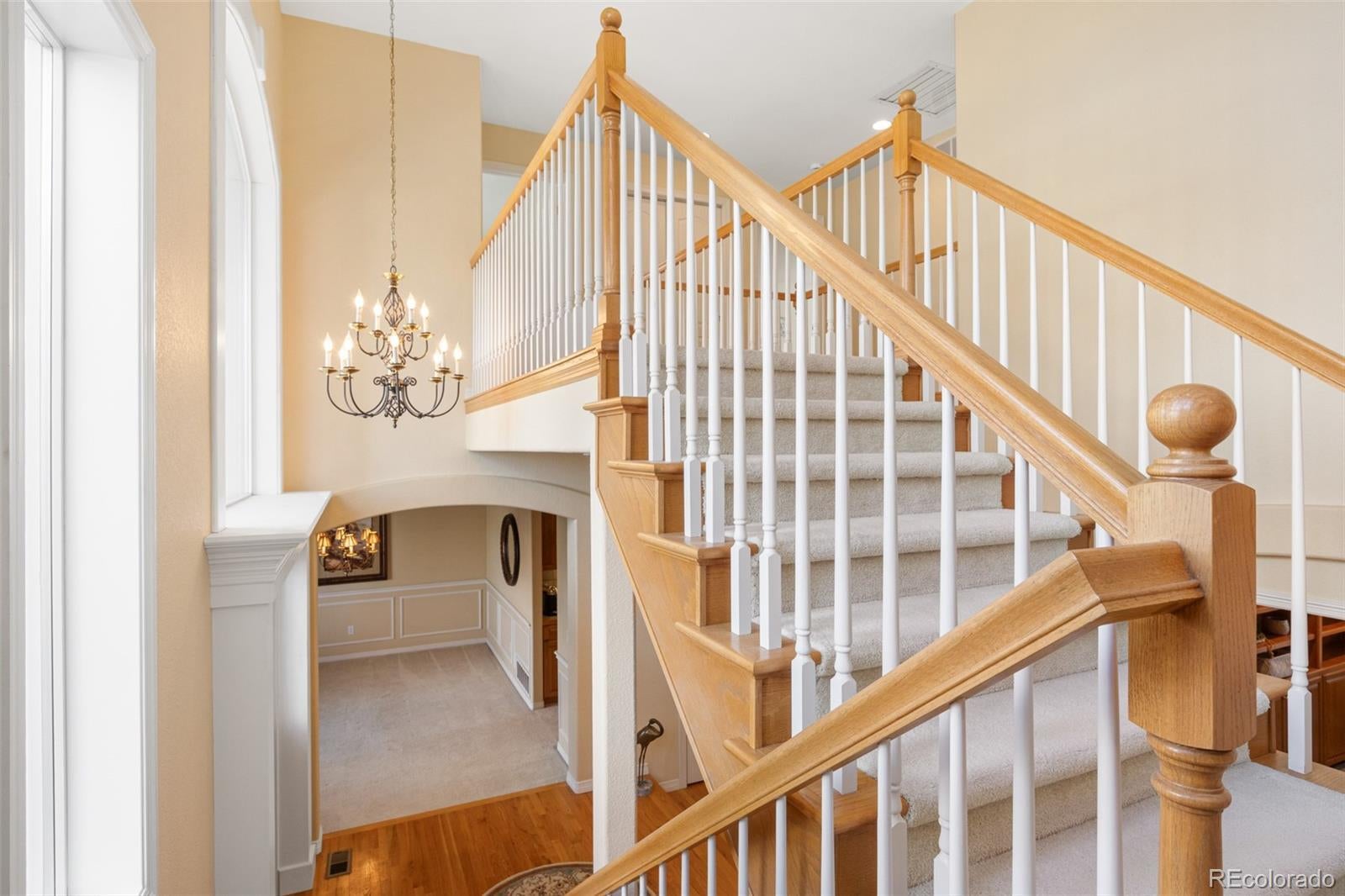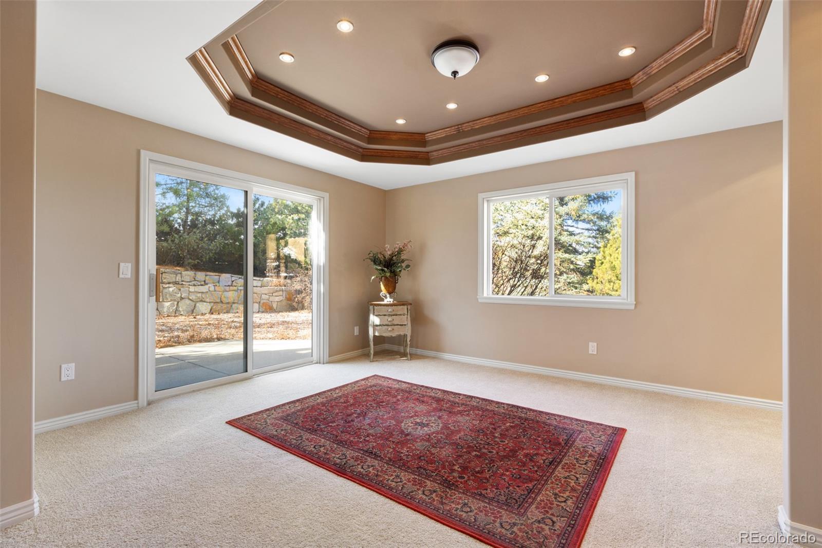 Tucked on a quiet cul-de-sac in Players Club Estates and set on a rare 23,740 sq ft lot spanning two parcels, this executive home offers privacy, space, and timeless appeal just moments from Plum Creek Golf Course. Tiered landscaping and decorative stone walls create a striking first impression, while inside a sun-drenched foyer opens to a thoughtful floor plan that blends elegant formal spaces with comfortable areas for everyday living. The main-floor primary suite features a luxurious five-piece bath, walk-in closet and direct access to a private deck. The main floor also features a private office with French doors and custom, floor to ceiling built-ins. The spacious kitchen includes a center island with a band new cooktop, double oven, and generous storage, flowing easily into gathering spaces ideal for entertaining. Upstairs offers three large bedrooms and two full baths, while the finished walkout basement adds a rec/media room, game area, wet bar, wine cellar, and flexible bonus space with exceptional storage throughout. Enjoy Colorado’s sunshine and Front Range sunsets from two elevated decks or the lower patio, all in a move-in ready home with a 3-car garage and convenient access to trails, shopping, and I-25.