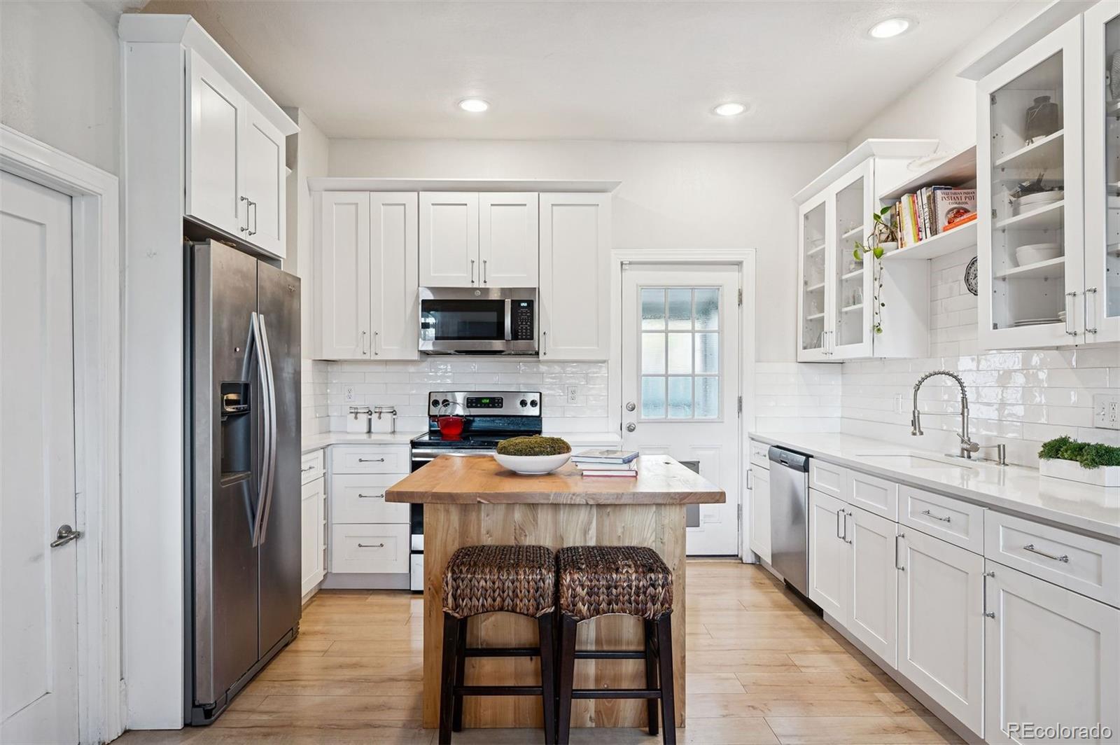 Welcome to this beautifully updated home situated on a quiet, tree-lined block in the heart of Denver’s highly sought-after Sunnyside neighborhood. Combining timeless character with thoughtful modern updates, this residence offers an inviting blend of style, comfort, and functionality. The main floor features an open and airy layout with two bedrooms and a full bath. The updated kitchen is a true centerpiece, showcasing white shaker cabinets, quartz countertops, center island, and a classic subway tile backsplash—perfect for cooking, entertaining, or gathering with family and friends. Sunlight pours through the home’s many windows, filling every room with warmth and natural light. Upstairs, a spacious loft-style retreat with a closet provides endless possibilities. Whether used as a primary bedroom, home office, guest suite, or creative studio, this flexible space adapts easily to your lifestyle needs. The finished basement offers even more versatility, including a generous laundry area, dedicated workout space, and a large recreation or storage area. Step outside to enjoy your private, fully fenced patio and garden—an ideal spot for morning coffee, evening gatherings, or simply soaking up Colorado’s sunshine. The oversized one-car garage provides additional storage and includes a 220V electric car charger for added convenience. Located within a few blocks to Sunnyside and Lohi's favorite coffee shops, trendy boutiques and local dining venues!