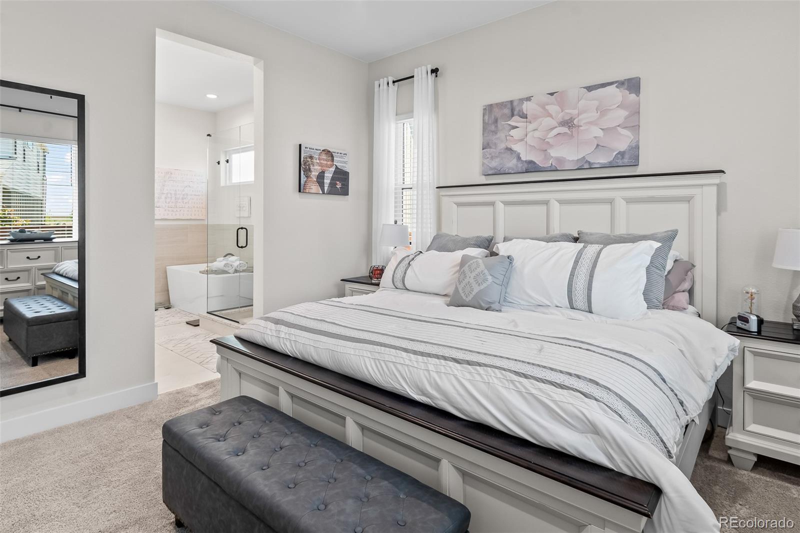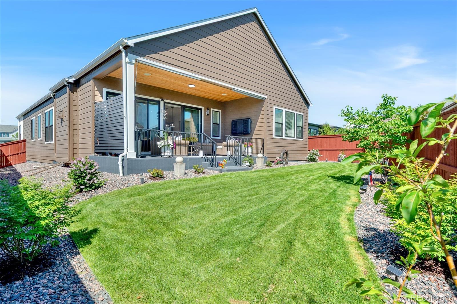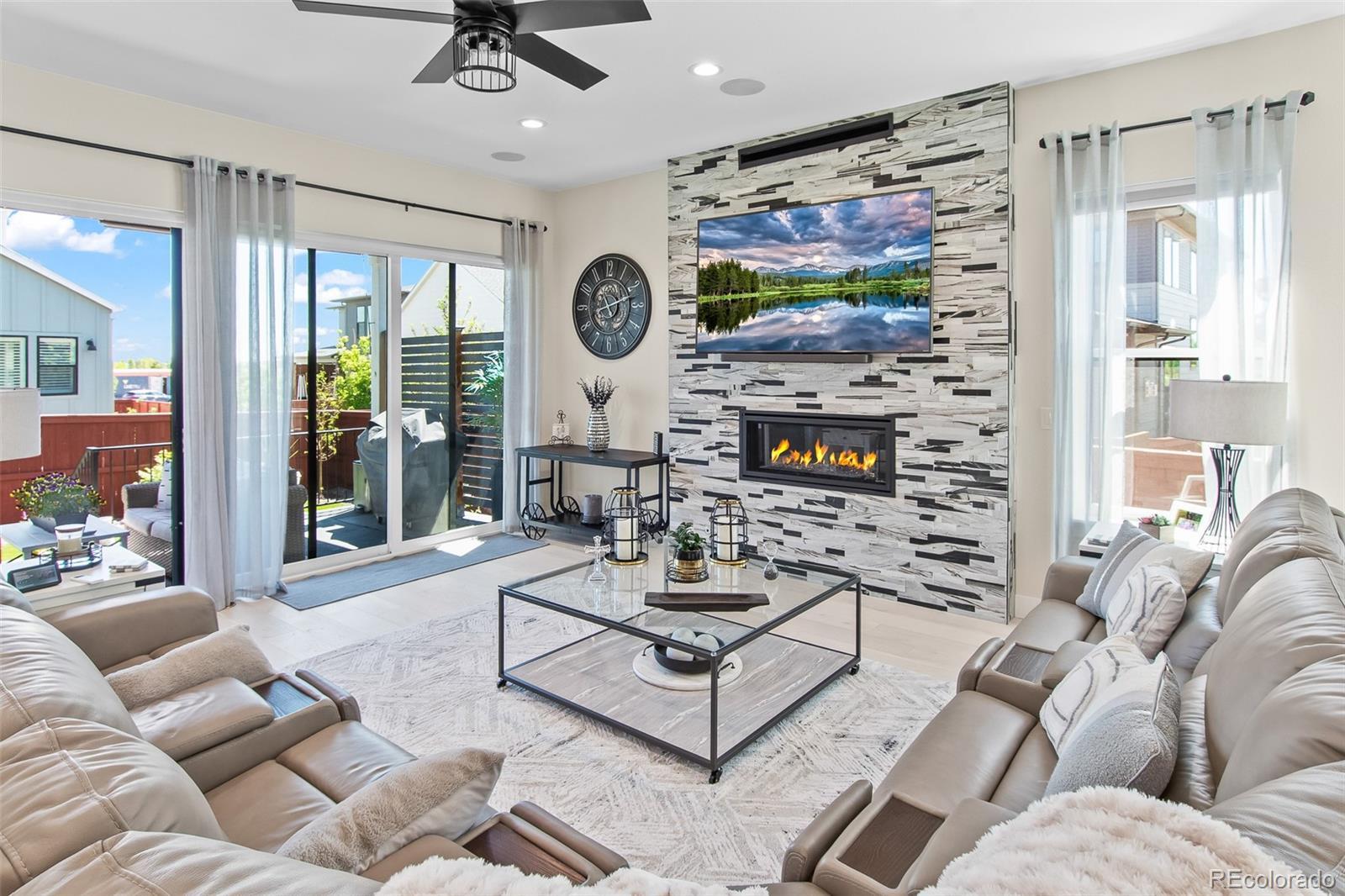 Welcome to the desired Sub Area of Raindance in Windsor Colorado! This immaculate property offers 5 bedrooms, 4 bathrooms, a flex room/office, the fully finished two car garage features custom hot water faucet with epoxy flooring. The main level features brand new gray stained wood flooring throughout, a gourmet kitchen with ample cabinet space, waterfall kitchen countertops, walk in pantry, gas range top. The living room features a floor to ceiling backsplash gas fireplace that is absolutely beautiful. Power remote window shades and new LED light fixtures. Enjoy walking out from your main level to an oversized patio with rod ironed railing, privacy wall, custom winter proof tv cover with LG TV with a 110 electrical outlet included, custom cedar ceiling and a plumbed gas line for grilling! Three bedrooms on the upper level with a bonus flex room/office area and a laundry room for convenience. Your large primary bedroom features a five-piece bathroom with an oversized shower, free standing bathtub, double vanities and a massive walk-in closet. Enjoy dual zone thermostats and OLEO Lighting on the exterior. The newly finished basement offers an open concept area, a full wet bar with custom 10' quarts countertop. two huge bedrooms one with a walk-in closet, a dedicated workout area with rubber flooring. The designer bathroom in the basement offers a 72-inch square sink quartz double vanity countertop, with overhead rainfall shower. Amazing location with festival park directly in front of the home. Raindance National Golf course which is the longest course in the United States is .2 miles away from hole 1! Hoe Down sledding Hill is a block away. Golf pro-shop and Grainhouse bar within walking distance (1 block) This is truly a one-of-a-kind custom home and a must see in person!