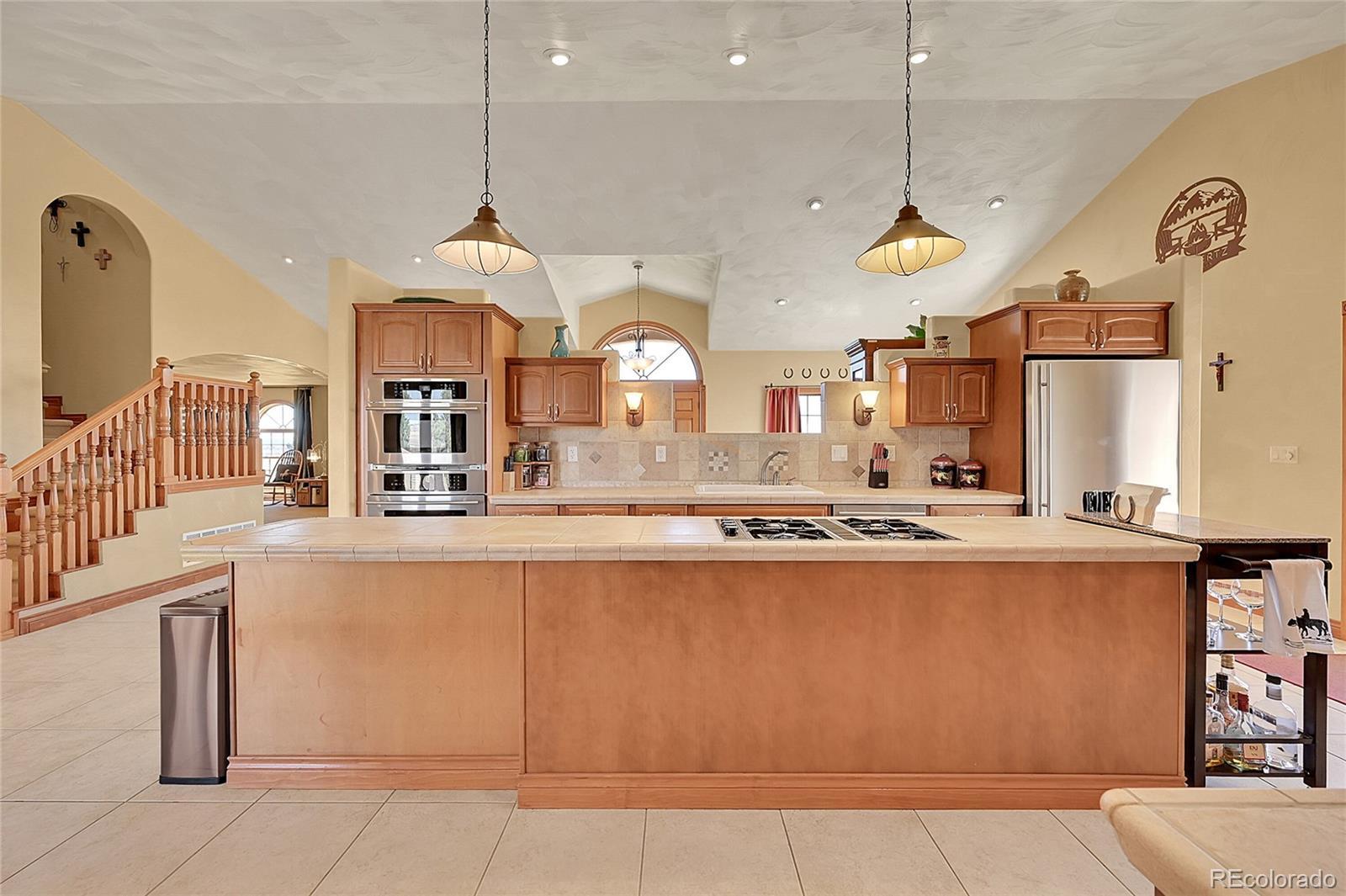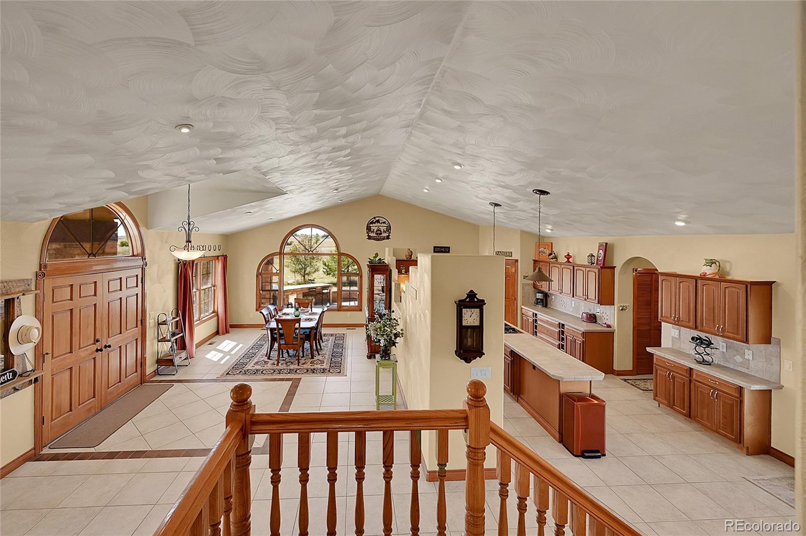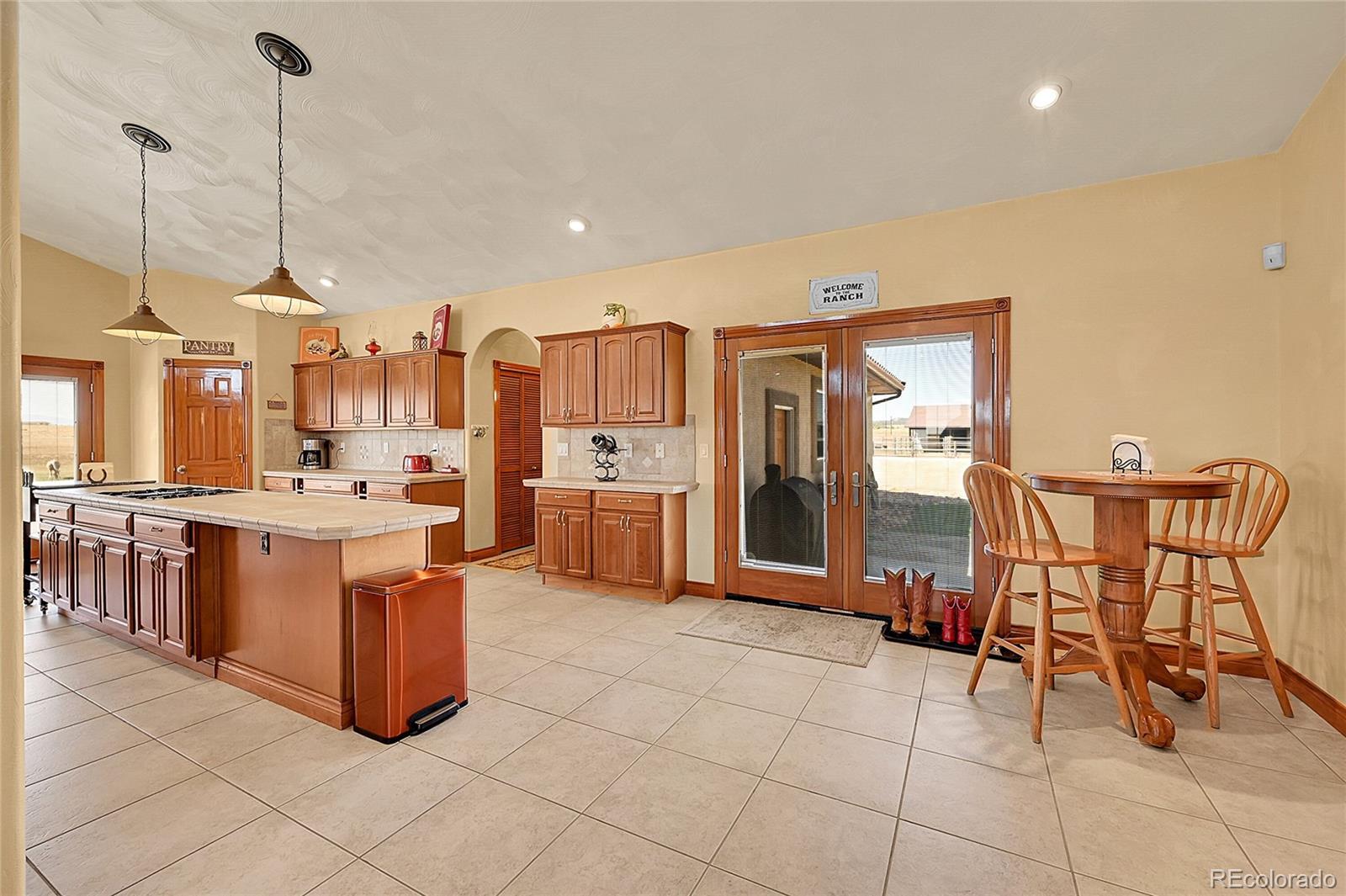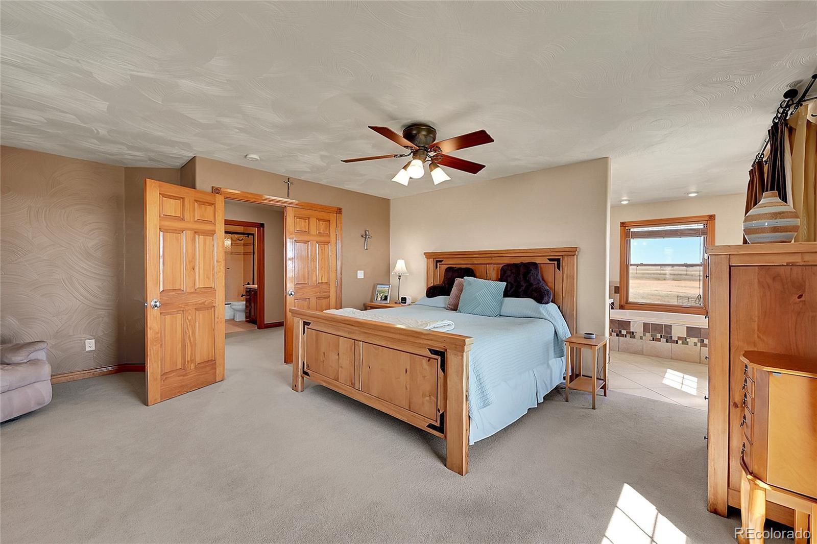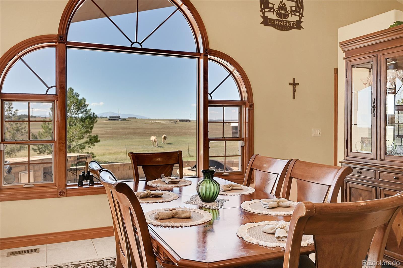 Discover the perfect blend of upscale living and horse-ready amenities in this custom Tuscan-style estate, set on 35 tranquil acres with unobstructed views of Pikes Peak and the Front Range. Topped with a classic tile roof and finished in rich stucco and stone, this home offers timeless elegance, thoughtfully designed for both comfort and country living. Horse lovers will appreciate the south-facing 4-stall barn with automatic waterers and dedicated storage. The land is thoughtfully cross fenced into two 17-acre pastures for rotational grazing. Two south-facing loafing sheds (convertible to four) provide ideal shelter for horses or livestock. A 100x100 outdoor arena with separating pen is ready for training or riding. Inside, the main level features a chef’s kitchen with stainless appliances, a large island, breakfast nook, and formal dining area. The sunlit living room centers around a cozy fireplace. A main-floor suite with attached bath adds flexibility. Upstairs, the primary suite offers a 5-piece luxury bath with jetted tub and dual-head shower, plus two more bedrooms and a full bath. Enjoy outdoor living with a full kitchen, spacious patio, and fire pit, all with stunning mountain views. The fenced backyard features mature trees and lush lawn—perfect for relaxing or entertaining. Other features included: An oversized 3-car finished garage for large vehicles, Central air for year-round comfort, newer water heater and furnace, new carpet, Jen- Air Kitchen Appliances, and so much more. Whether you’re a serious horse enthusiast, a hobby rancher, or simply dream of wide-open space and fresh air, this exceptional property offers a rare opportunity to live the equestrian lifestyle without sacrificing luxury or convenience—all just minutes from modern amenities.