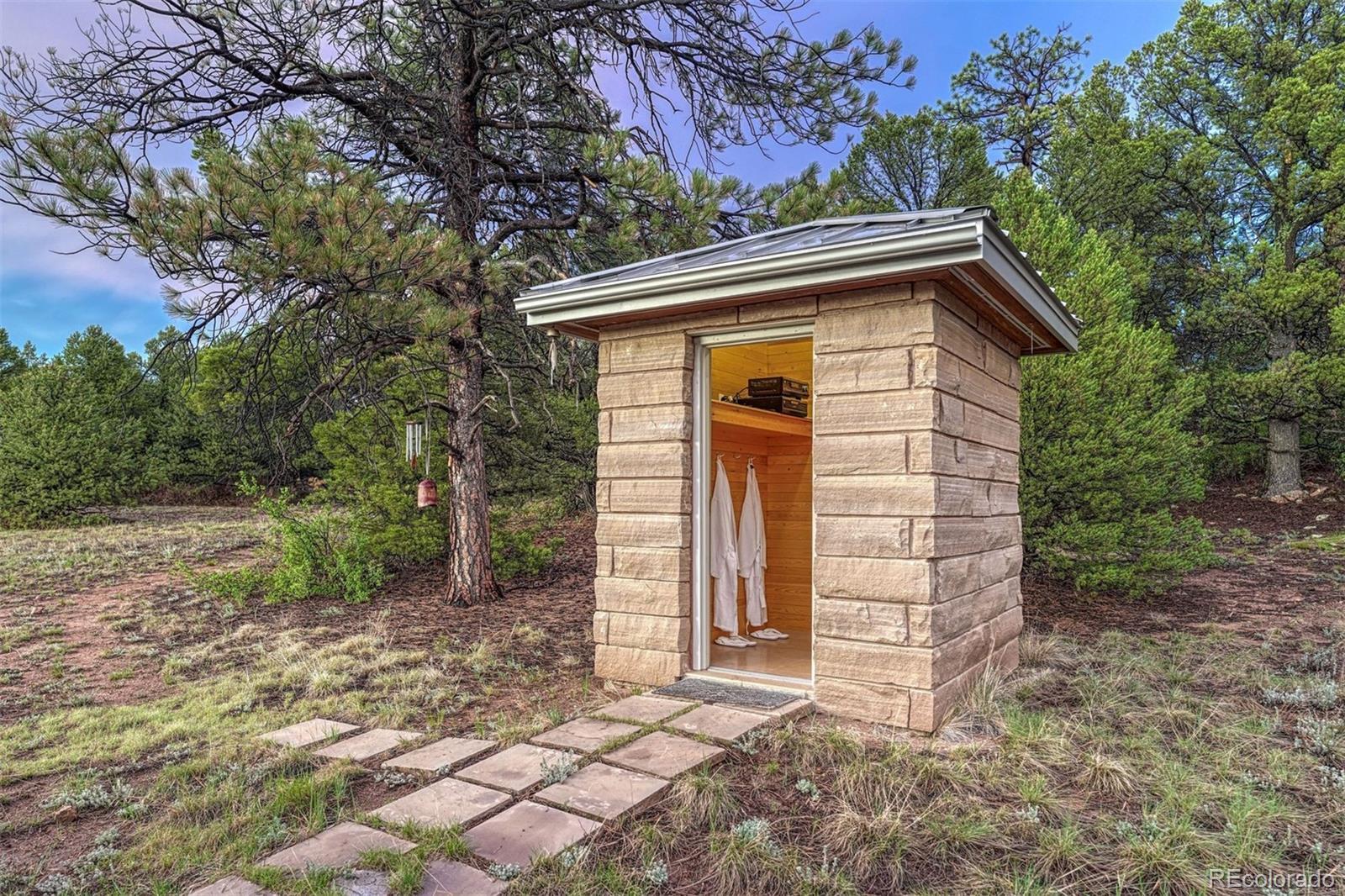 Welcome to Rancho Bendito, a 411-acre off-grid luxury estate in Cotopaxi Colorado, nestled beneath the breathtaking Sangre de Cristo Mountains. Designed for self-sufficiency, sustainability, and spiritual connection, this rare property blends architectural excellence w/regenerative living. Powered by solar, wind, & backup generator, the estate includes a 3,210 SF main residence w/3 bedrooms & 3.5 baths, radiant in-floor heating, 2 fireplaces (convertible between gas and wood), & walls crafted from New Mexico sandstone & hand-finished plaster. A chef’s kitchen features a Viking range, Sub-Zero refrigerator, granite countertops, custom cabinetry, & a built-in Kohler steamer-pot-filler. A 1,800 SF 3-bedroom, 1-bath casita offers guests or caretakers privacy & comfort. Additional structures include a finished, heated workshop/garage (space for 4–6 vehicles), a subterranean greenhouse (heated & irrigated for year-round food production), an outdoor garden, pine tree nursery, European-style labyrinth, meditation chapel, & a professional-grade observatory w/17-inch telescope under some of Colorado’s clearest dark skies. Private trails wind through meadows & forested hills, teeming w/wildlife. A private well & septic system support the property. Protected by a conservation trust & bordered by public lands, Rancho Bendito offers exceptional privacy & natural beauty. Ideal for a legacy estate, wellness retreat, or conservation-minded buyer. Come for the mountains. Stay for the stars. Live in wonder.