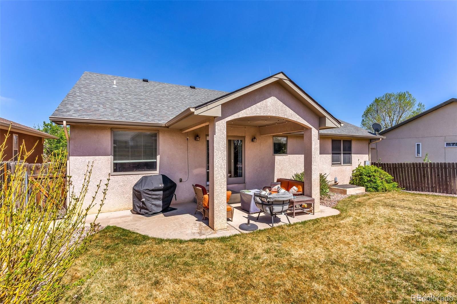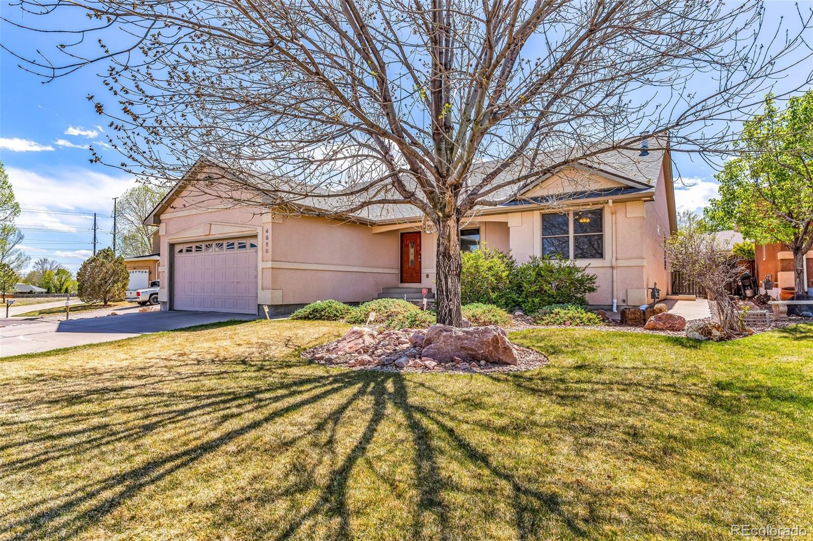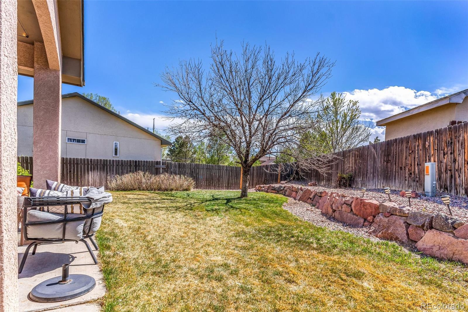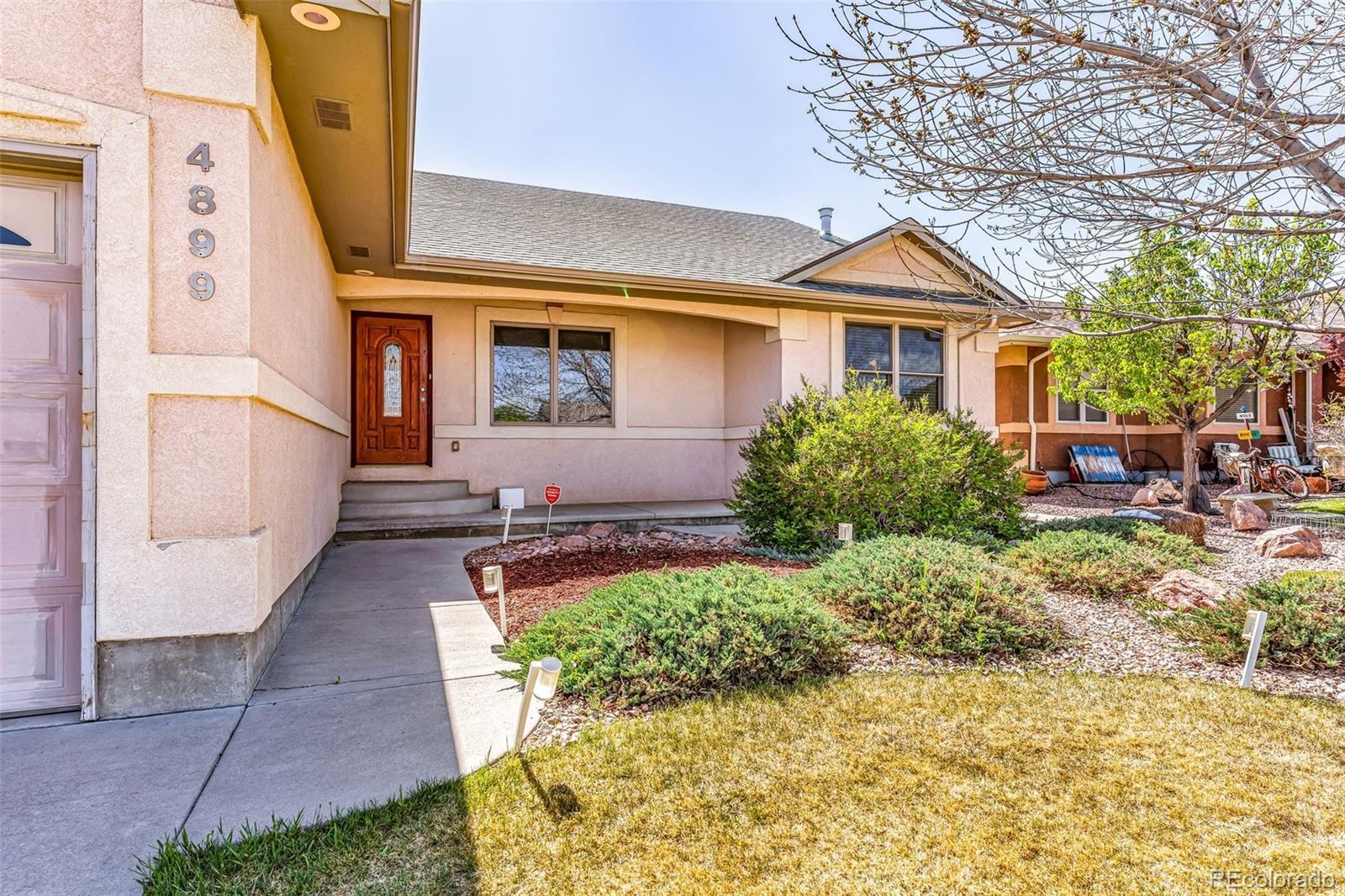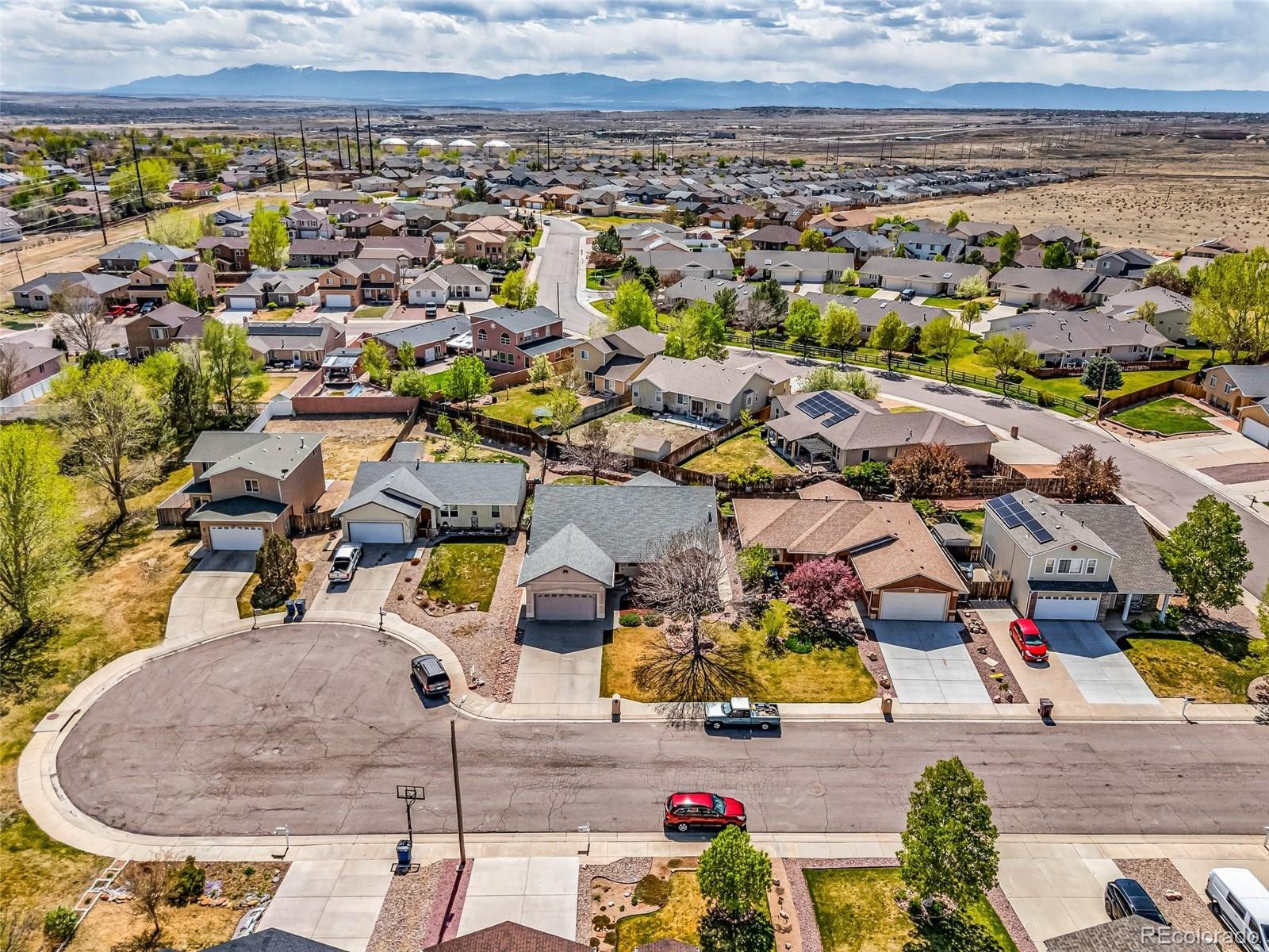 Tucked into a quiet cul-de-sac with no through traffic, this 5-bedroom, 3-bathroom home offers comfort, functionality, and a smart layout on Pueblo’s north side. Green space at the end of the street adds a sense of privacy and openness. Oversized 2 car garage. The landscaped front yard features a mix of lush lawn, mature tree, and xeriscaping for curb appeal with low upkeep. Inside, the vaulted ceiling in the living room brings in natural light and a sense of openness. The kitchen includes tile flooring, a center island with bar seating, stainless steel appliances, tile backsplash, pantry, and a glass-inset cabinet to showcase your favorite pieces. The dining area opens to the backyard for easy indoor-outdoor flow, and a nearby office or den is ideal for remote work, hobbies, or a quiet reading space. The main-level primary suite includes a walk-in closet and a private bath with double sinks, a jetted tub, and a walk-in shower. Two additional main-level bedrooms and a full bath round out the main floor. Downstairs, the finished basement features a large family room with fireplace, a wet bar for entertaining, two more bedrooms, and a ¾ bath with walk-in shower. All appliances included. The backyard includes a covered patio, grassy area, shade tree, and more xeriscaping. Located near schools, shopping, dining, and parks for added convenience.