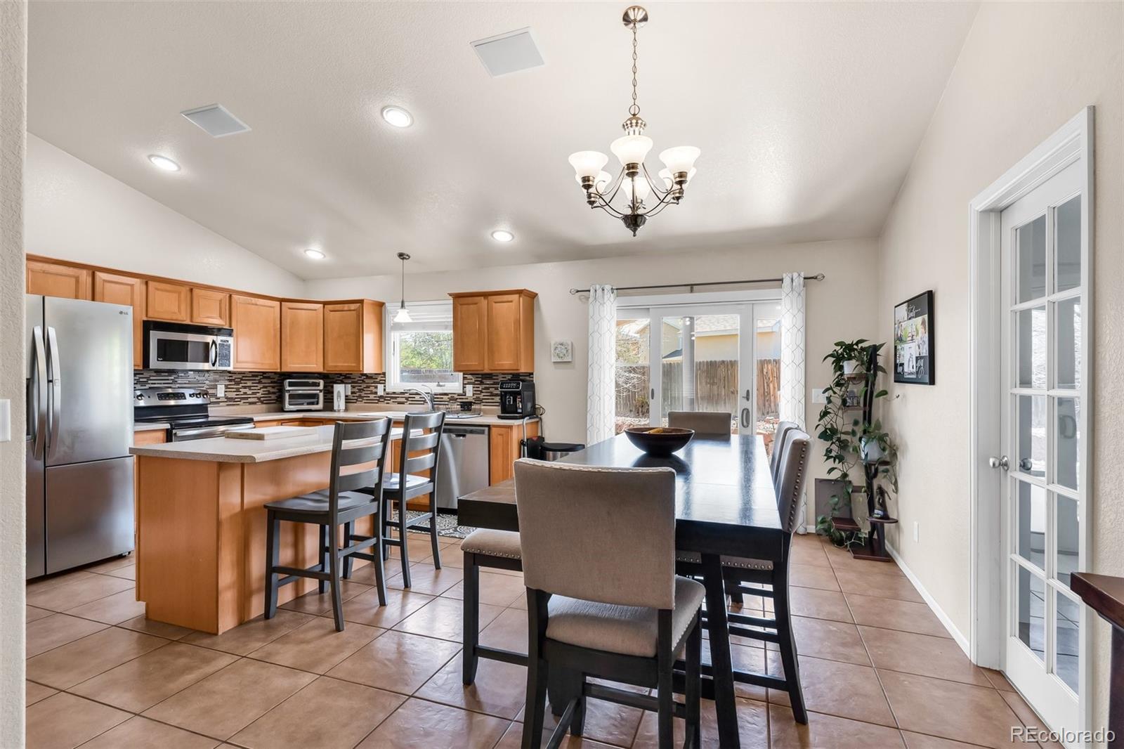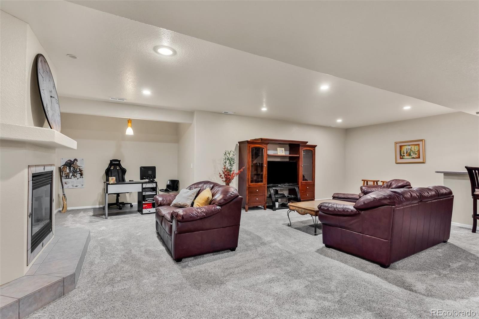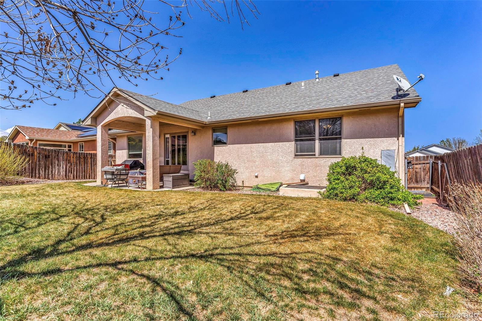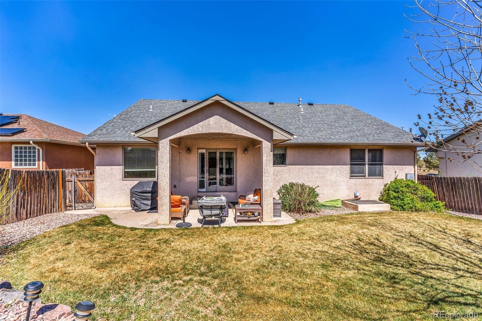 Tucked into a quiet cul-de-sac with no through traffic, this 5-bedroom, 3-bathroom home offers comfort, functionality, and a smart layout on Pueblo’s north side. Green space at the end of the street adds a sense of privacy and openness. Oversized 2 car garage. The landscaped front yard features a mix of lush lawn, mature tree, and xeriscaping for curb appeal with low upkeep. Inside, the vaulted ceiling in the living room brings in natural light and a sense of openness. The kitchen includes tile flooring, a center island with bar seating, stainless steel appliances, tile backsplash, pantry, and a glass-inset cabinet to showcase your favorite pieces. The dining area opens to the backyard for easy indoor-outdoor flow, and a nearby office or den is ideal for remote work, hobbies, or a quiet reading space. The main-level primary suite includes a walk-in closet and a private bath with double sinks, a jetted tub, and a walk-in shower. Two additional main-level bedrooms and a full bath round out the main floor. Downstairs, the finished basement features a large family room with fireplace, a wet bar for entertaining, two more bedrooms, and a ¾ bath with walk-in shower. All appliances included. The backyard includes a covered patio, grassy area, shade tree, and more xeriscaping. Located near schools, shopping, dining, and parks for added convenience.