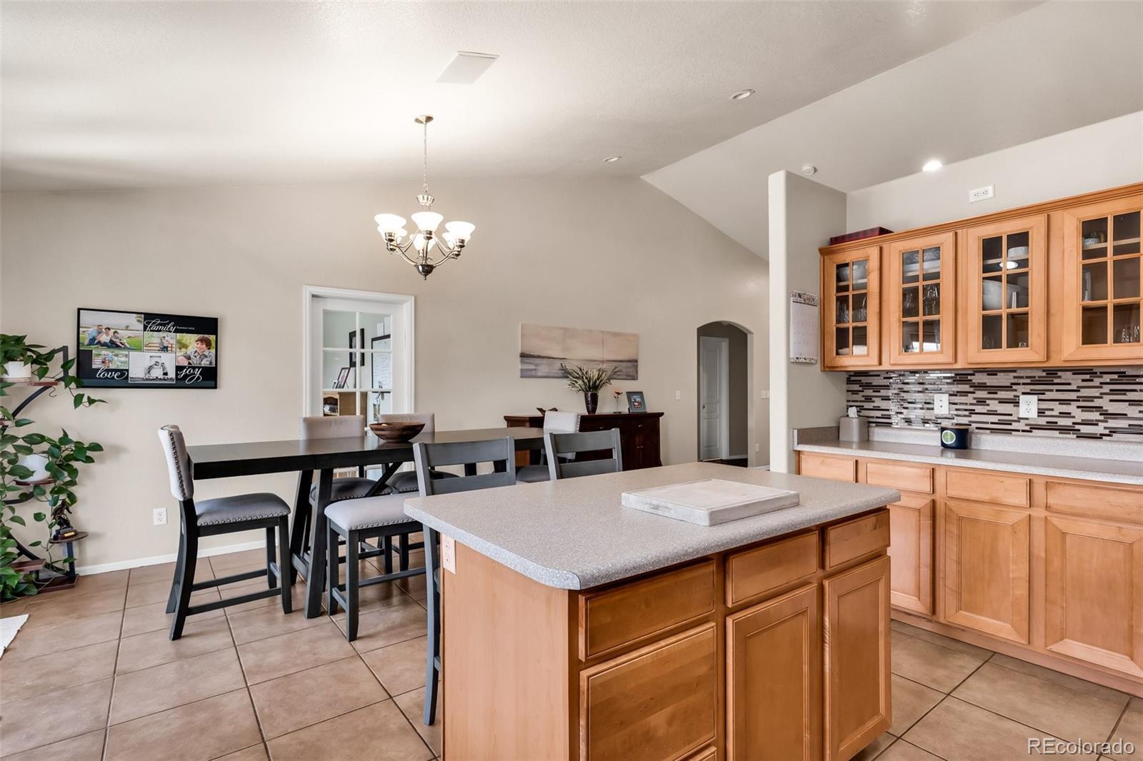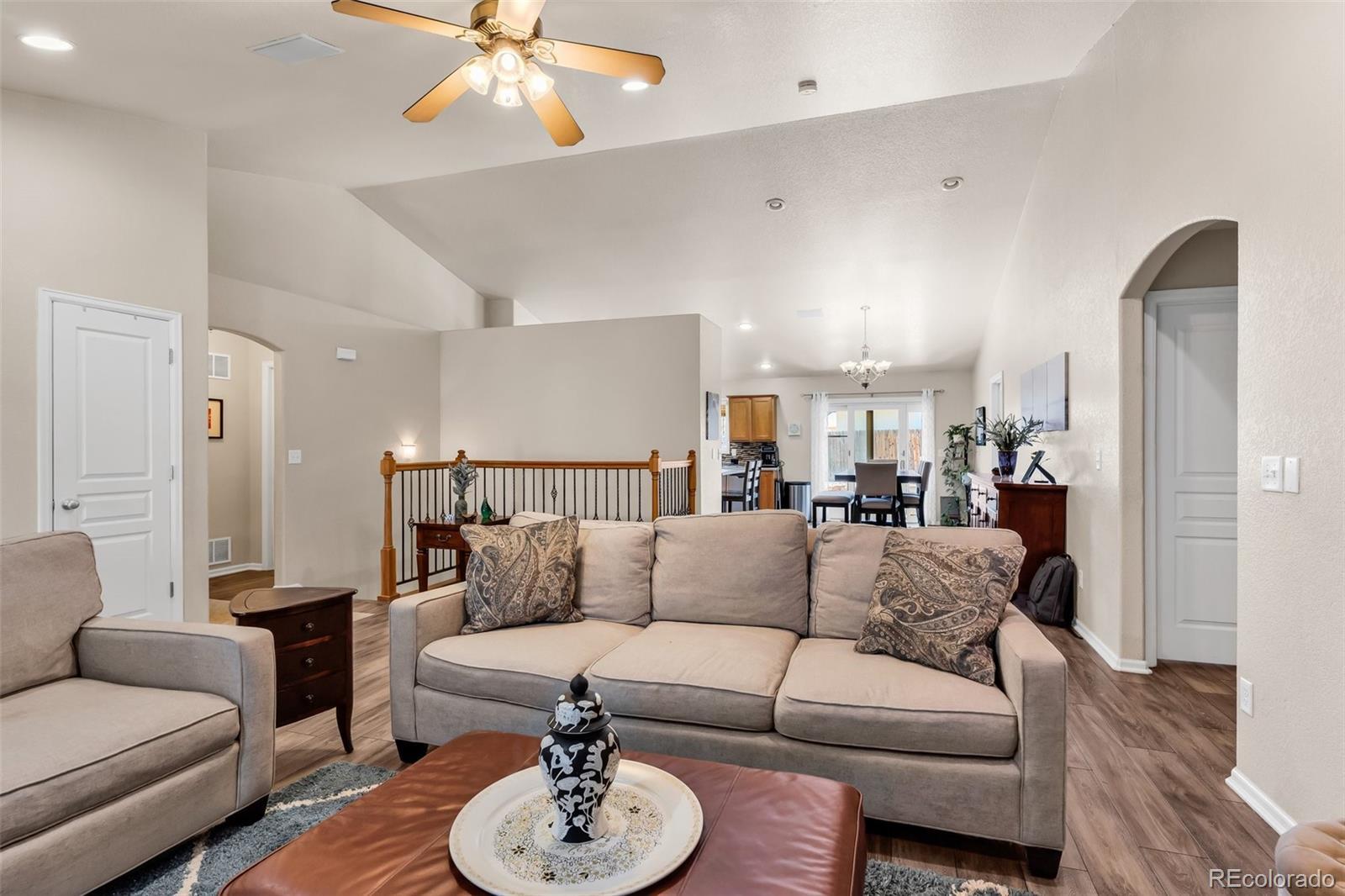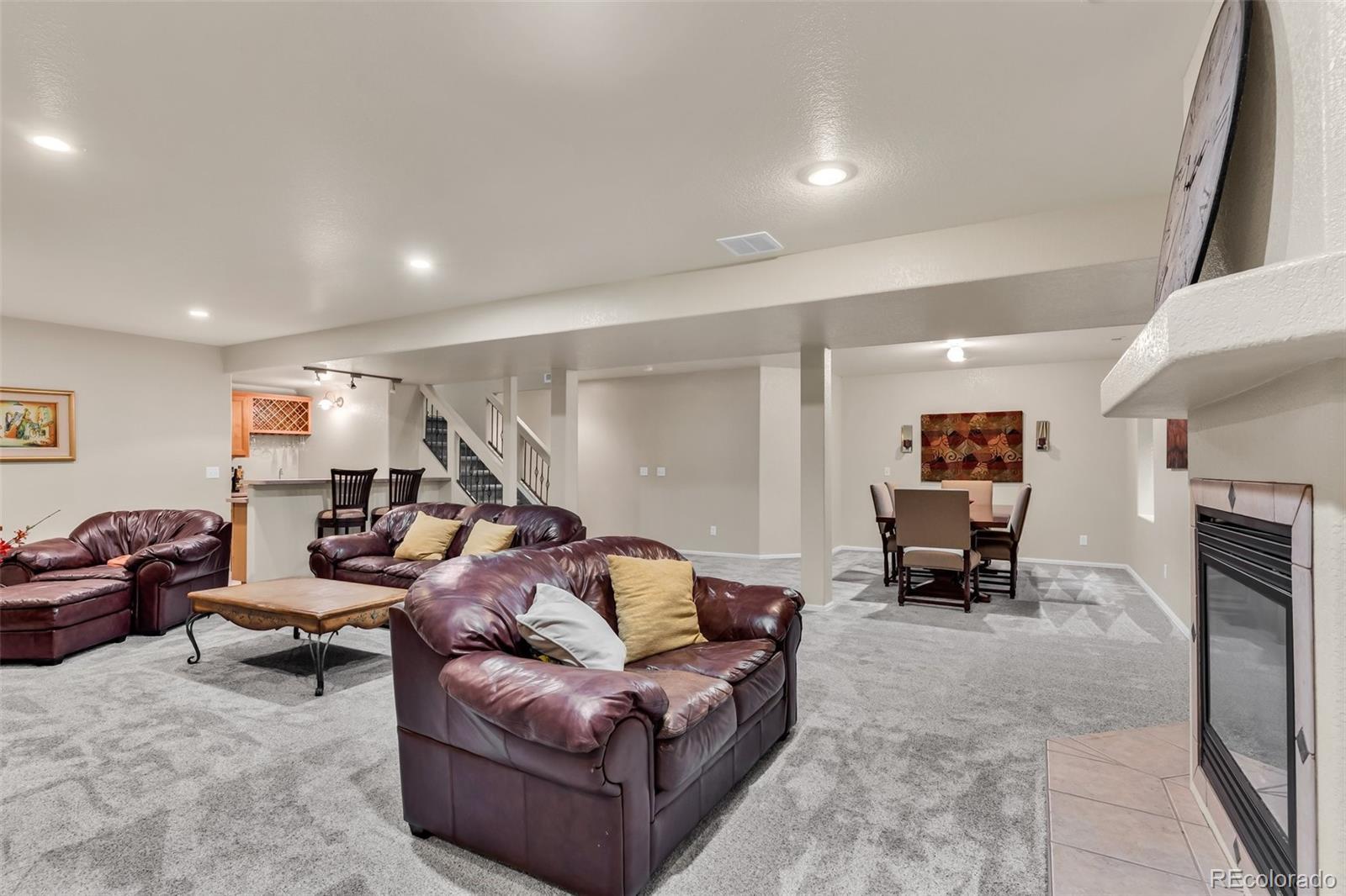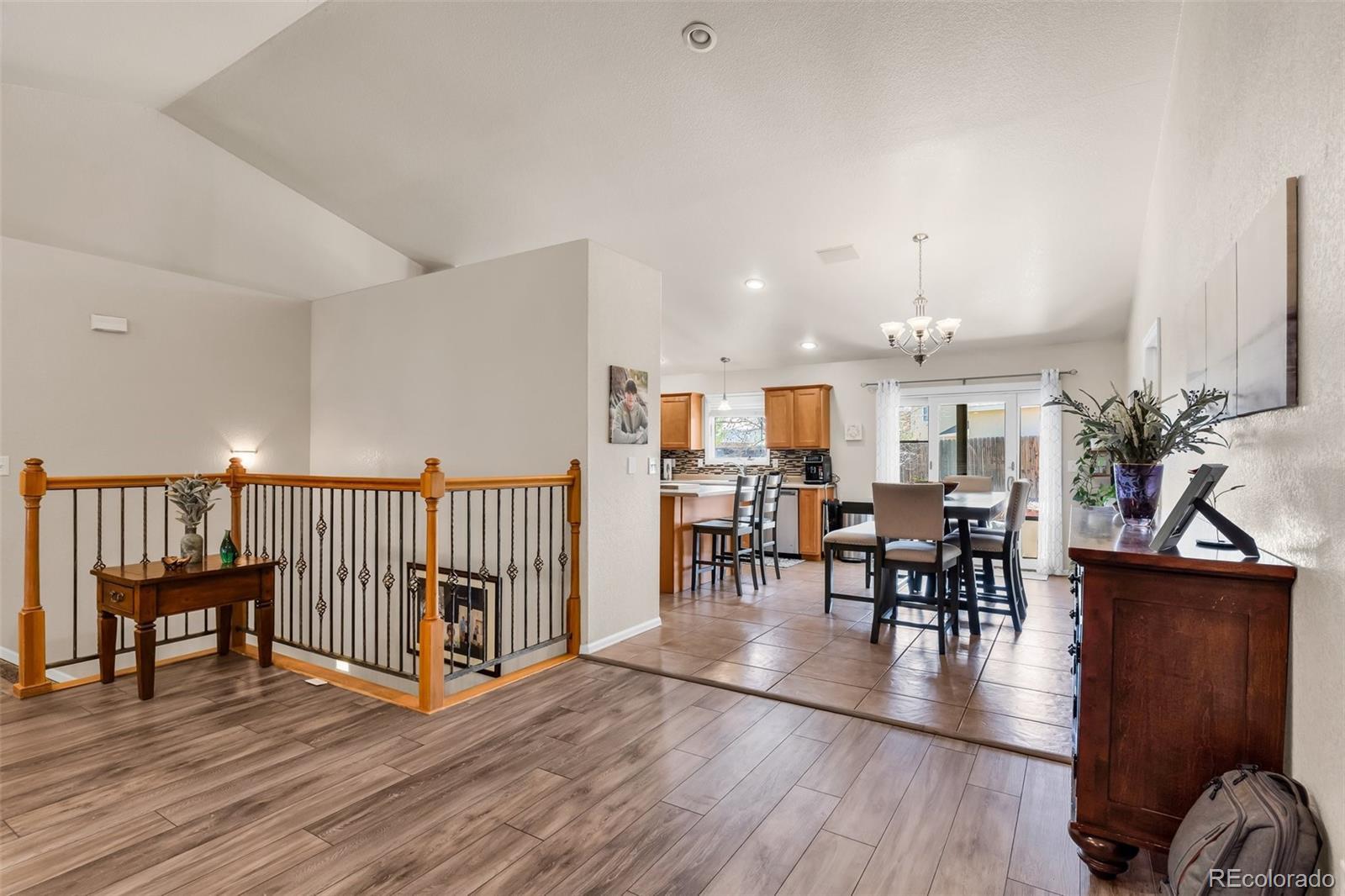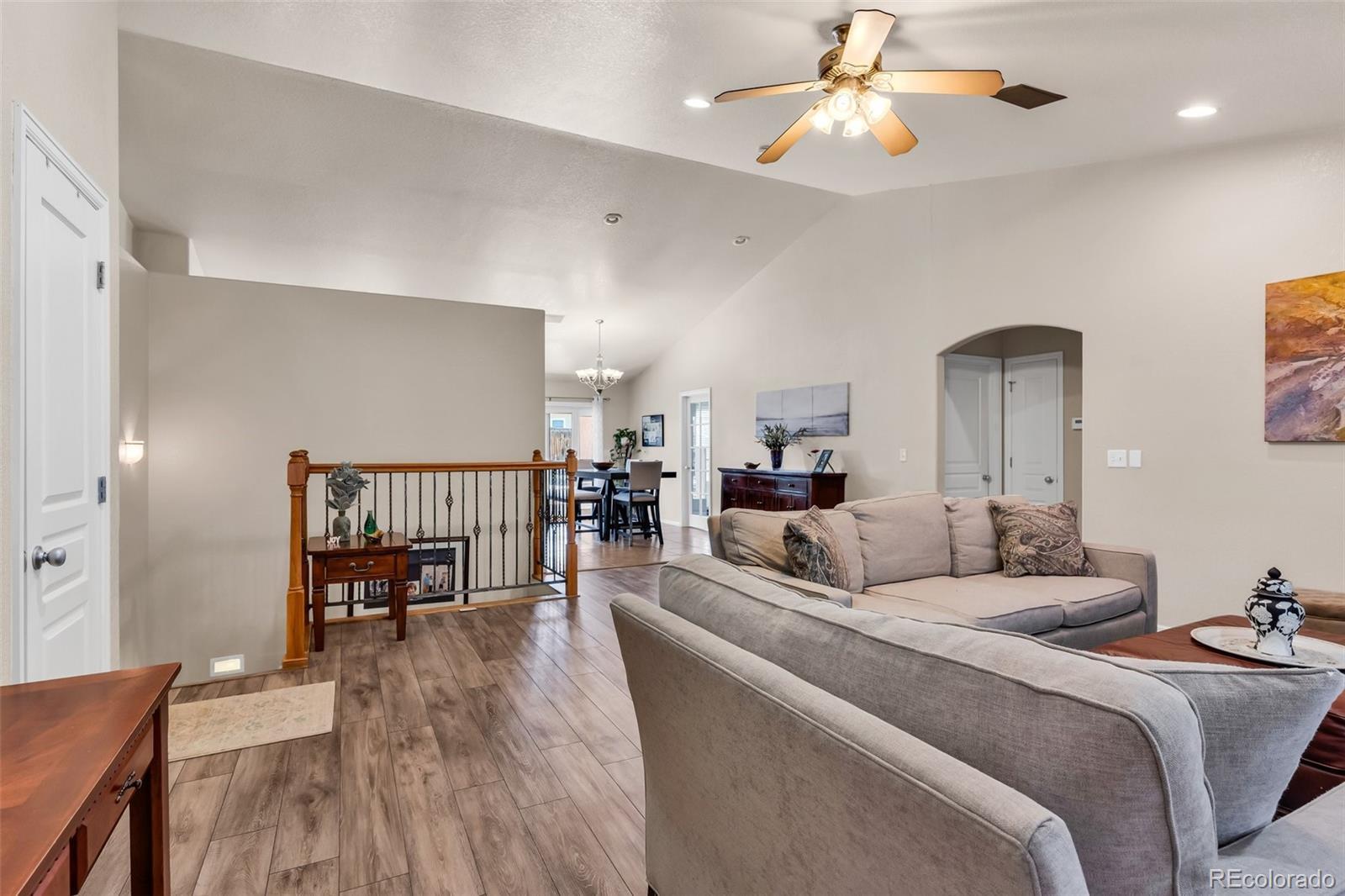 Tucked into a quiet cul-de-sac with no through traffic, this 5-bedroom, 3-bathroom home offers comfort, functionality, and a smart layout on Pueblo’s north side. Green space at the end of the street adds a sense of privacy and openness. Oversized 2 car garage. The landscaped front yard features a mix of lush lawn, mature tree, and xeriscaping for curb appeal with low upkeep. Inside, the vaulted ceiling in the living room brings in natural light and a sense of openness. The kitchen includes tile flooring, a center island with bar seating, stainless steel appliances, tile backsplash, pantry, and a glass-inset cabinet to showcase your favorite pieces. The dining area opens to the backyard for easy indoor-outdoor flow, and a nearby office or den is ideal for remote work, hobbies, or a quiet reading space. The main-level primary suite includes a walk-in closet and a private bath with double sinks, a jetted tub, and a walk-in shower. Two additional main-level bedrooms and a full bath round out the main floor. Downstairs, the finished basement features a large family room with fireplace, a wet bar for entertaining, two more bedrooms, and a ¾ bath with walk-in shower. All appliances included. The backyard includes a covered patio, grassy area, shade tree, and more xeriscaping. Located near schools, shopping, dining, and parks for added convenience.