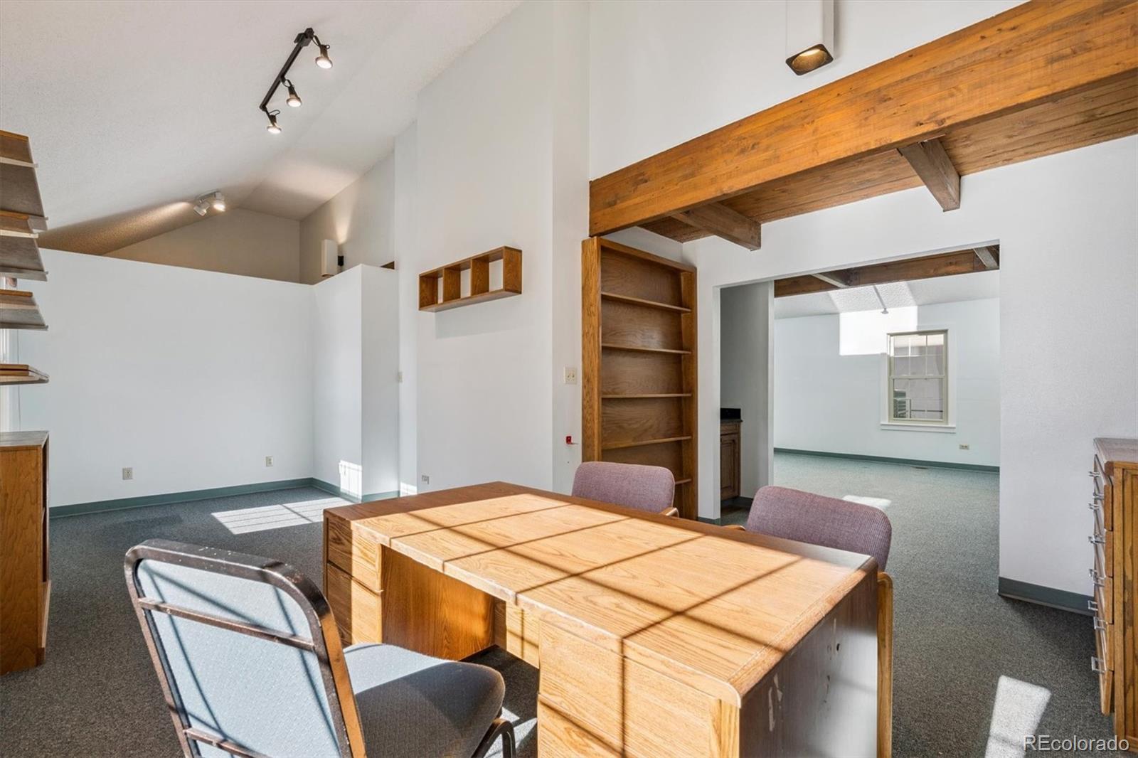 Rare opportunity to own the only stand-alone building in this commercial condo complex—offering exceptional exposure as the first visible unit, independence, and long-term value. This unit boast 2 offices on the main level with kitchenette and 1/2 bath. The lower level has an additional 2 rooms with steam shower and large unfinished storage space/utility room with its own entrance and the upper loft is an attractive flex-space ready to fit your vision. This well-maintained unit is loaded with recent upgrades, including all new windows, a new roof within the last 2 years, re-stuccoed exterior with new insulation, and a newly surfaced parking lot. A brand-new sewer line was added in 2024, serving this unit only. Inside, the space feels fresh and updated with new interior paint, new toilets and vanity with granite, and new tile in the lower bath. Enjoy the convenience of a full shower/steam shower, an electric tankless water heater, an electric furnace, and W/D hookups in the storage/utility room. The kitchenette features a fireplace and cozy atmosphere, and the upper loft boasts vaulted ceilings with skylights—perfect for additional office, creative, or lounge space. One assigned covered parking spot completes this exceptional property. Truly a unique, turnkey commercial condo that’s ready for your business or investment. Schedule your showings today!