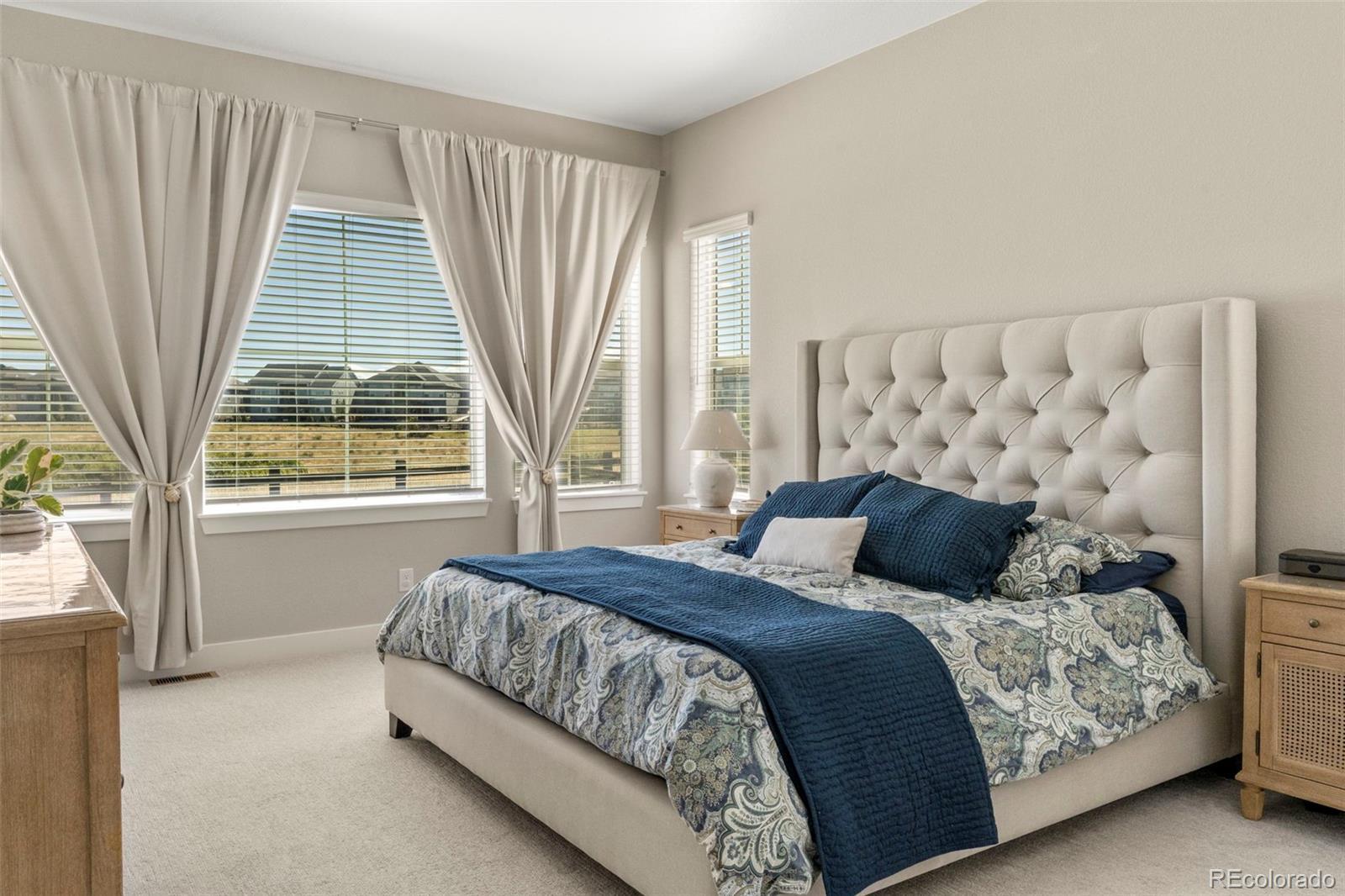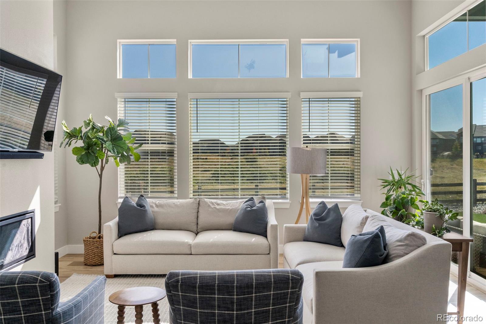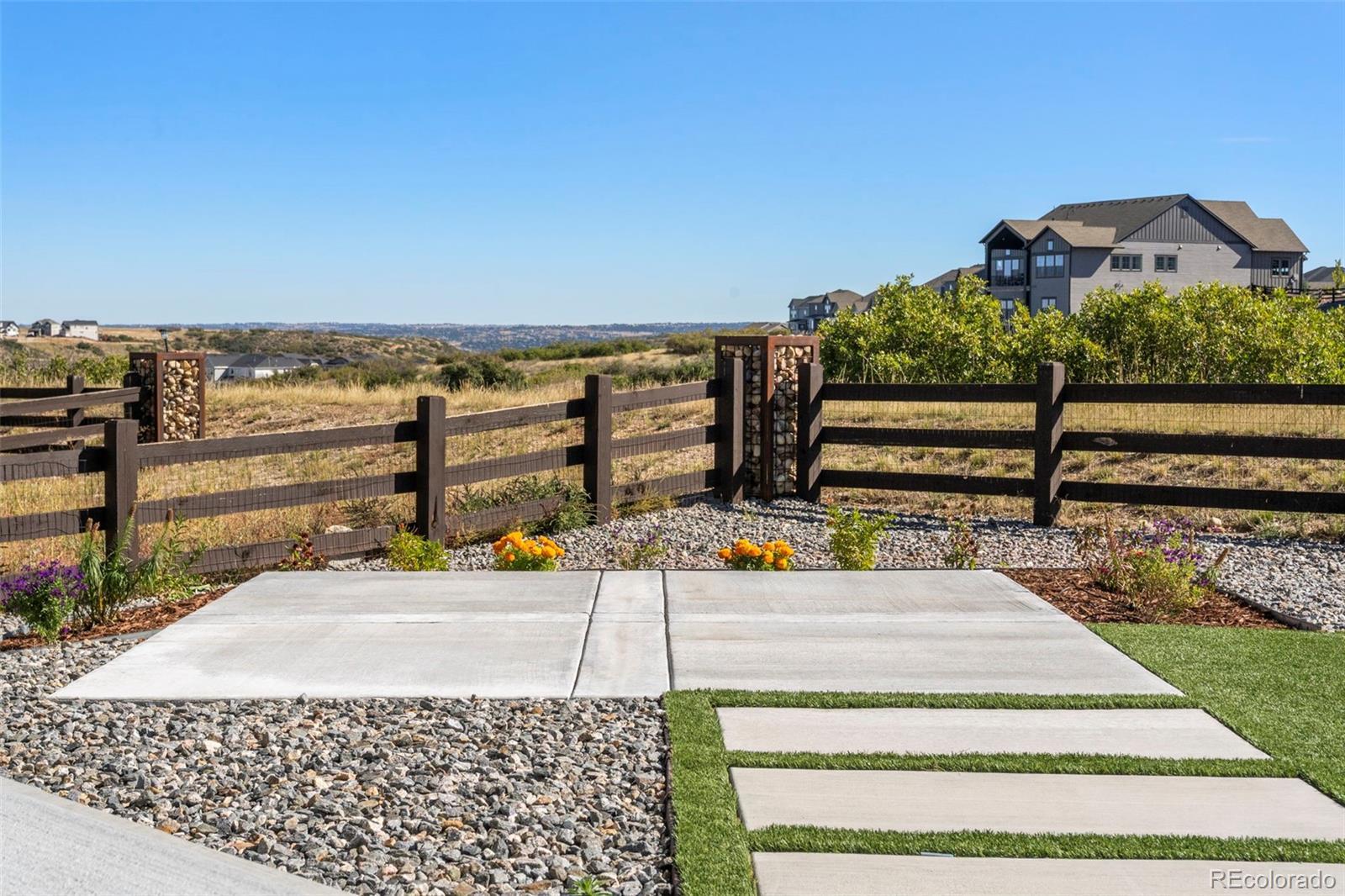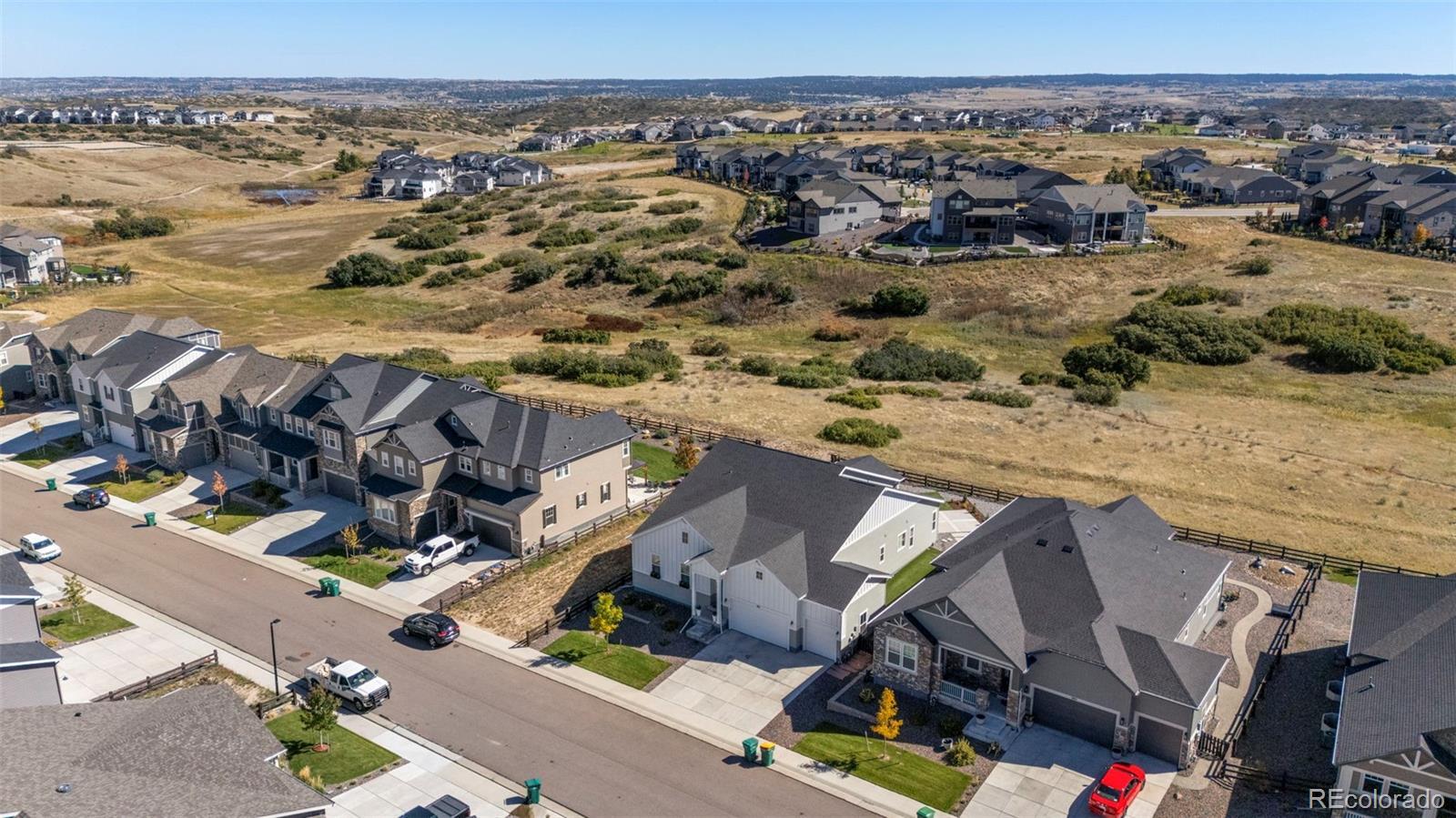 A Light-Filled Luxury Ranch Offering Privacy and Resort-Style Living Built in 2021 and thoughtfully upgraded with approximately $200,000 in builder options, this nearly 5,000-square-foot single-level ranch delivers elevated design, exceptional light, and effortless indoor–outdoor living in Castle Rock’s coveted Macanta community. The home is anchored by a dramatic great room with 13-foot ceilings, expansive windows, and five sliding glass doors, creating an open, airy flow to the outdoors. Ten-foot ceilings throughout enhance the sense of volume and refinement. The chef-inspired kitchen showcases quartz countertops, GE stainless appliances, luxury vinyl plank flooring, and a designer backsplash. The owner’s suite is a true retreat, offering a full wall of windows, dual vanities, a soaking tub, and an expansive walk-in closet. A dedicated office with its own closet provides flexibility as a work-from-home space, guest room, or fourth bedroom. Outside, enjoy a $40,000 professionally designed backyard blending modern style with low-maintenance living. Turf, hardscape, a large covered patio, two outdoor seating areas, and a side-yard dog run spanning the length of the home create an inviting outdoor retreat. A 4-car tandem garage with 10' ceilings offers exceptional space for vehicles, storage, and hobbies. The full-footprint unfinished basement features 9-foot ceilings and plumbing rough-in, offering potential for a theater, gym, guest suite, or additional living areas. Perfectly positioned directly across from The Spoke, Macanta’s amenity center, residents enjoy a resort-style pool, fitness center, co-working space, and 13+ miles of trails. With quick access to I-25, commuting is effortless. HOA is approximately $107/month. Beautifully maintained, move-in ready, and offering a rare combination of modern luxury, privacy, and lifestyle, this home represents an exceptional opportunity in one of Castle Rock’s most desirable neighborhoods.