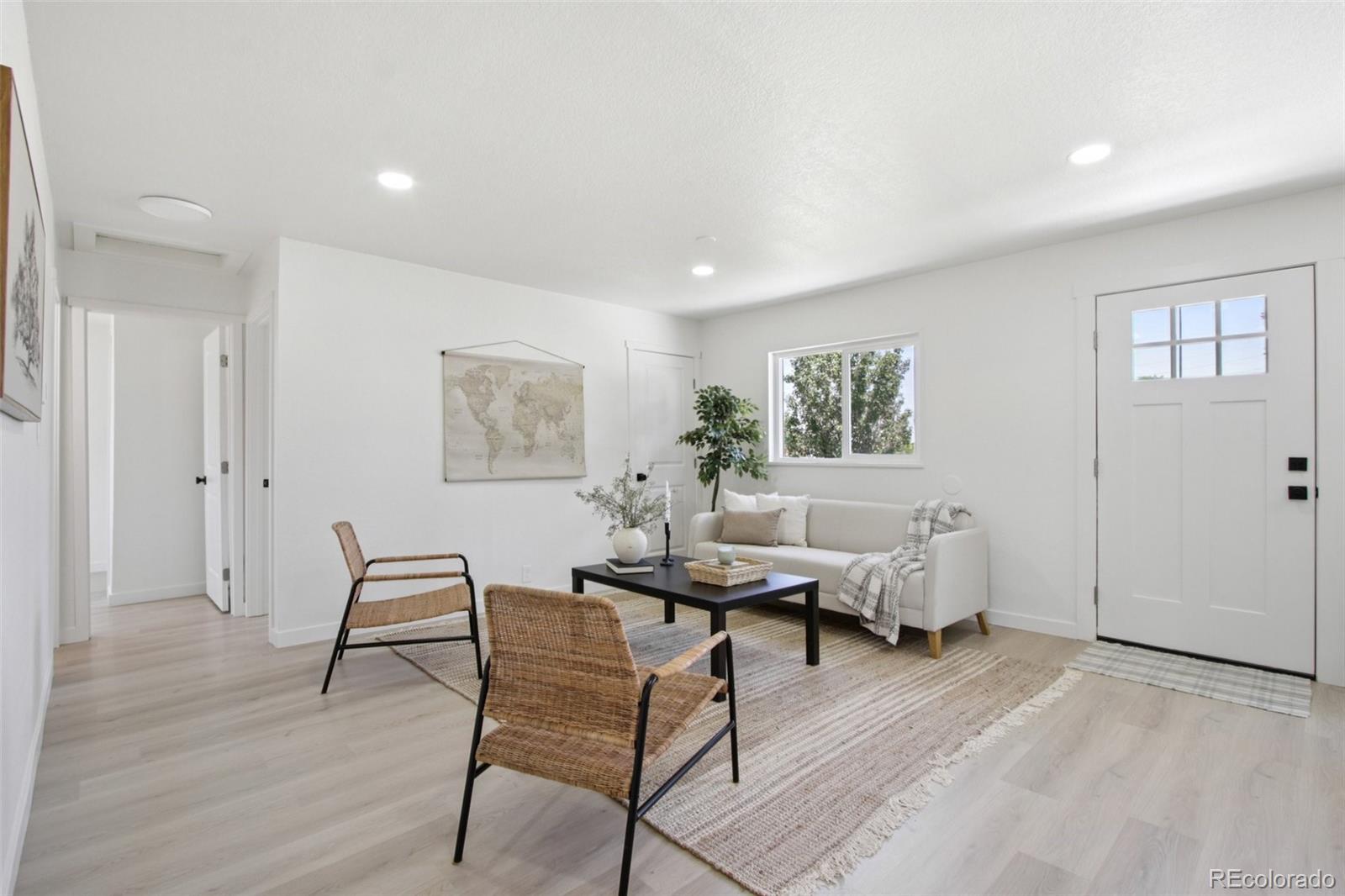 Welcome Home! This beautifully remodeled residence is ready for you to make it your own. Situated on a spacious lot and conveniently close to schools, light rail, and public transportation, this home offers both comfort and accessibility. Upon entering, you'll notice the meticulous renovations throughout, from top to bottom. The expansive living area is filled with abundant natural light and seamlessly integrated with a dining space, perfect for gatherings. The kitchen has been fully upgraded with modern cabinets, quartz countertops, and a sleek stainless steel appliance package—ideal for culinary enthusiasts. The main level features two bedrooms served by a completely renovated full bathroom, showcasing modern tile surrounds, an upgraded vanity, and new plumbing and electrical fixtures. The finished basement adds valuable living space, including a large family room, two additional bedrooms, and a dedicated laundry area. There's also a stylish bathroom with a walk-in shower, new tile, and a contemporary vanity. The home’s systems have been upgraded for efficiency and peace of mind, including a new permitted electric panel and roof. Also find a new high-efficiency water heater, and HVAC system. The driveway has also been replaced with durable new concrete. No detail has been overlooked in this stunning home. Schedule your visit today and see all the wonderful features this gem has to offer! Ask about seller offer to buy down your rate!